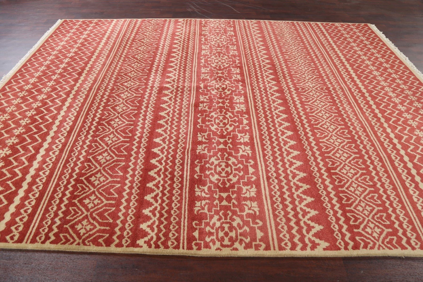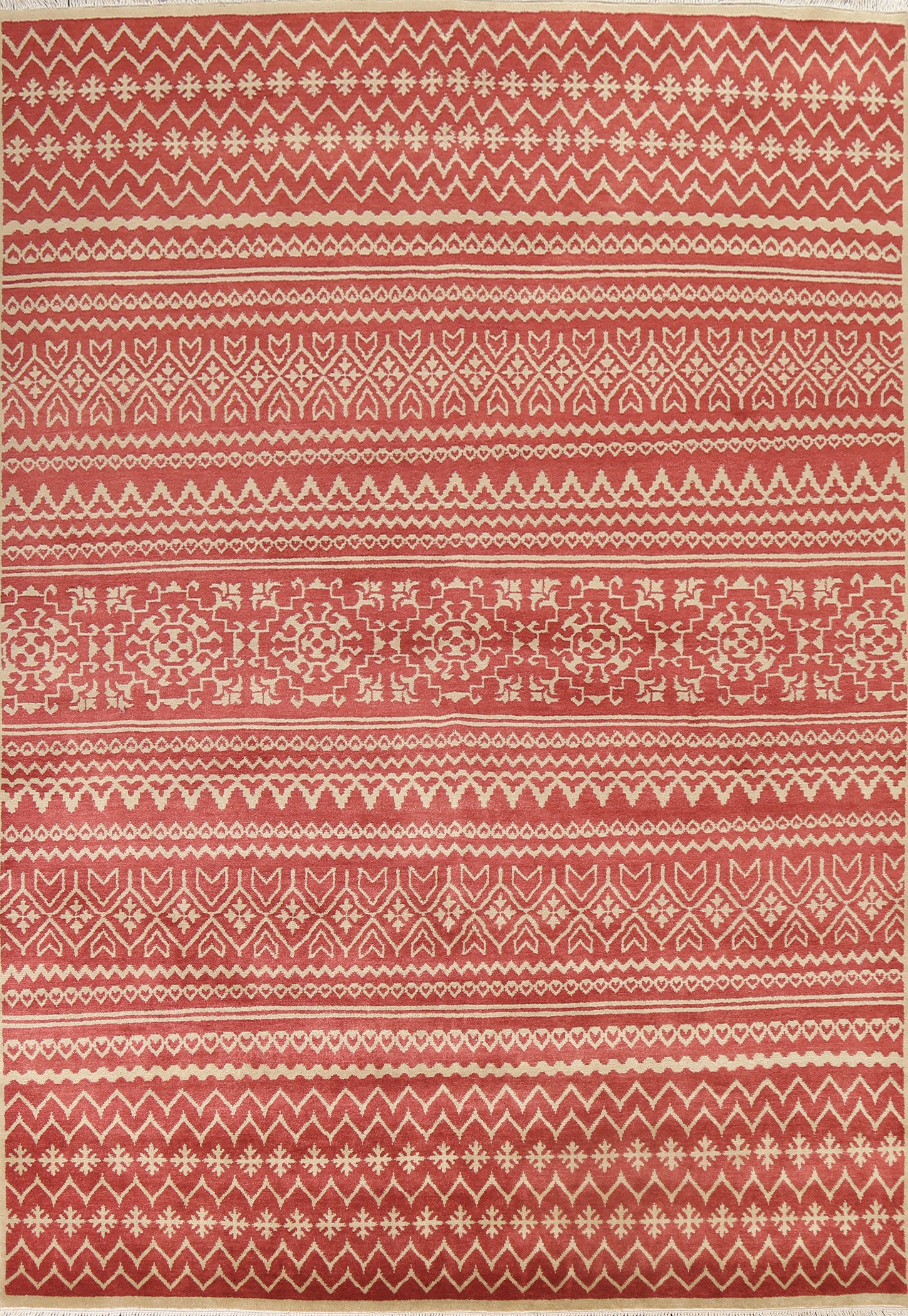 A Beautiful Genuine India Art & Craft rug is Hand Knotted by skillful weavers in India with 100% Wool Material. This rug is in New, First Quality condition. dimensions are 10' 2'' X 7' 11'' in foot and 310 X 241 in centimeter. the primary color is Red.