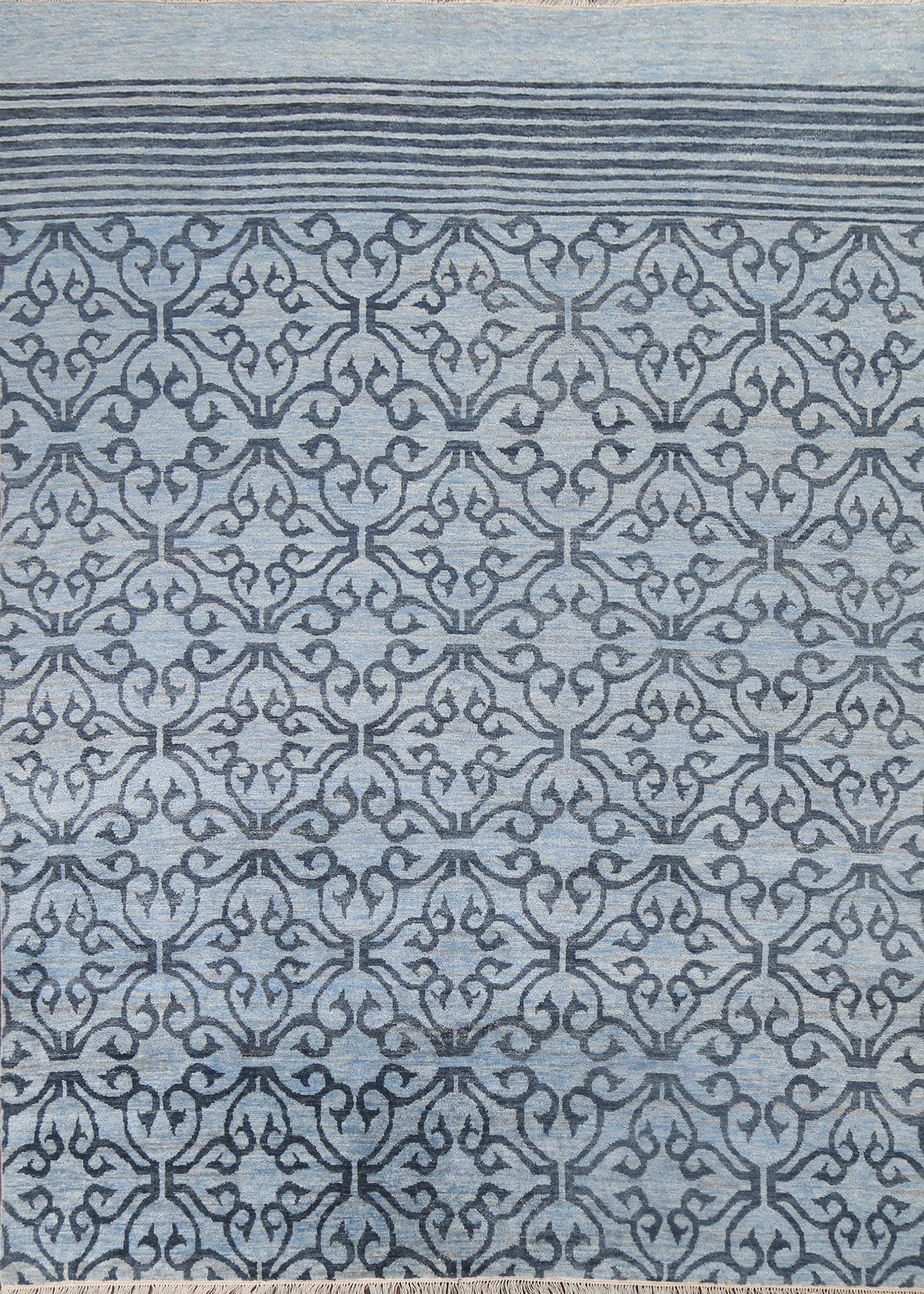 A Beautiful Genuine India Art & Craft rug is Hand Knotted by skillful weavers in India with 100% Wool Material. This rug is in New, First Quality condition. dimensions are 9' 4'' X 7' 10'' in foot and 284 X 239 in centimeter. the primary color is Navy Blue & Blues.