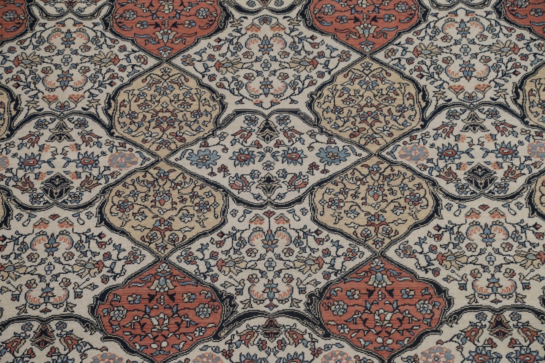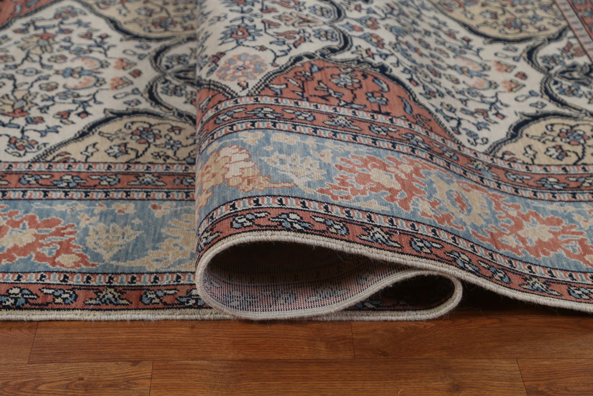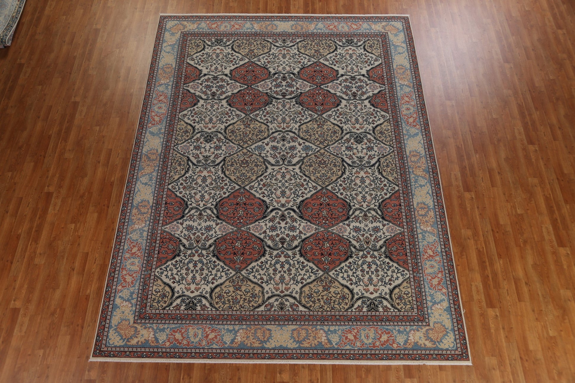 A Beautiful Genuine Turkey Bakhtiari rug is Hand Knotted by skillful weavers in Turkey with 100% Wool Material. This rug is in New, First Quality condition. dimensions are 11' 9'' X 8' 10'' in foot and 358 X 269 in centimeter. the primary color is Beige & Ivories.