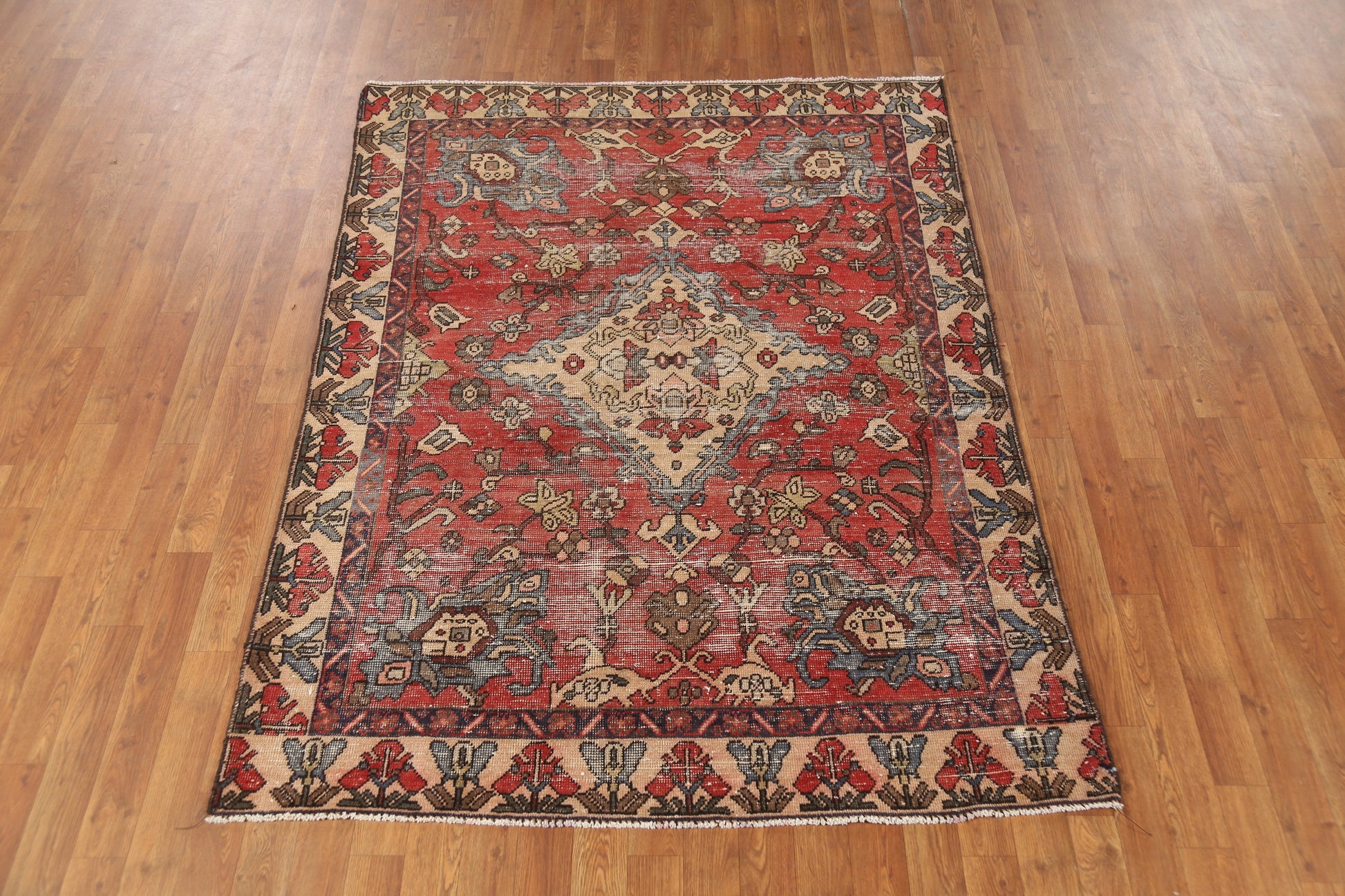 A Beautiful Genuine Persia ( Persia ) Bakhtiari rug is Hand Knotted by skillful weavers in Persia ( Persia ) with 100% Wool Material. This rug is in Very Good (Low Pile) condition. dimensions are 6' 2'' X 4' 7'' in foot and 188 X 140 in centimeter. the primary color is Oranges & Rust.