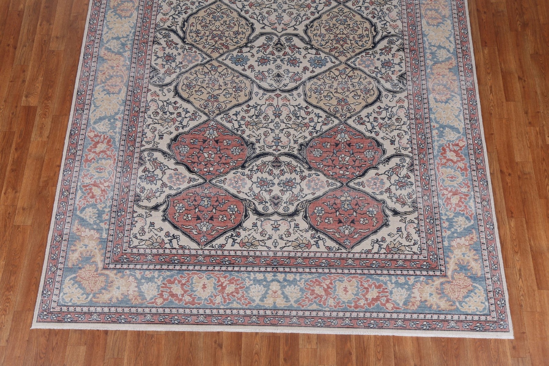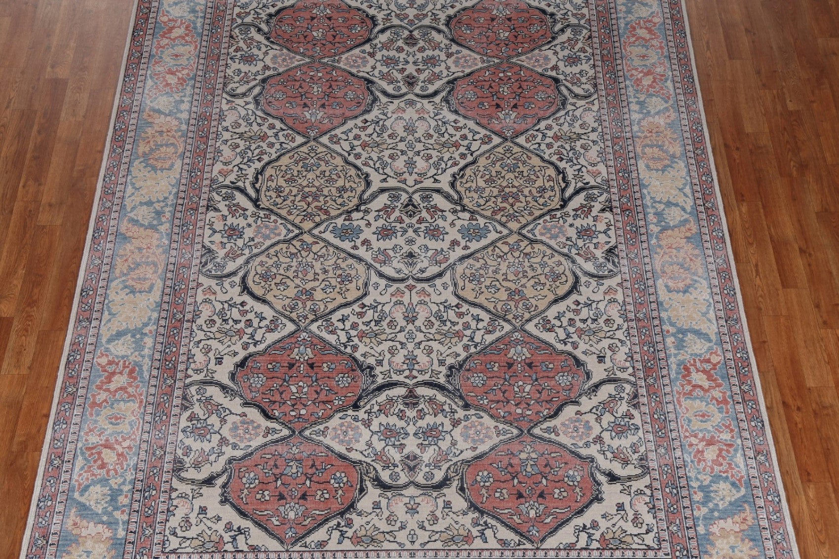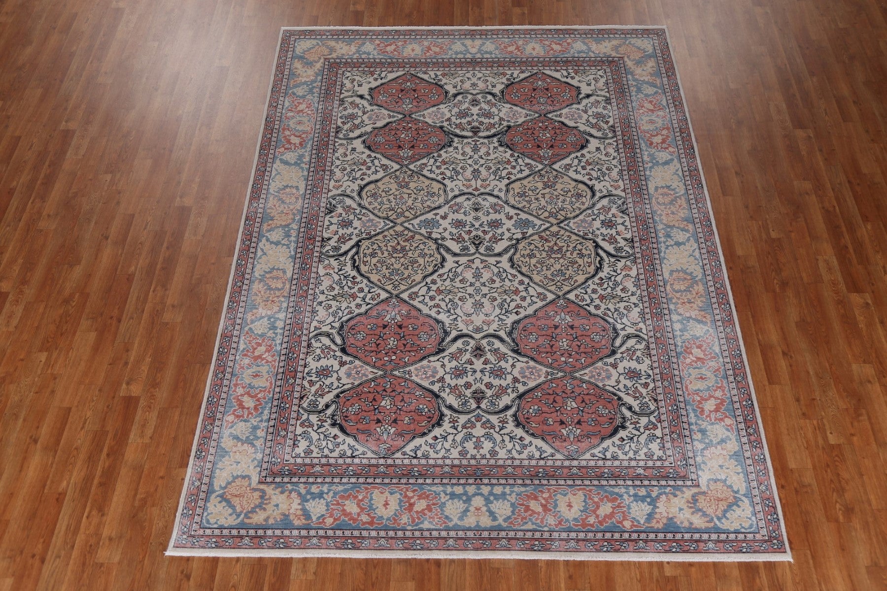 A Beautiful Genuine Turkey Bakhtiari rug is Hand Knotted by skillful weavers in Turkey with 100% Wool Material. This rug is in New, First Quality condition. dimensions are 9' 9'' X 7' 0'' in foot and 297 X 213 in centimeter. the primary color is Beige & Ivories.