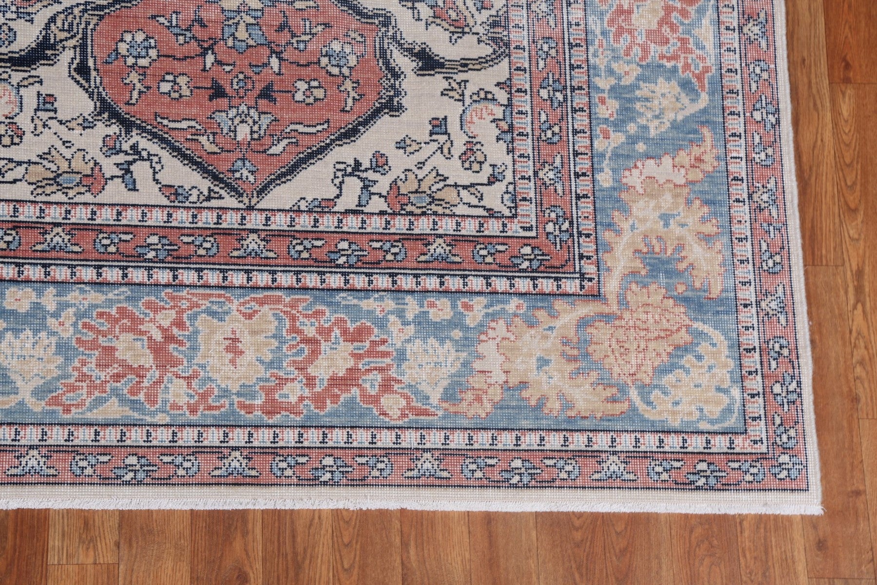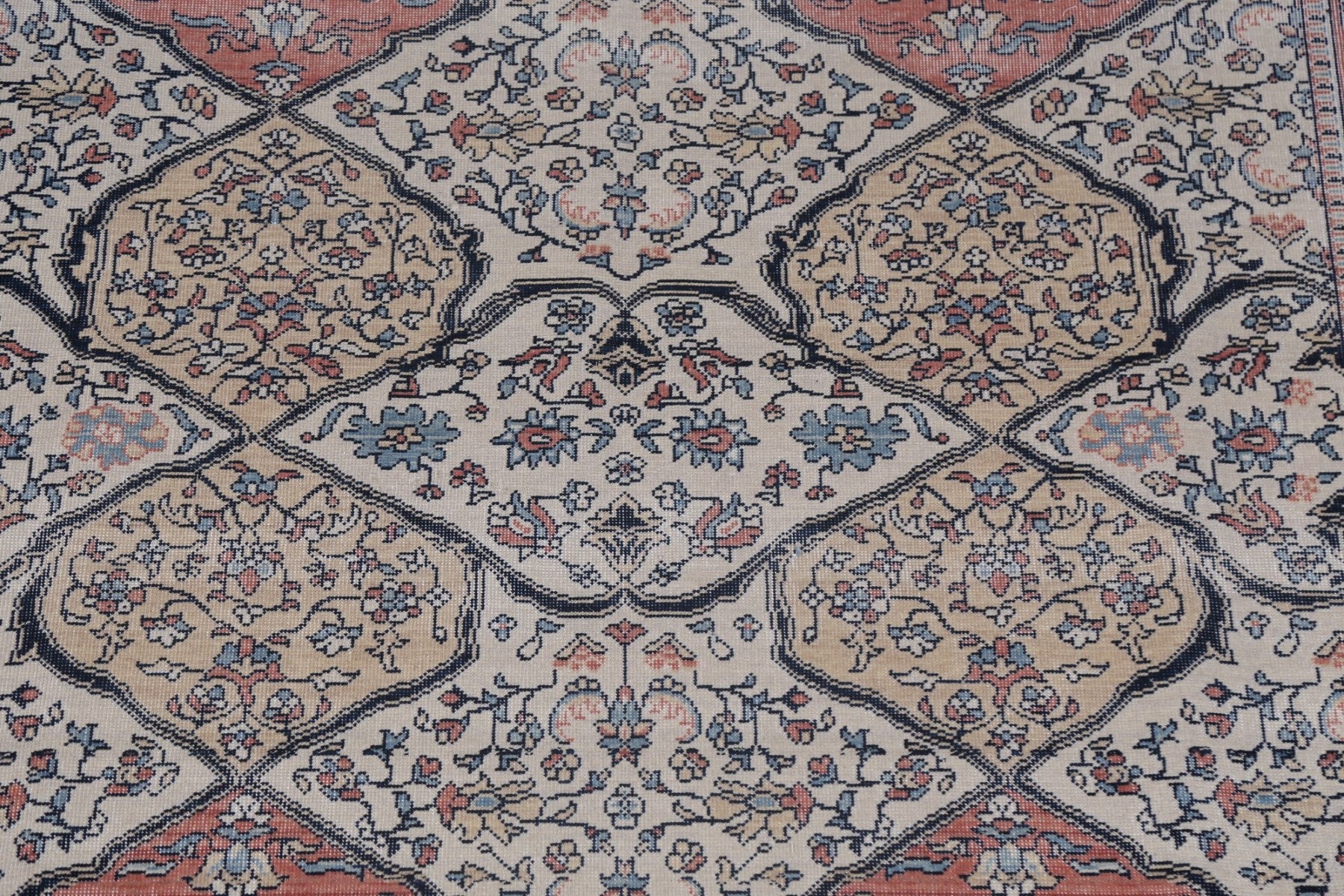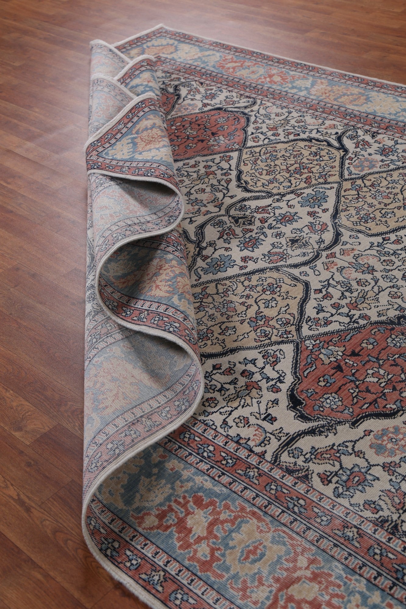 A Beautiful Genuine Turkey Bakhtiari rug is Hand Knotted by skillful weavers in Turkey with 100% Wool Material. This rug is in New, First Quality condition. dimensions are 9' 9'' X 7' 0'' in foot and 297 X 213 in centimeter. the primary color is Beige & Ivories.