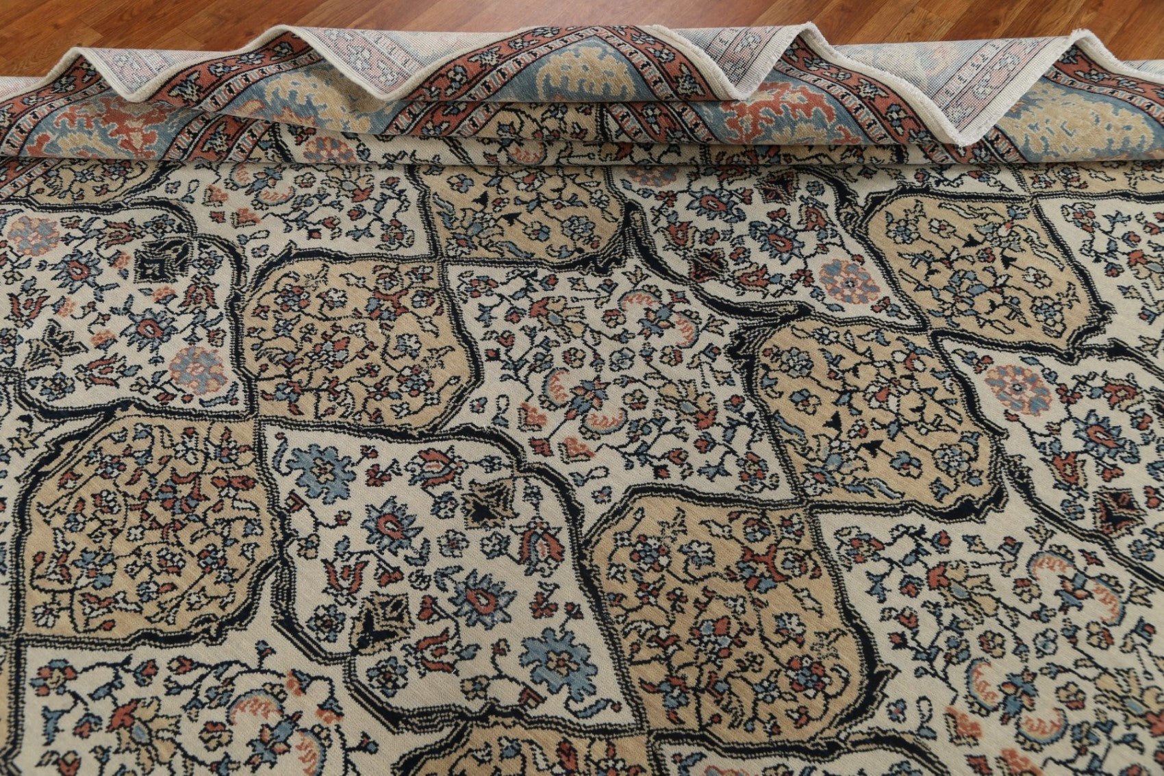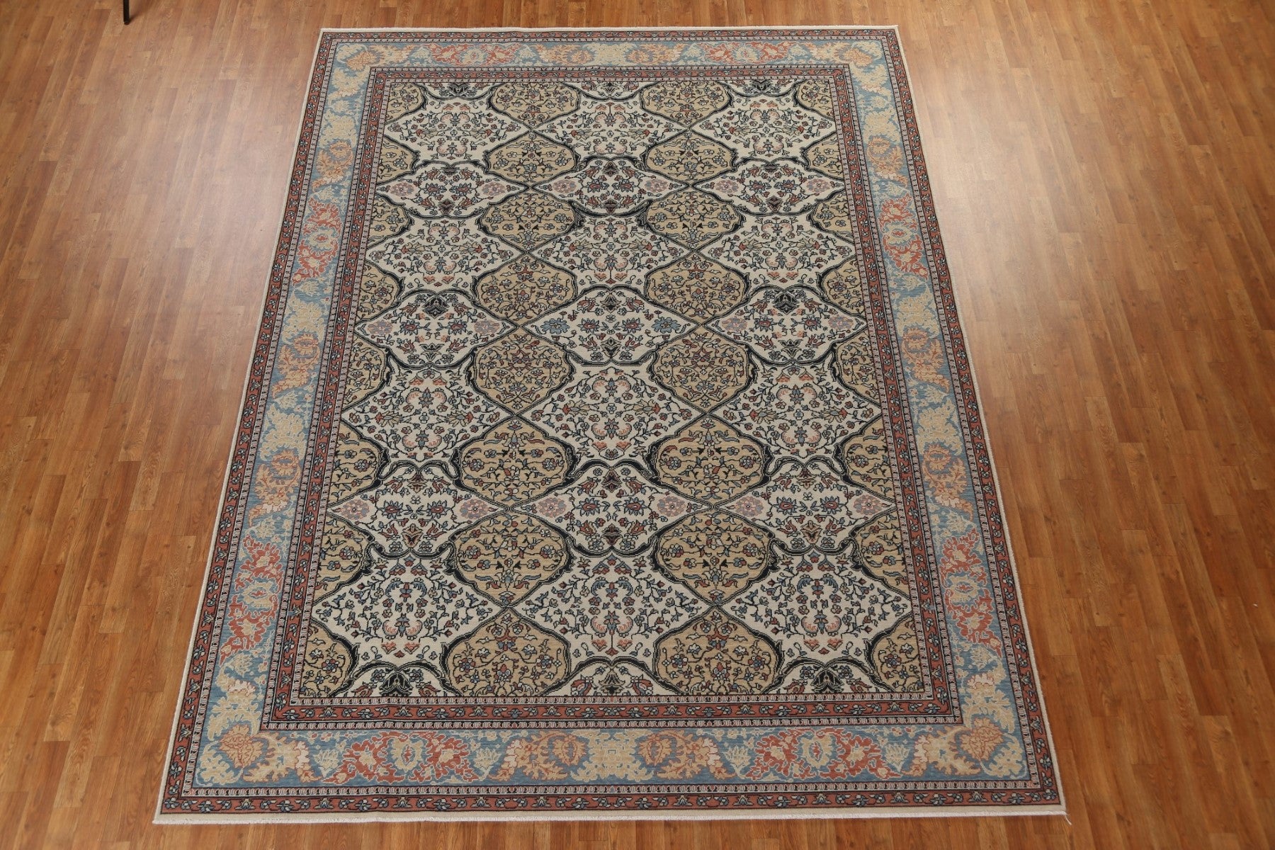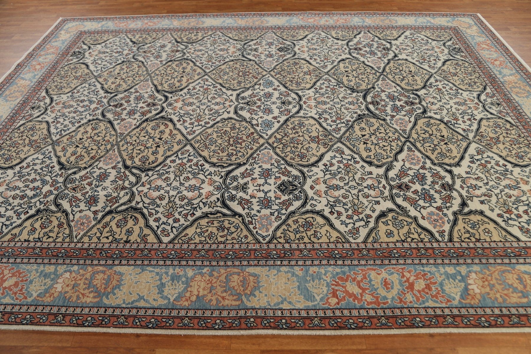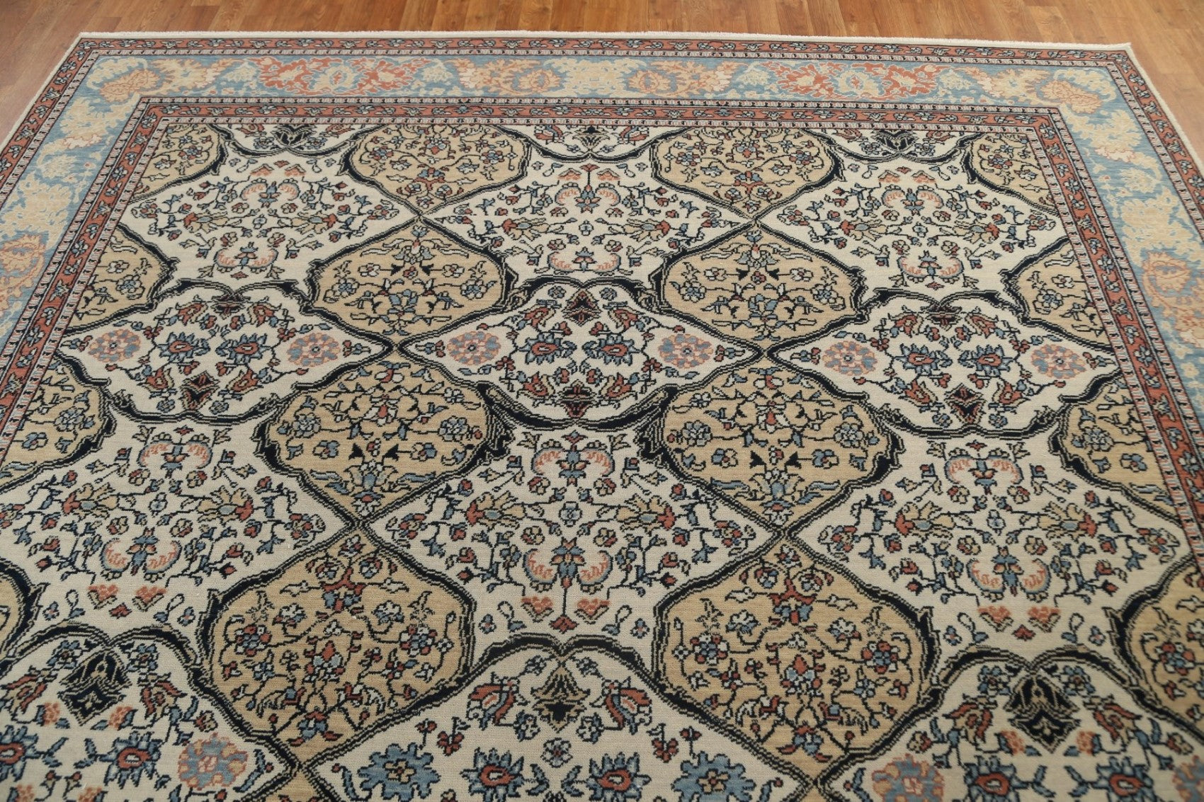 A Beautiful Genuine Turkey Bakhtiari rug is Hand Knotted by skillful weavers in Turkey with 100% Wool Material. This rug is in New, First Quality condition. dimensions are 11' 9'' X 9' 0'' in foot and 358 X 274 in centimeter. the primary color is Beige & Ivories.