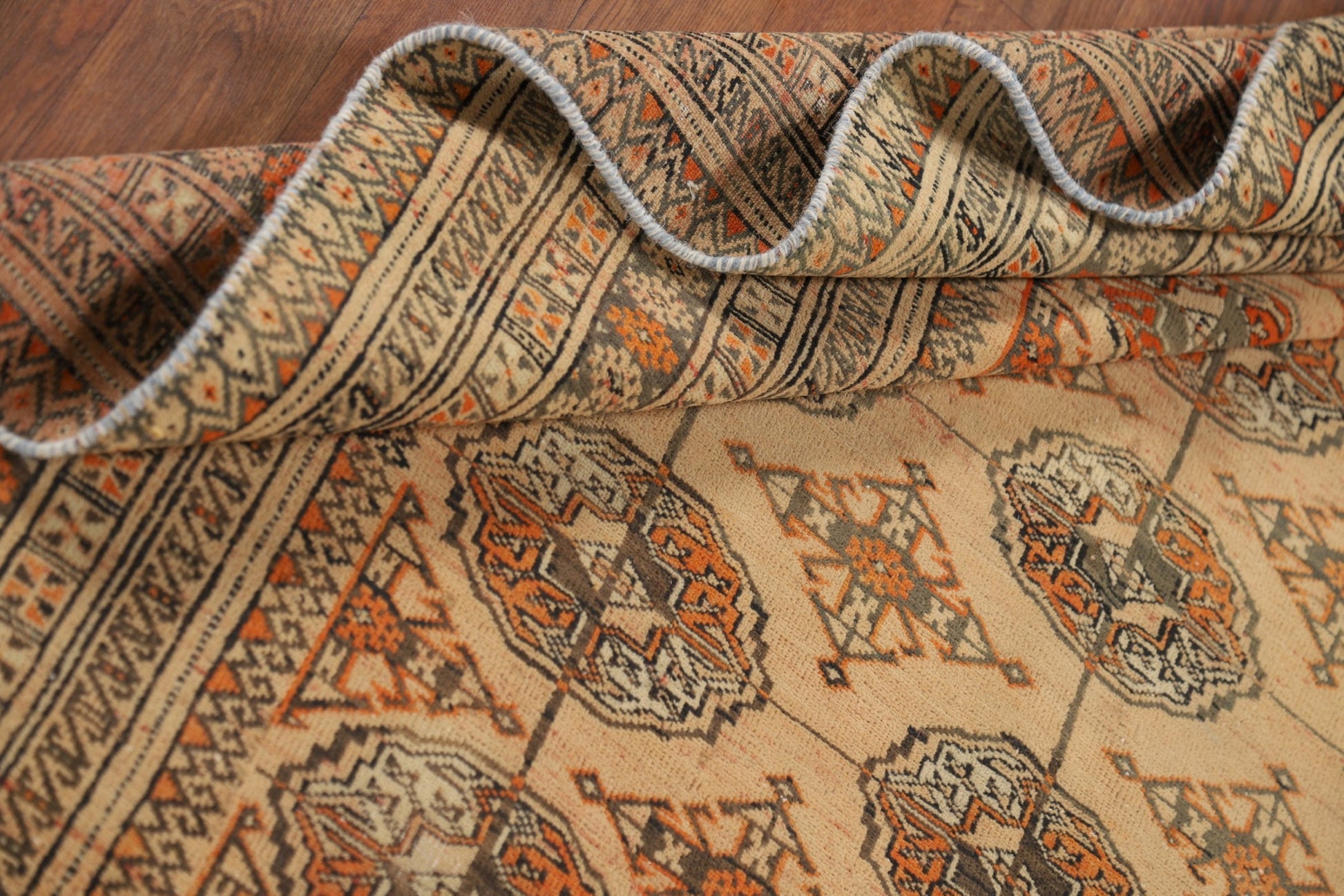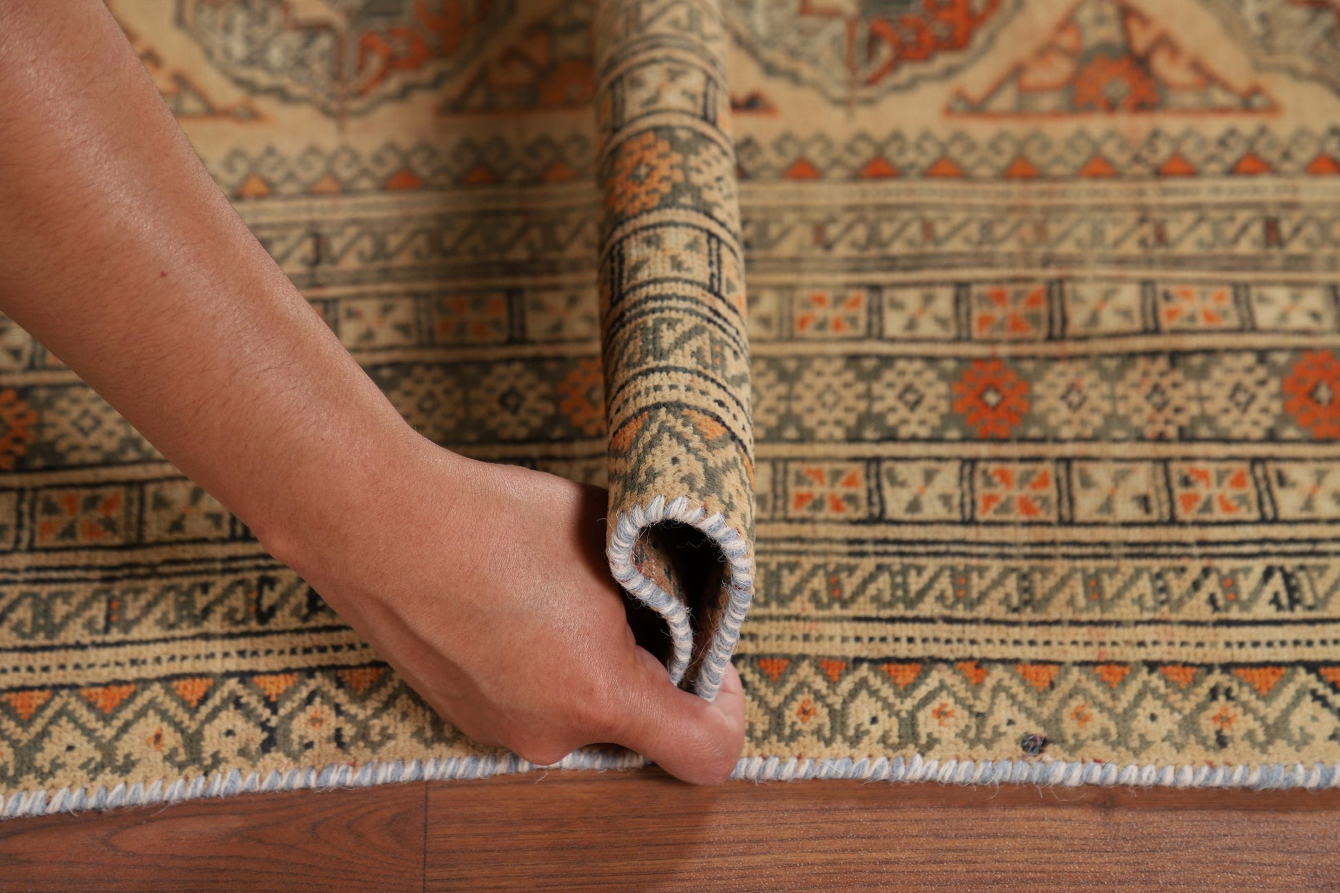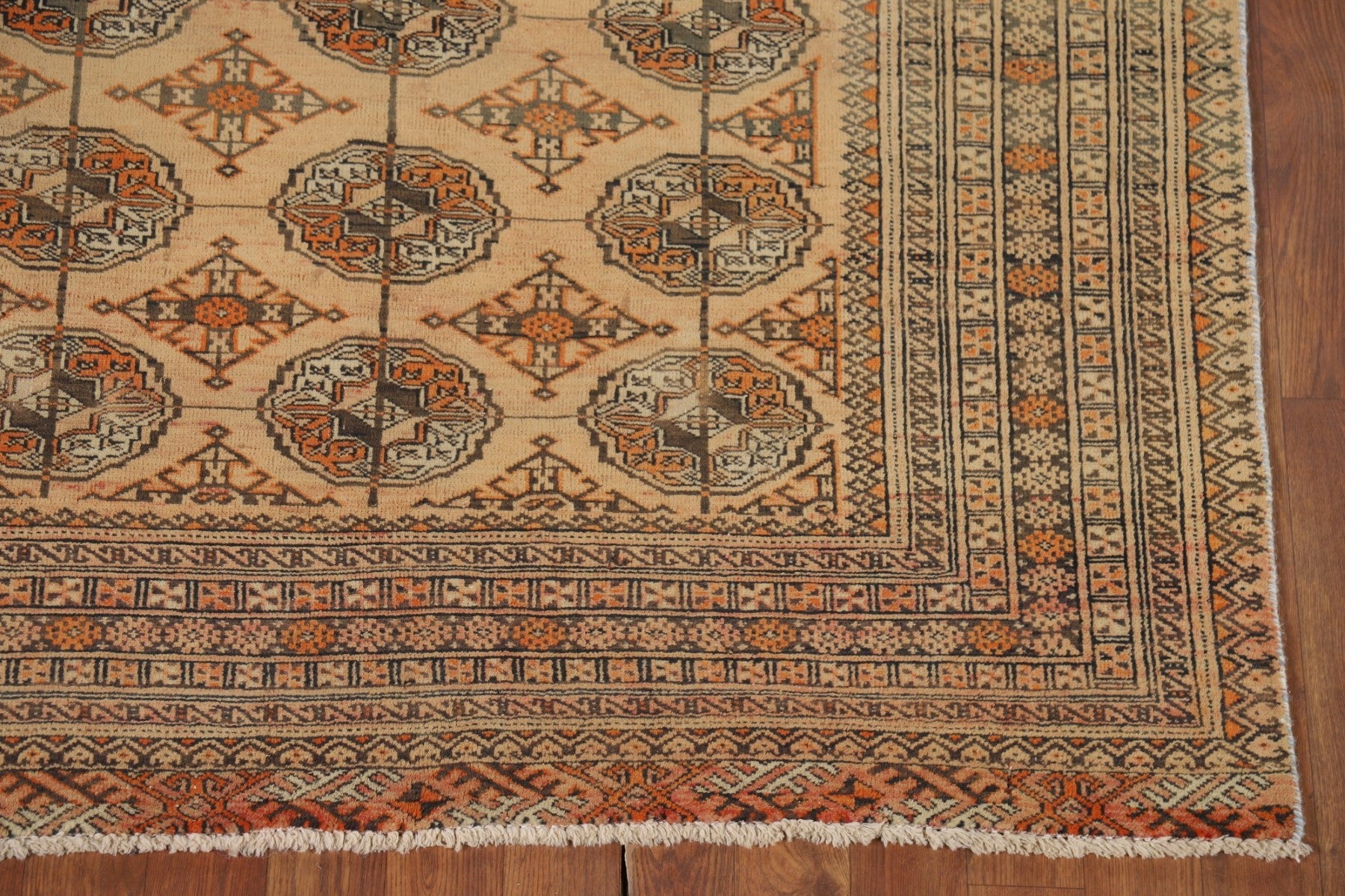 A Beautiful Genuine Persia ( Persia ) Bokhara rug is Hand Knotted by skillful weavers in Persia ( Persia ) with 100% Wool Material. This rug is in Very Good ( Evenly Low Pile-Repair) condition. dimensions are 6' 1'' X 4' 6'' in foot and 185 X 137 in centimeter. the primary color is Oranges & Rust.