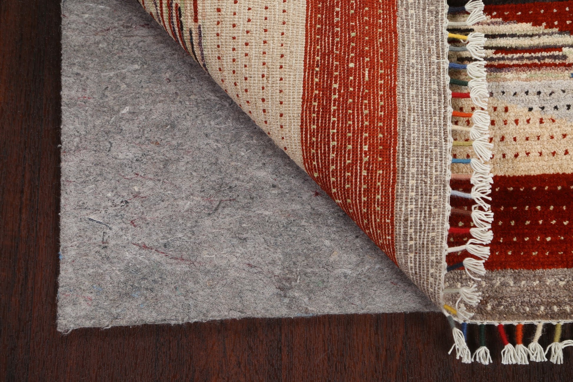 A Beautiful Genuine Pakistan Gabbeh (kashkoli) rug is Hand Knotted by skillful weavers in Pakistan with 100% Wool Material. This rug is in New, First Quality condition. dimensions are 7' 10'' X 5' 5'' in foot and 239 X 165 in centimeter. the primary color is Multi-Colored.