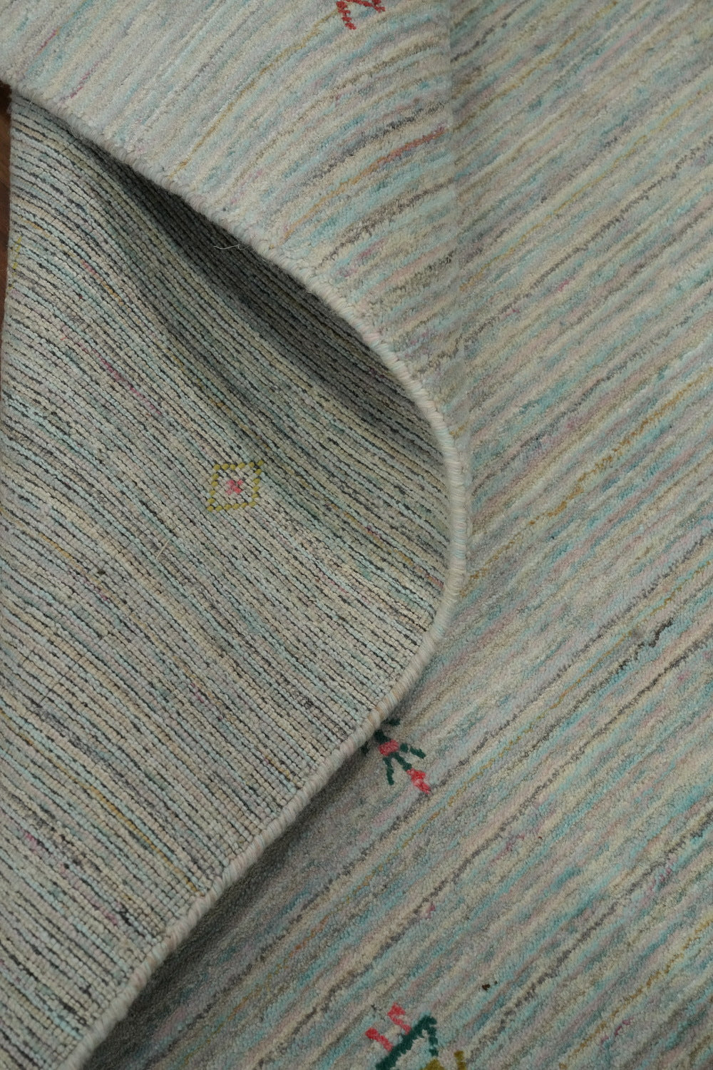 A Beautiful Genuine India Gabbeh rug is Hand Knotted by skillful weavers in India with 100% Wool Material. This rug is in New, First Quality condition. dimensions are 11' 9'' X 9' 0'' in foot and 358 X 274 in centimeter. the primary color is Greys & Charcoal.