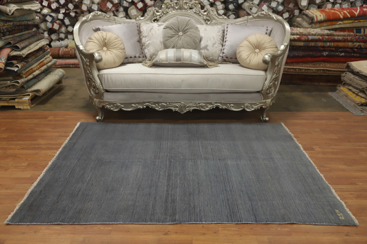 A Beautiful Genuine Pakistan Gabbeh rug is Hand Knotted by skillful weavers in Pakistan with 100% Wool Material. This rug is in New, First Quality condition. dimensions are 6' 7'' X 4' 11'' in foot and 201 X 150 in centimeter. the primary color is Greys & Charcoal.