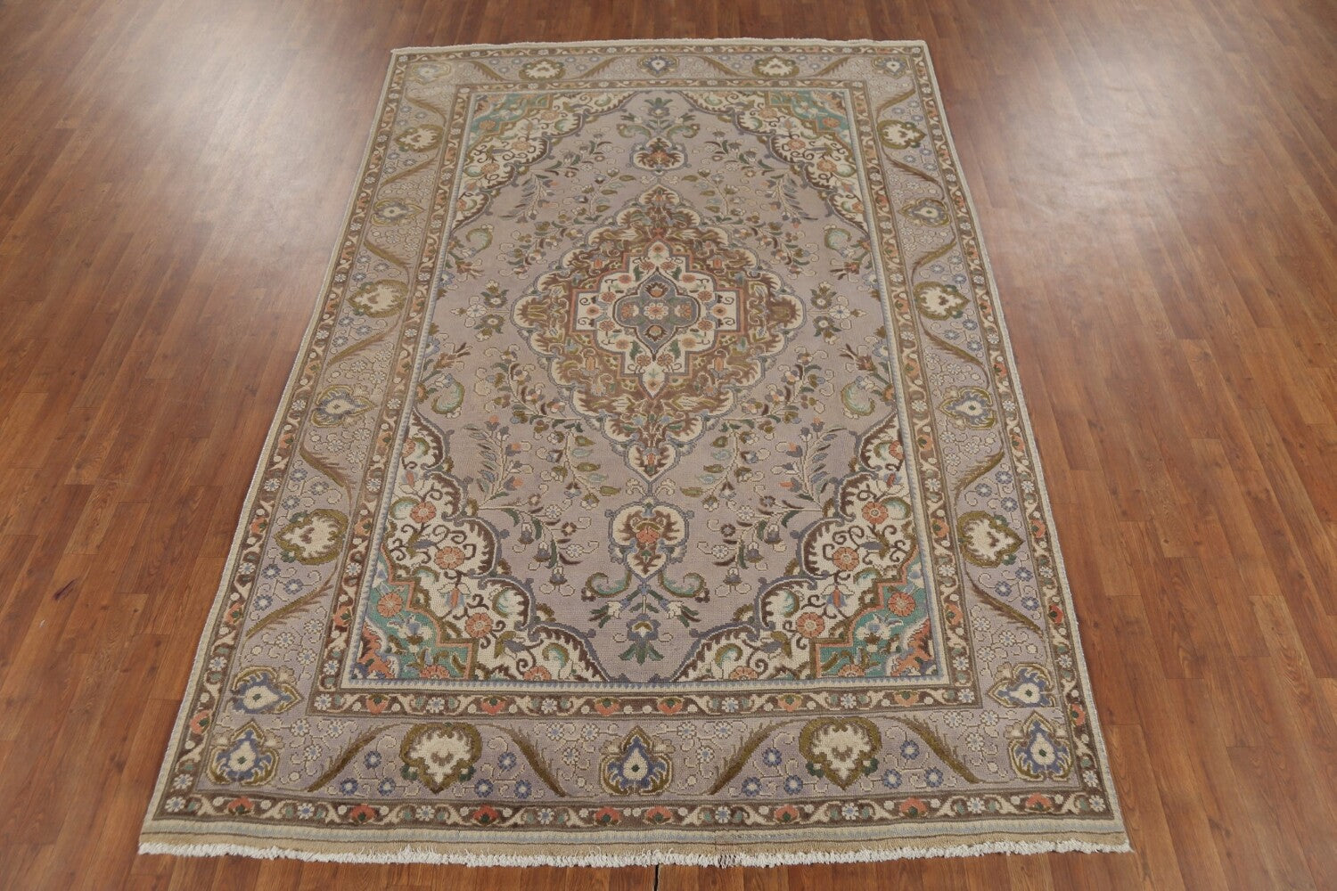 Handmade Wool Gray Tabriz Persian Area Rug 6x9