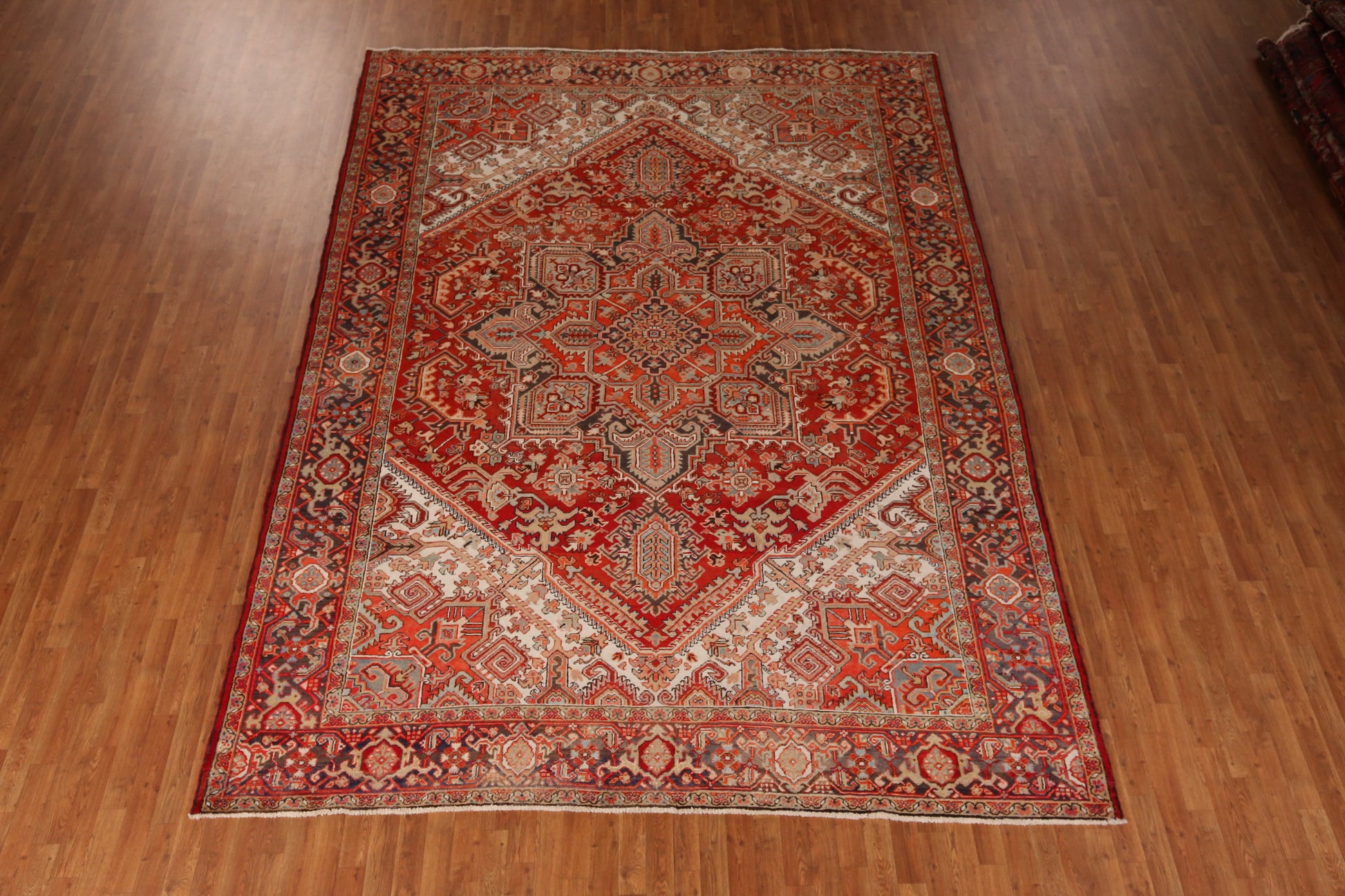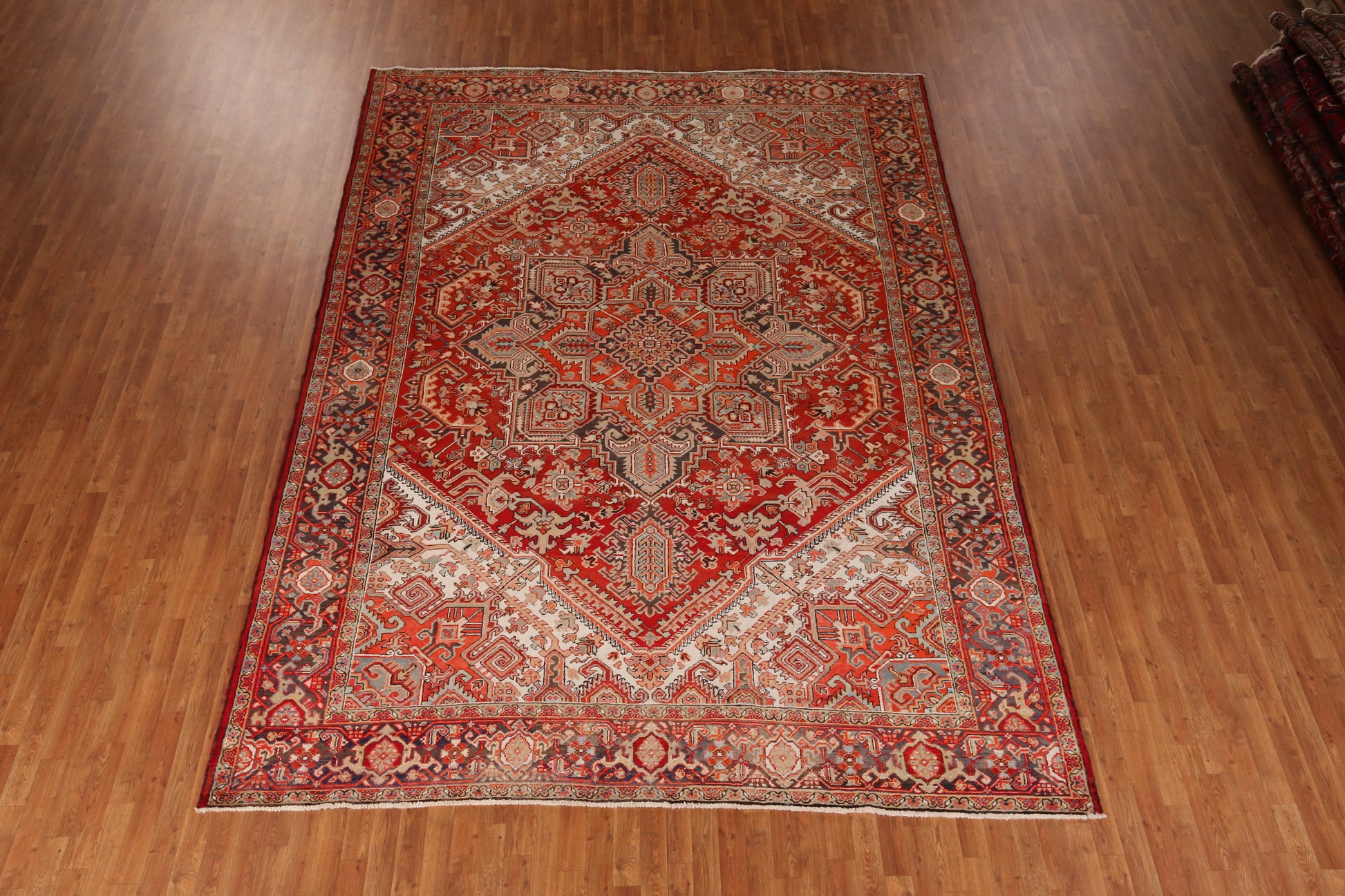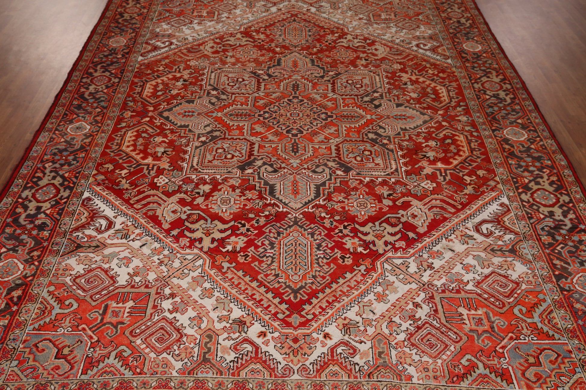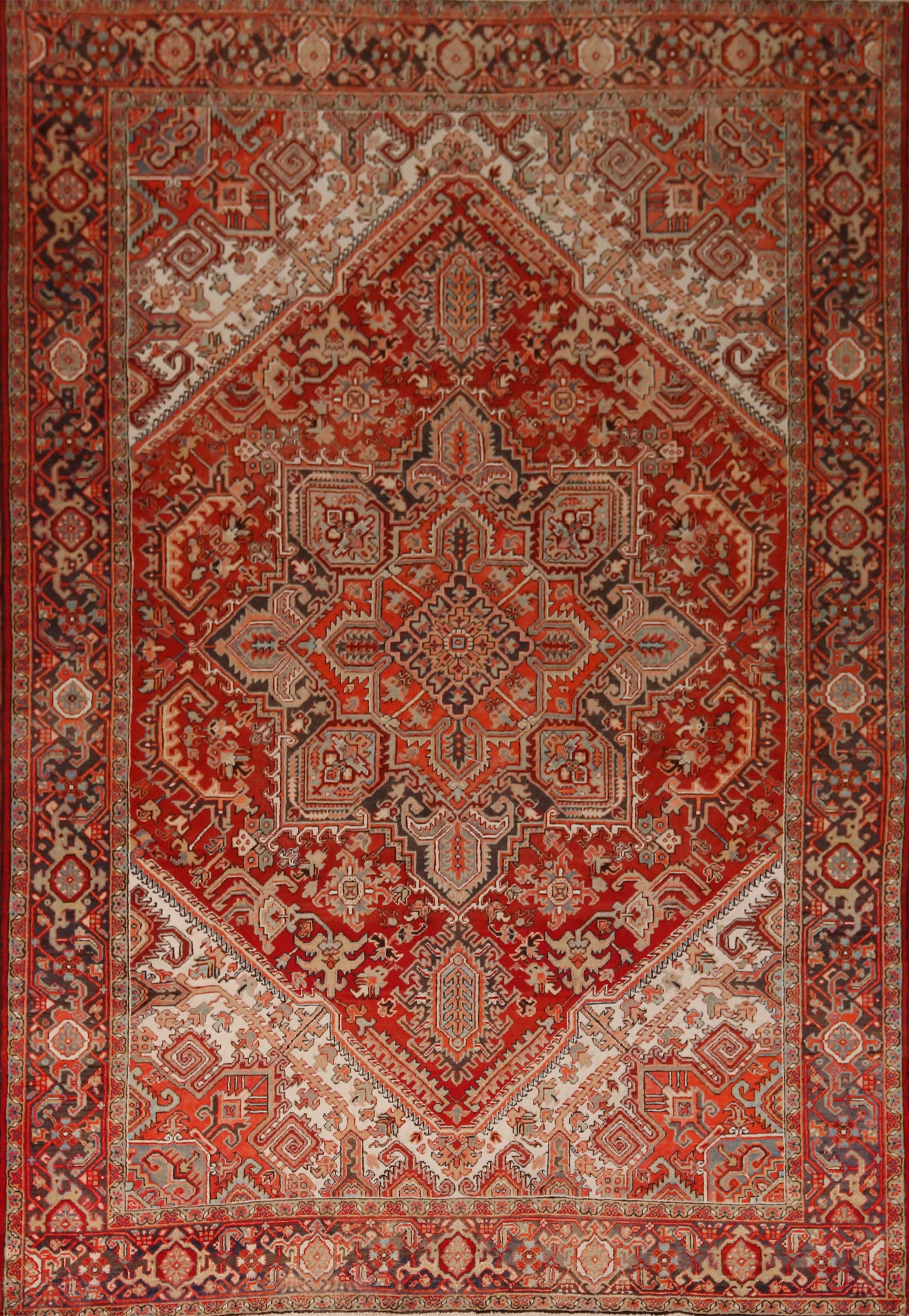A Beautiful Genuine Persia ( Persia ) Heriz rug is Hand Knotted by skillful weavers in Persia ( Persia ) with 100% Wool Material. This rug is in Very Good condition. dimensions are 12' 10'' X 9' 6'' in foot and 391 X 290 in centimeter. the primary color is Oranges & Rust.