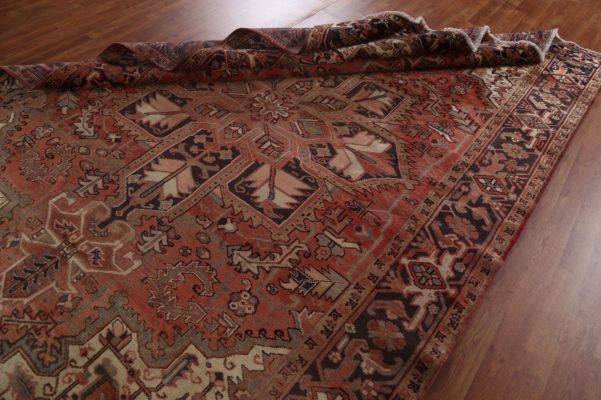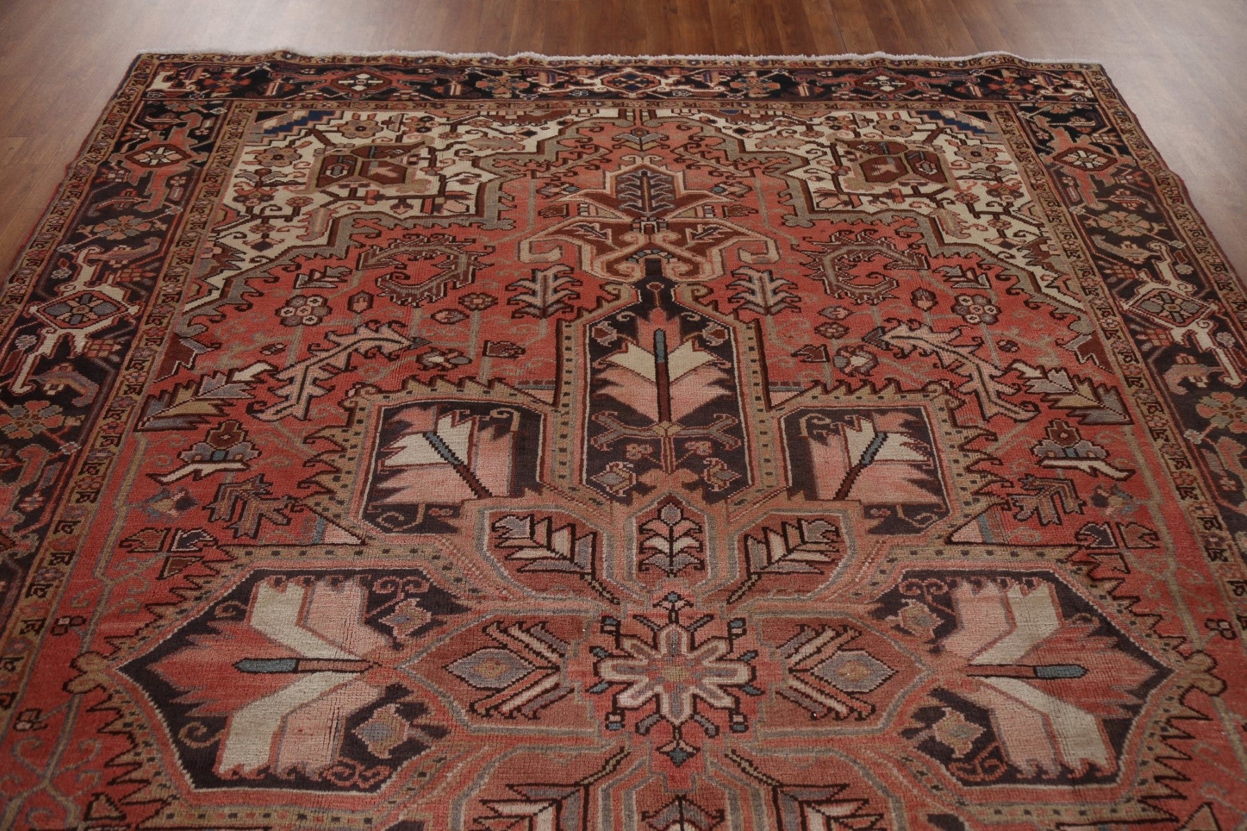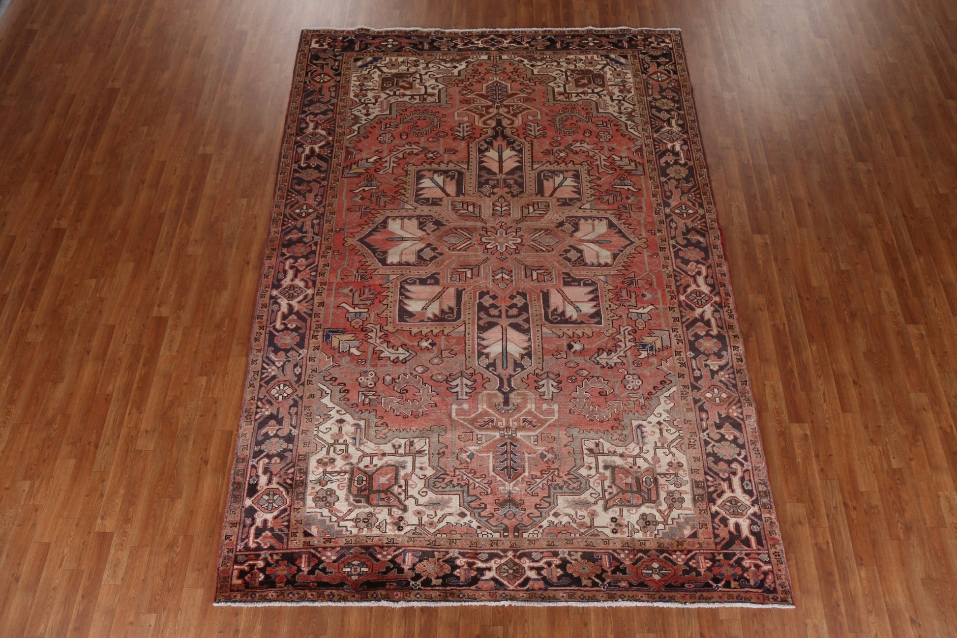 A Beautiful Genuine Persia ( Persia ) Heriz rug is Hand Knotted by skillful weavers in Persia ( Persia ) with 100% Wool Material. This rug is in Very Good condition. dimensions are 10' 7'' X 7' 5'' in foot and 323 X 226 in centimeter. the primary color is Red.