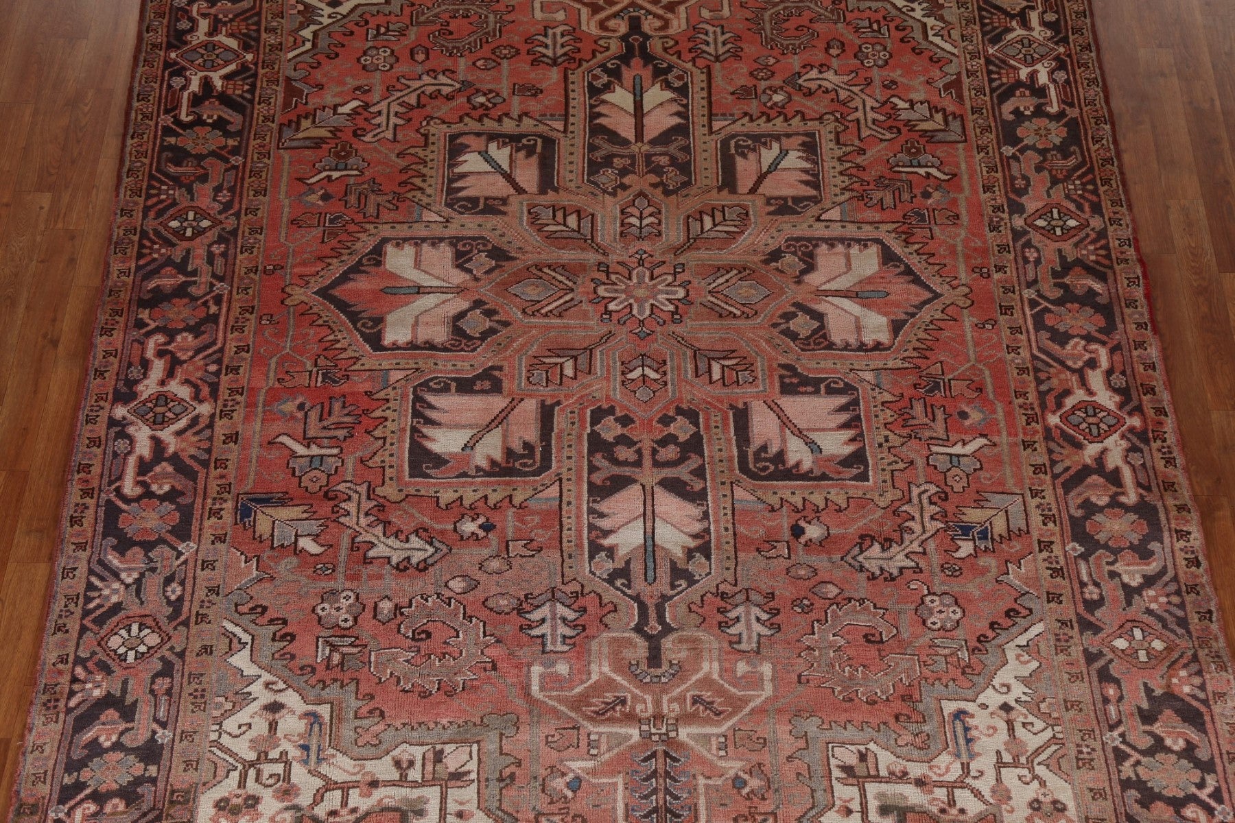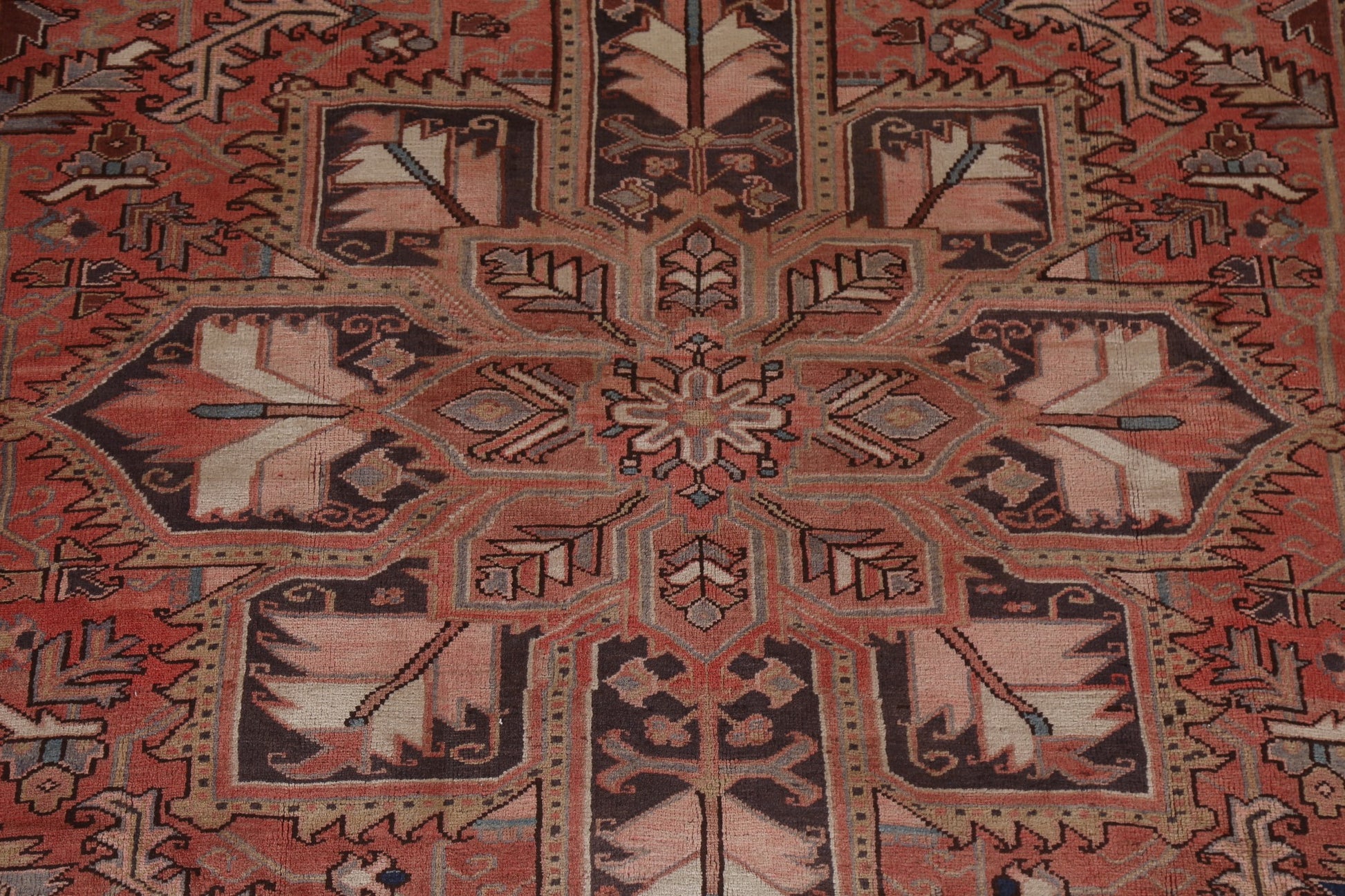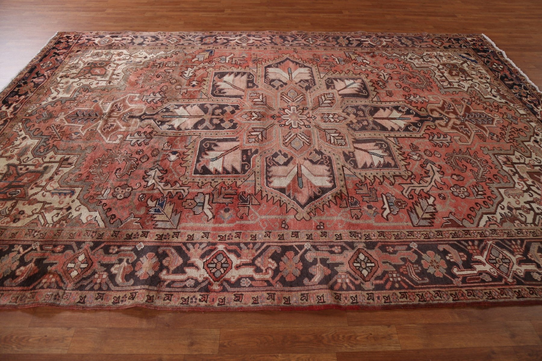 A Beautiful Genuine Persia ( Persia ) Heriz rug is Hand Knotted by skillful weavers in Persia ( Persia ) with 100% Wool Material. This rug is in Very Good condition. dimensions are 10' 7'' X 7' 5'' in foot and 323 X 226 in centimeter. the primary color is Red.