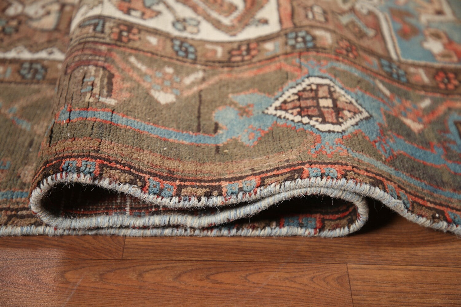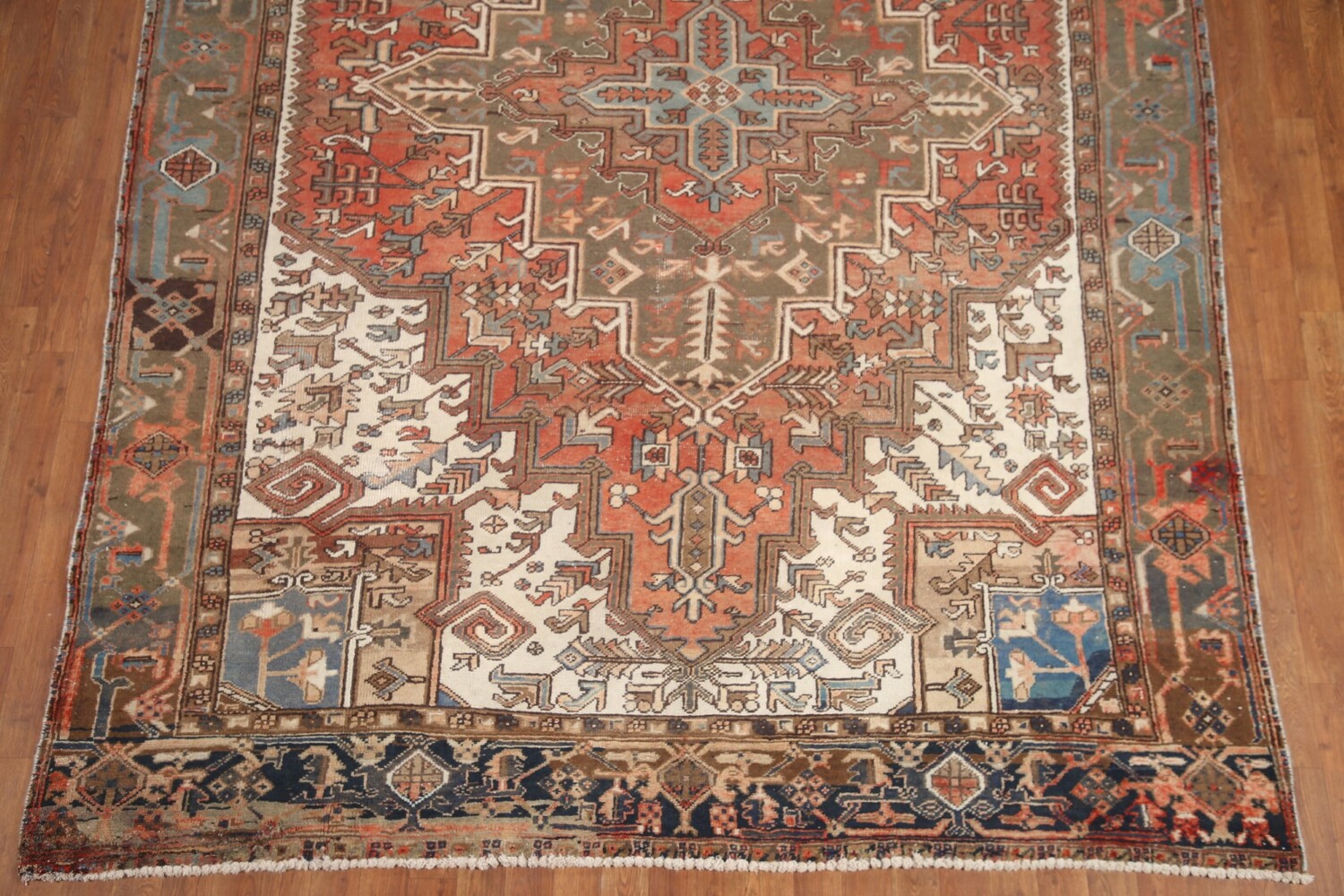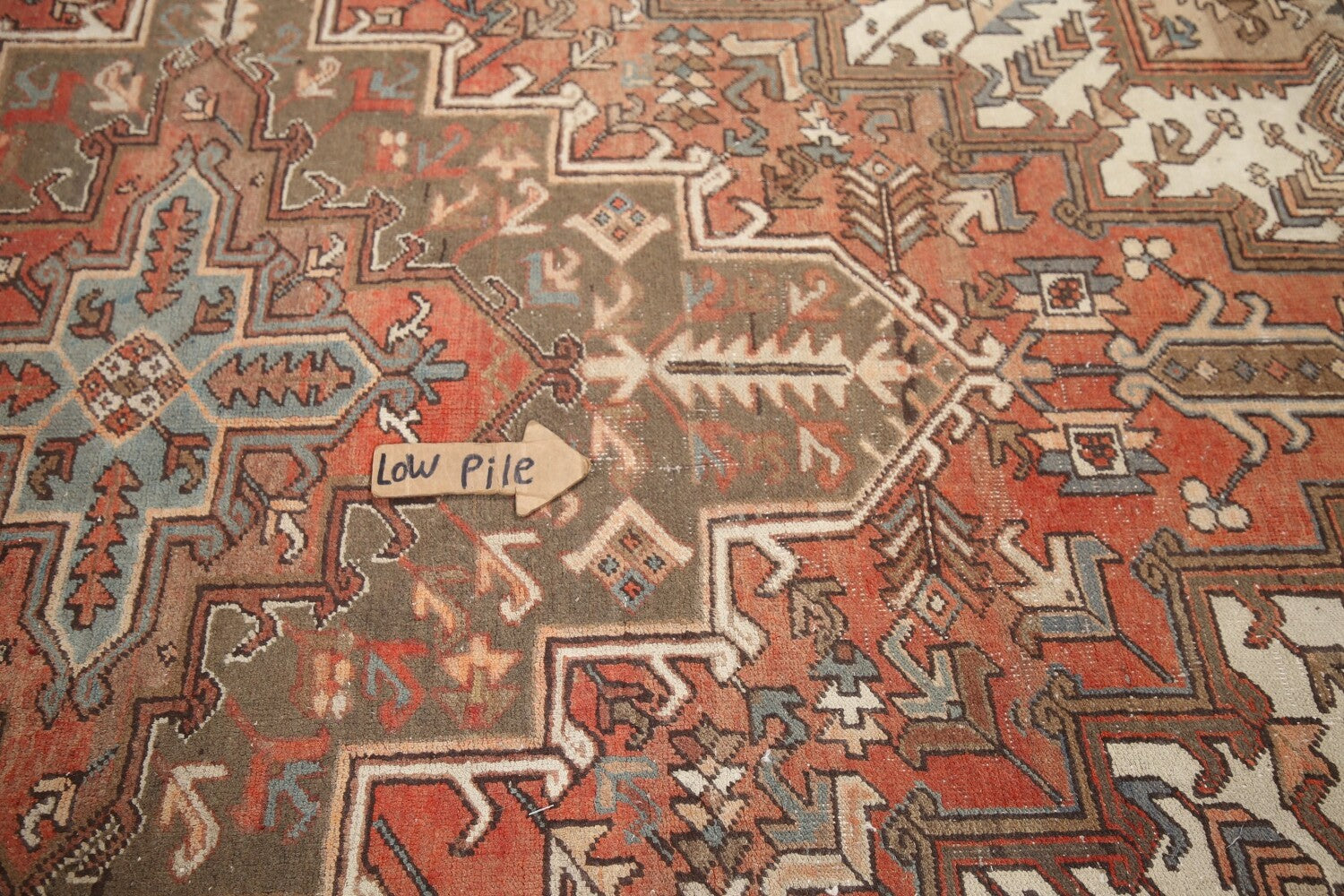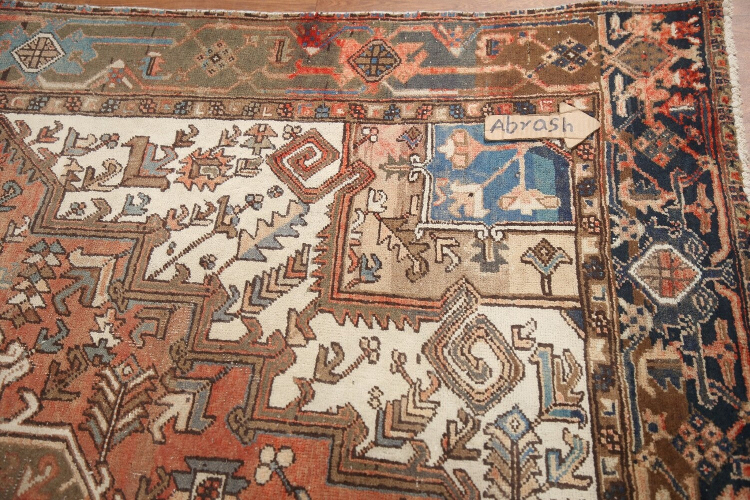 A Beautiful Genuine Persia ( Persia ) Heriz rug is Hand Knotted by skillful weavers in Persia ( Persia ) with 100% Wool Material. This rug is in Very Good (Abrash-Low Pile) condition. dimensions are 10' 6'' X 7' 5'' in foot and 320 X 226 in centimeter. the primary color is Red.