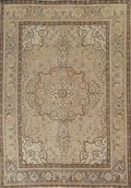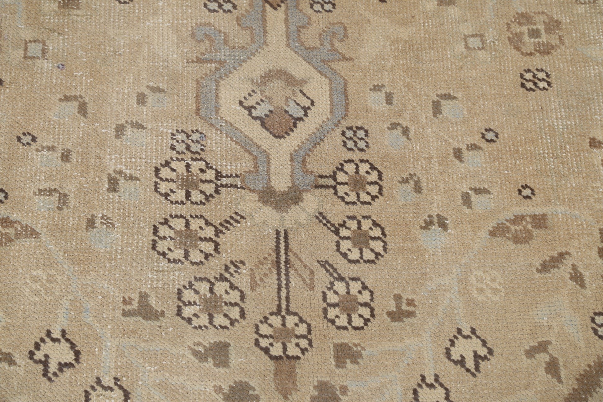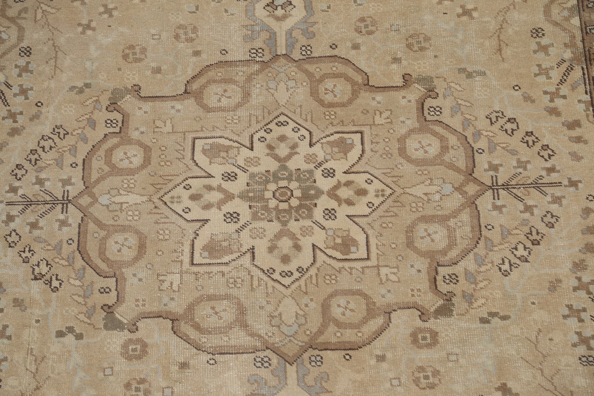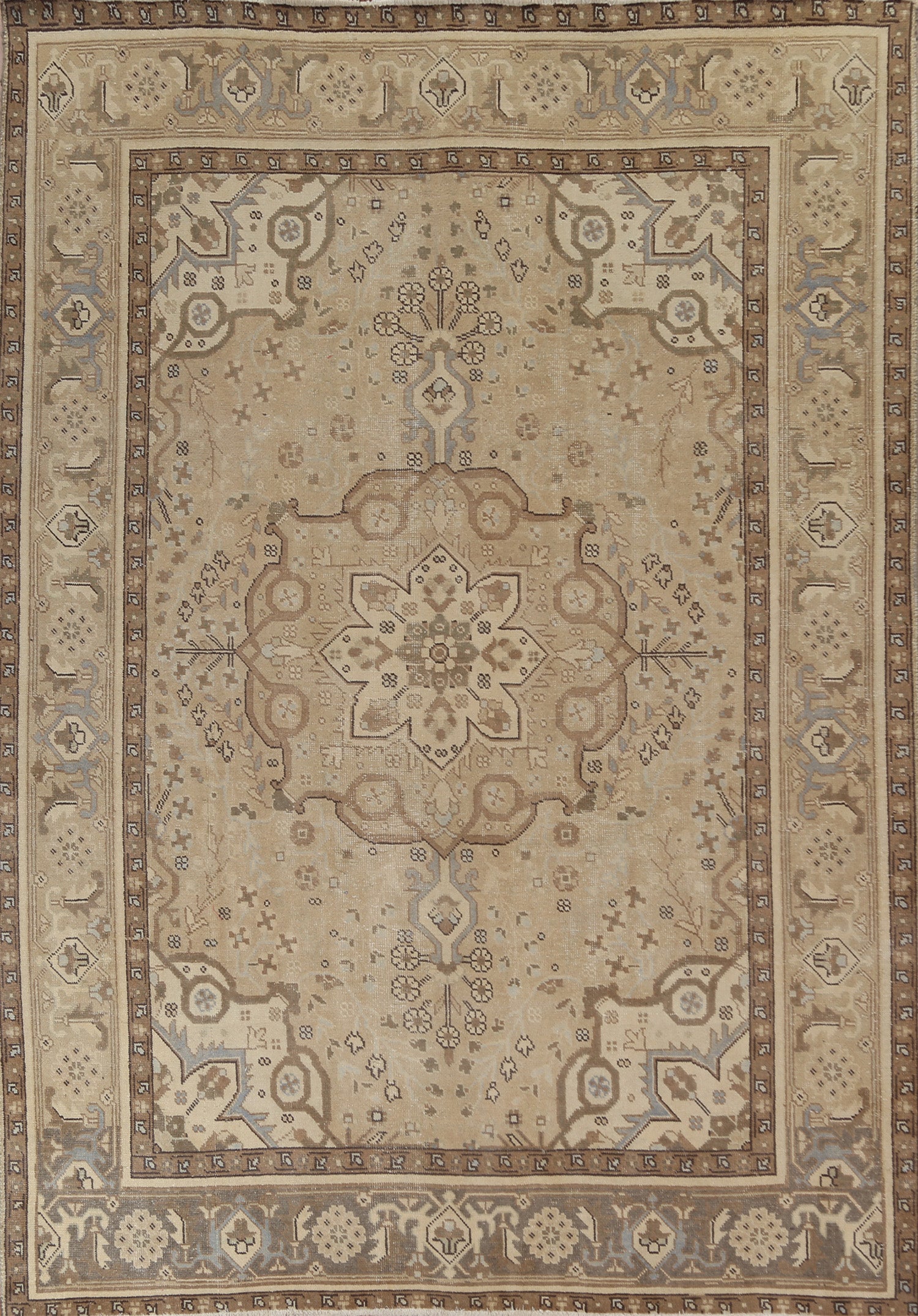 A Beautiful Genuine Persia ( Persia ) Heriz rug is Hand Knotted by skillful weavers in Persia ( Persia ) with 100% Wool Material. This rug is in Very Good (Evenly Low Pile) condition. dimensions are 10' 7'' X 8' 3'' in foot and 323 X 251 in centimeter. the primary color is Beige & Ivories.