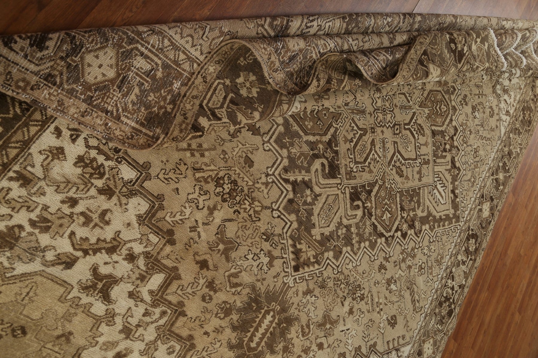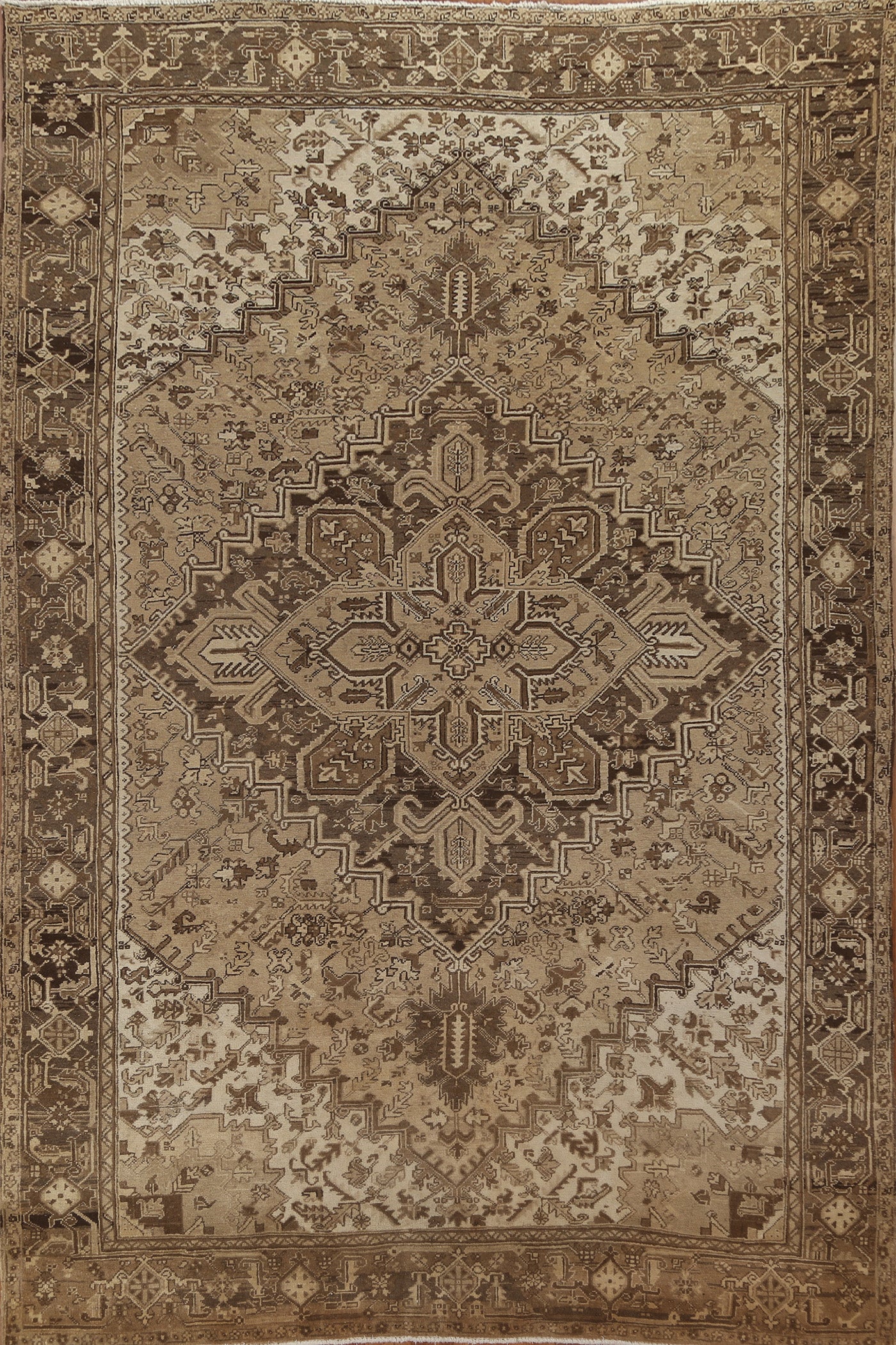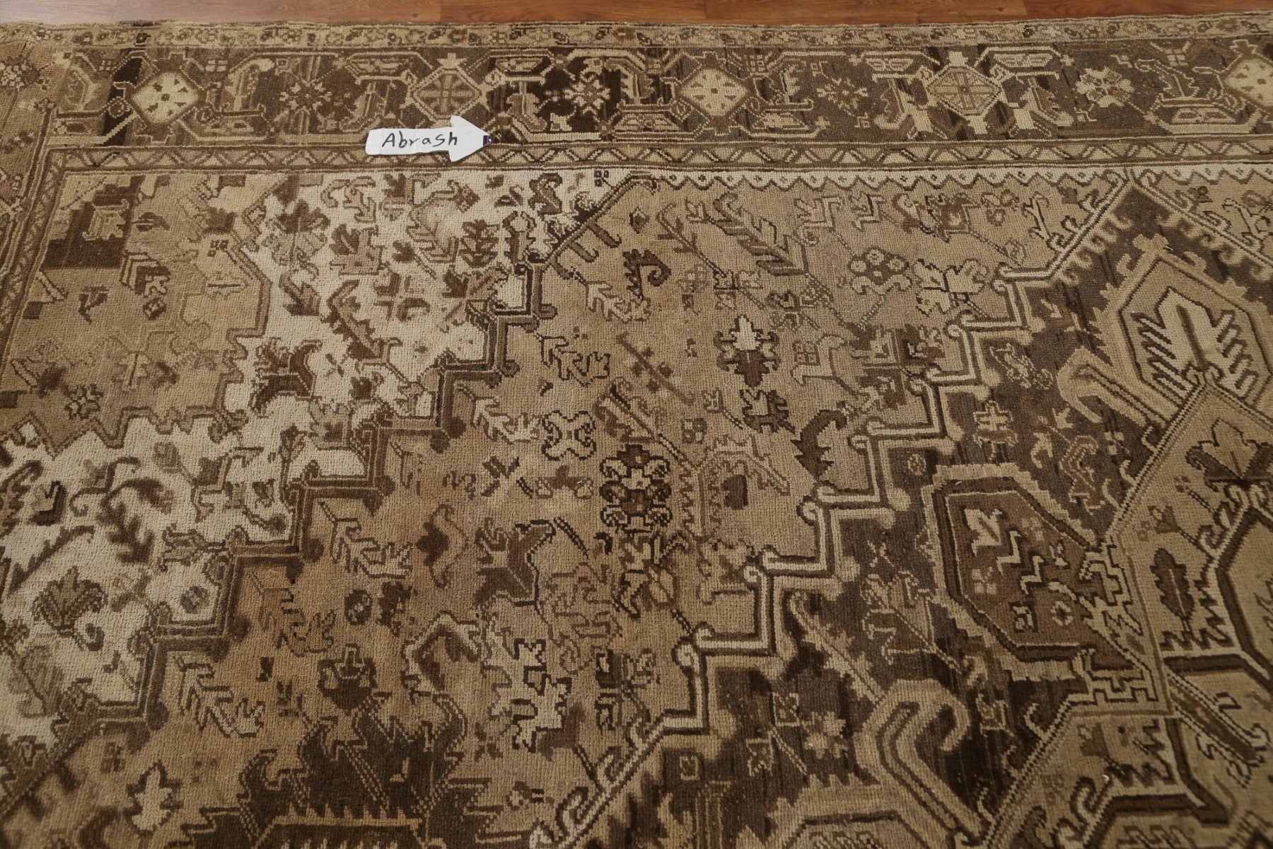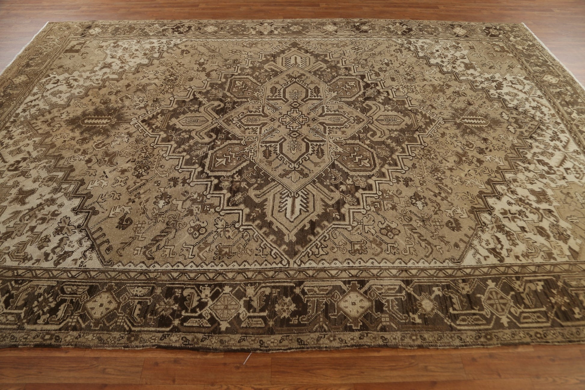 A Beautiful Genuine Persia ( Persia ) Heriz rug is Hand Knotted by skillful weavers in Persia ( Persia ) with 100% Wool Material. This rug is in Very Good (Abrash) condition. dimensions are 11' 9'' X 8' 6'' in foot and 358 X 259 in centimeter. the primary color is Beige & Ivories.
