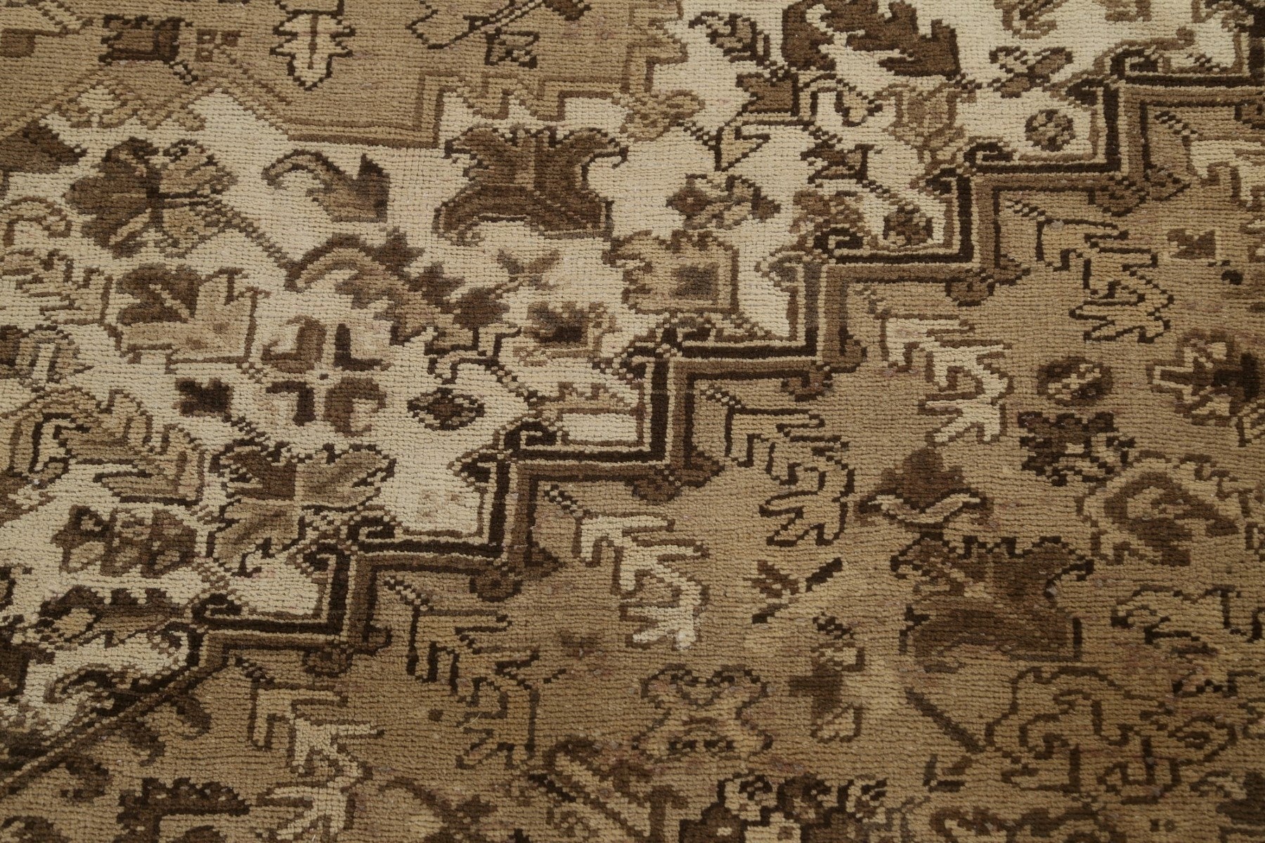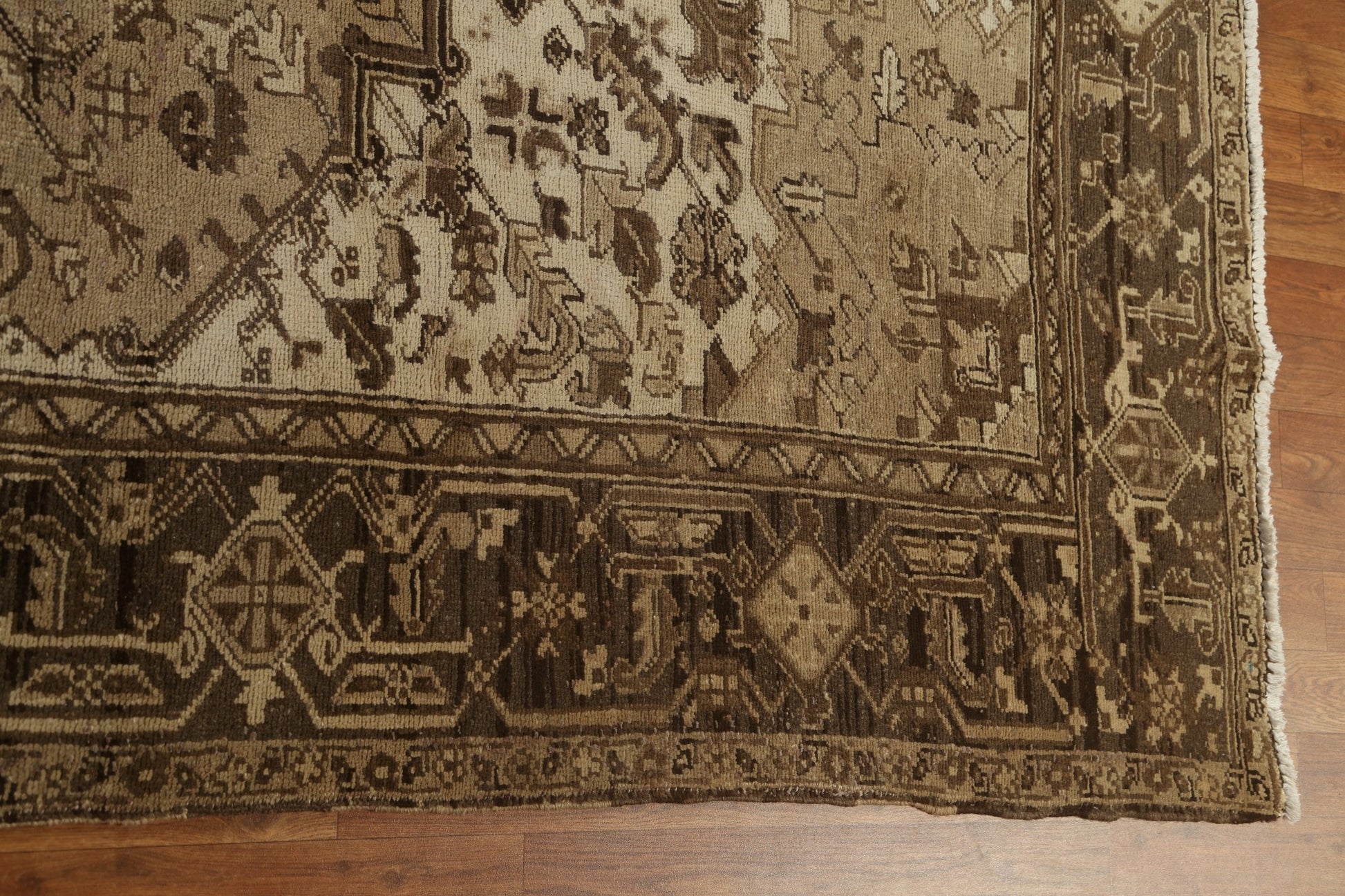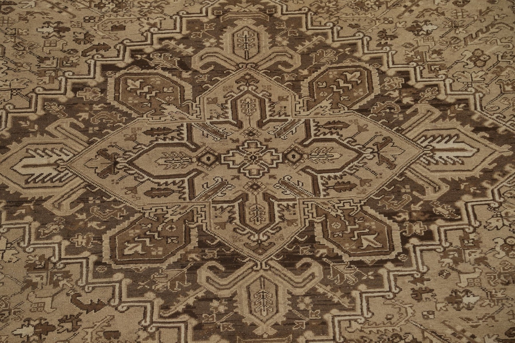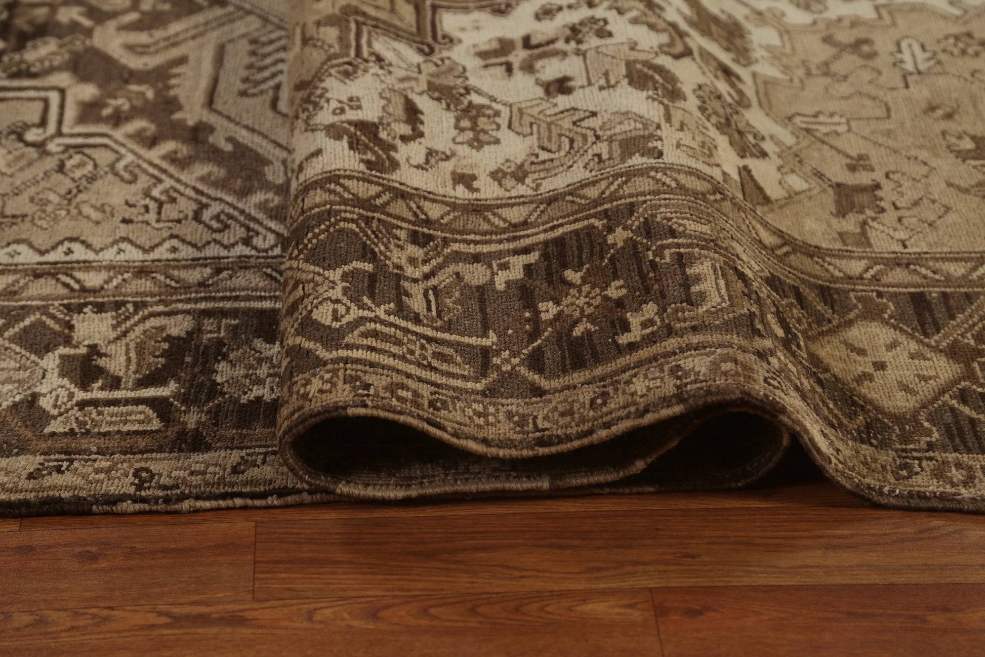A Beautiful Genuine Persia ( Persia ) Heriz rug is Hand Knotted by skillful weavers in Persia ( Persia ) with 100% Wool Material. This rug is in Very Good (Abrash) condition. dimensions are 11' 9'' X 8' 6'' in foot and 358 X 259 in centimeter. the primary color is Beige & Ivories.