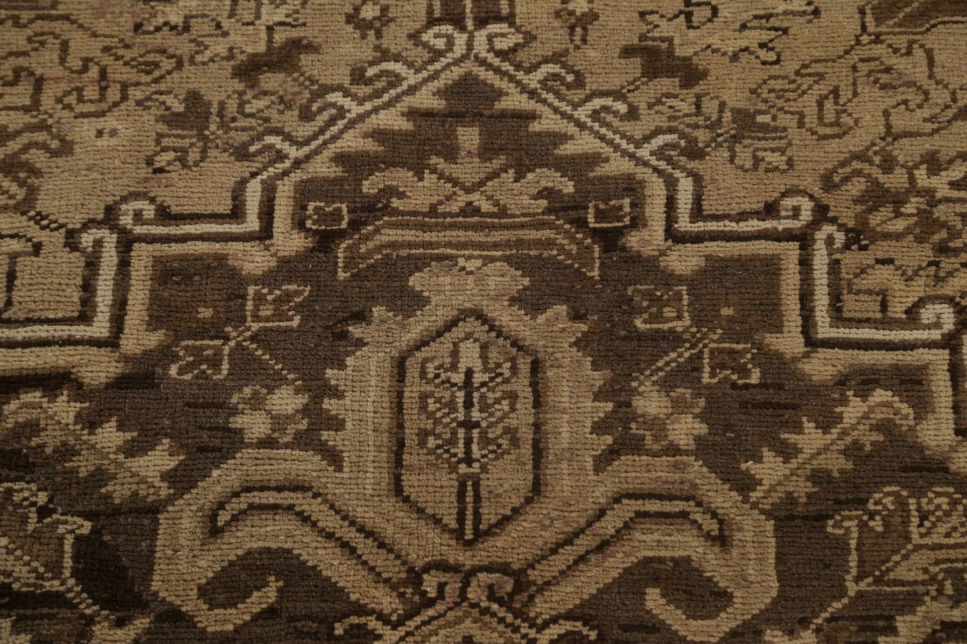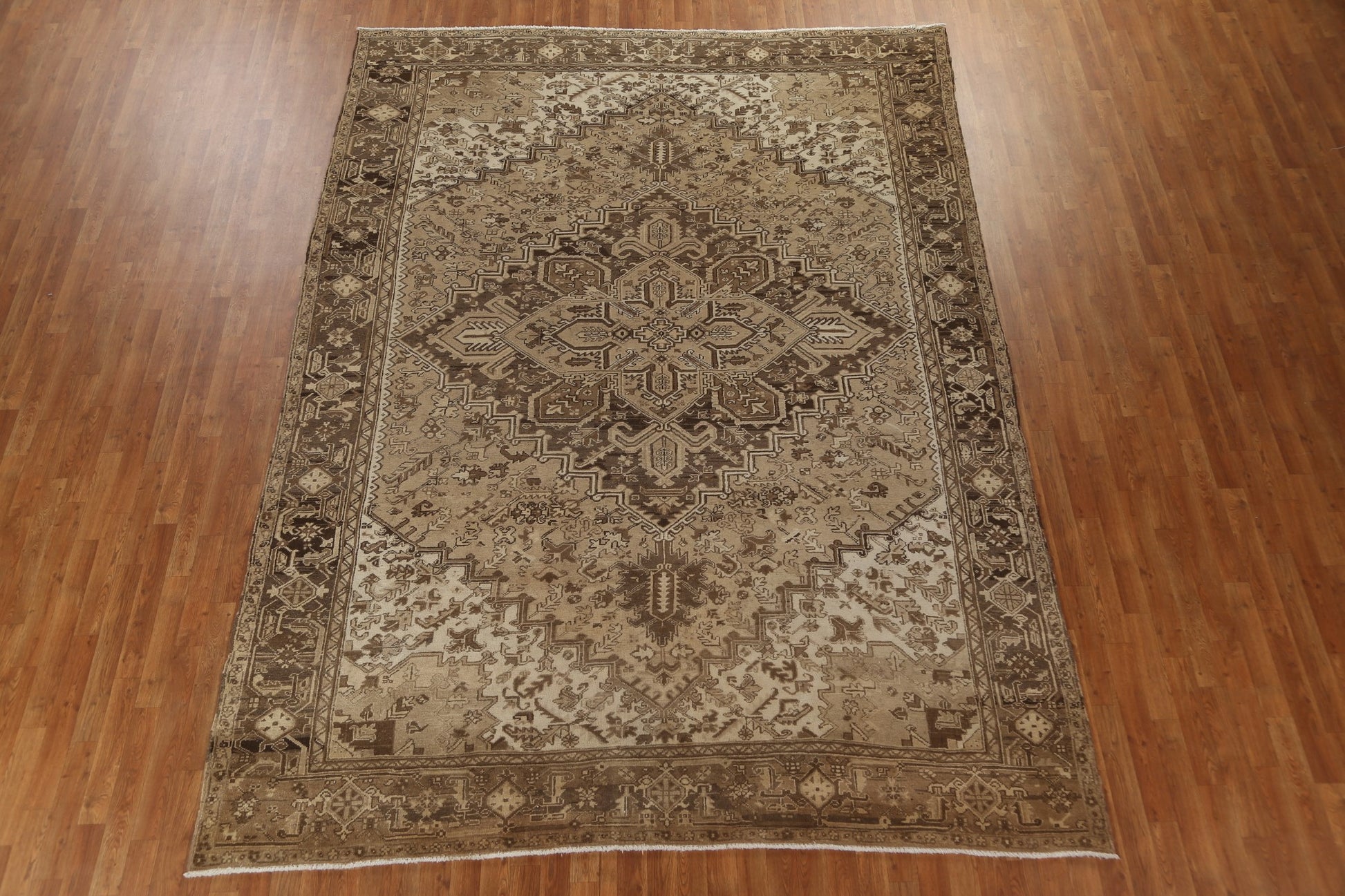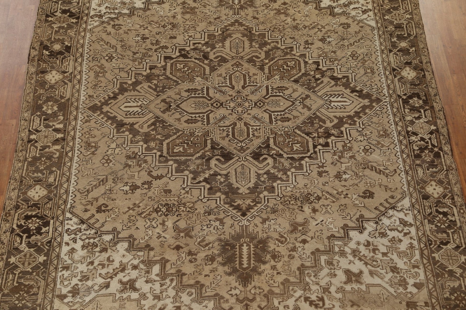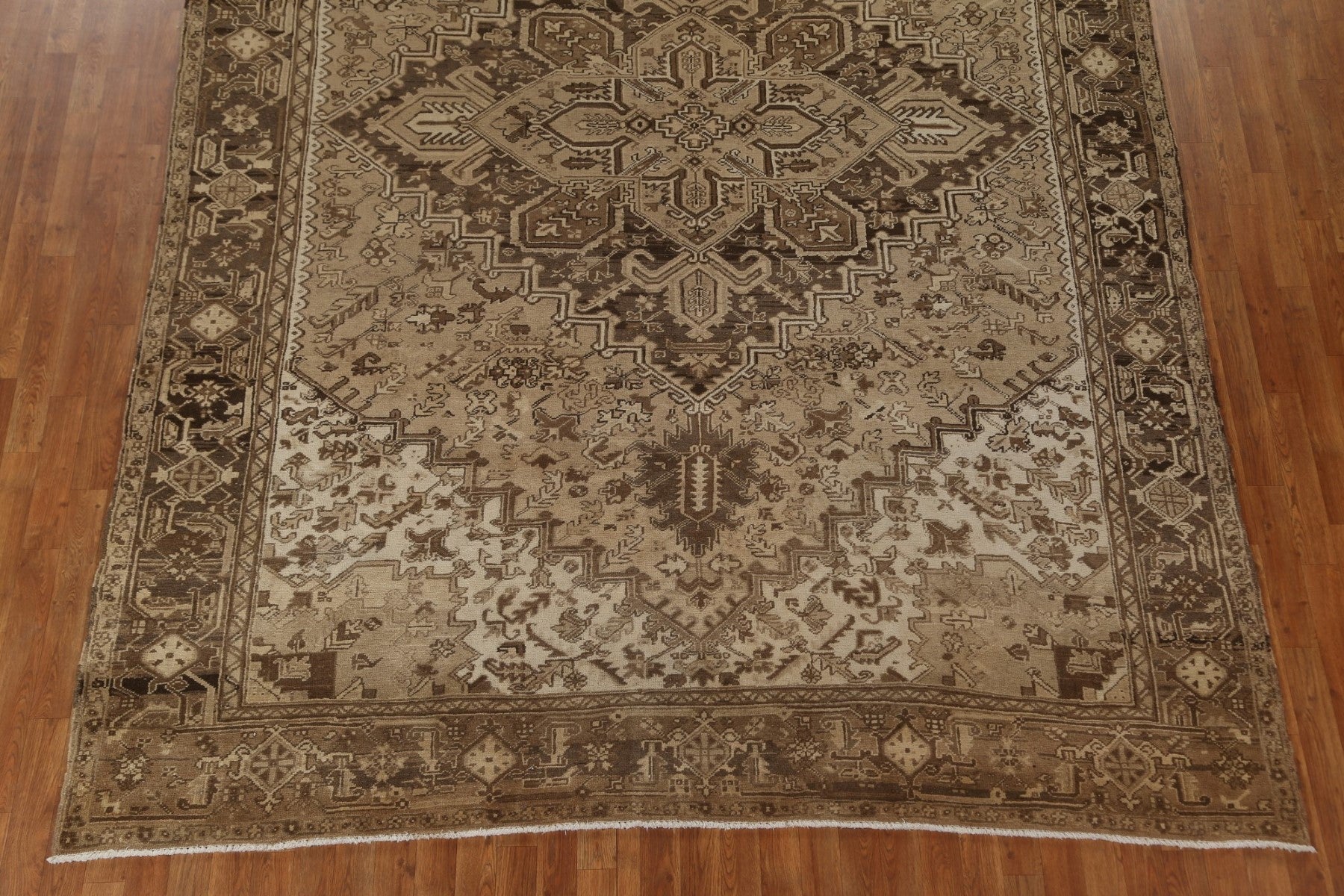 A Beautiful Genuine Persia ( Persia ) Heriz rug is Hand Knotted by skillful weavers in Persia ( Persia ) with 100% Wool Material. This rug is in Very Good (Abrash) condition. dimensions are 11' 9'' X 8' 6'' in foot and 358 X 259 in centimeter. the primary color is Beige & Ivories.