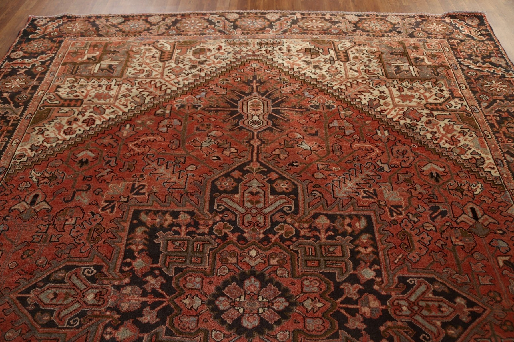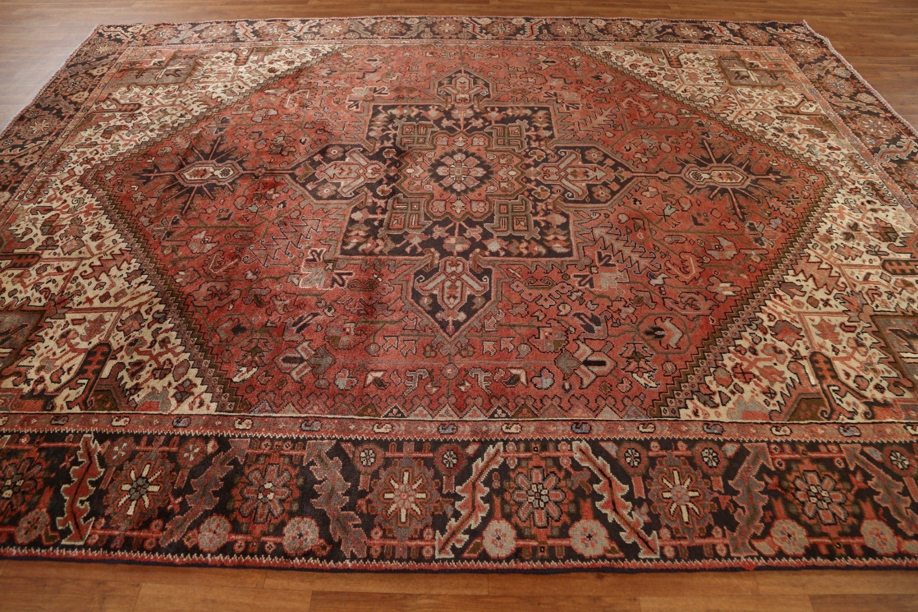 A Beautiful Genuine Persia ( Persia ) Heriz rug is Hand Knotted by skillful weavers in Persia ( Persia ) with 100% Wool Material. This rug is in Very Good condition. dimensions are 12' 3'' X 9' 2'' in foot and 373 X 279 in centimeter. the primary color is Red.