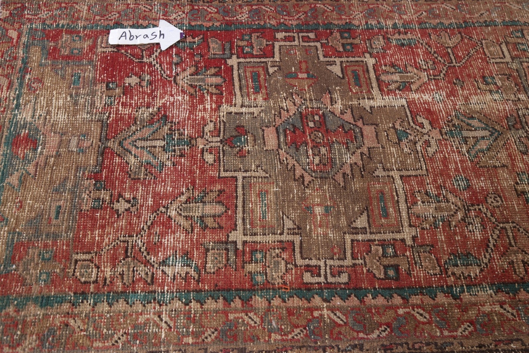 A Beautiful Genuine Persia ( Persia ) Heriz rug is Hand Knotted by skillful weavers in Persia ( Persia ) with 100% Wool Material. This rug is in Good (Evenly Low Pile-Abrash) condition. dimensions are 10' 0'' X 3' 4'' in foot and 305 X 102 in centimeter. the primary color is Red.