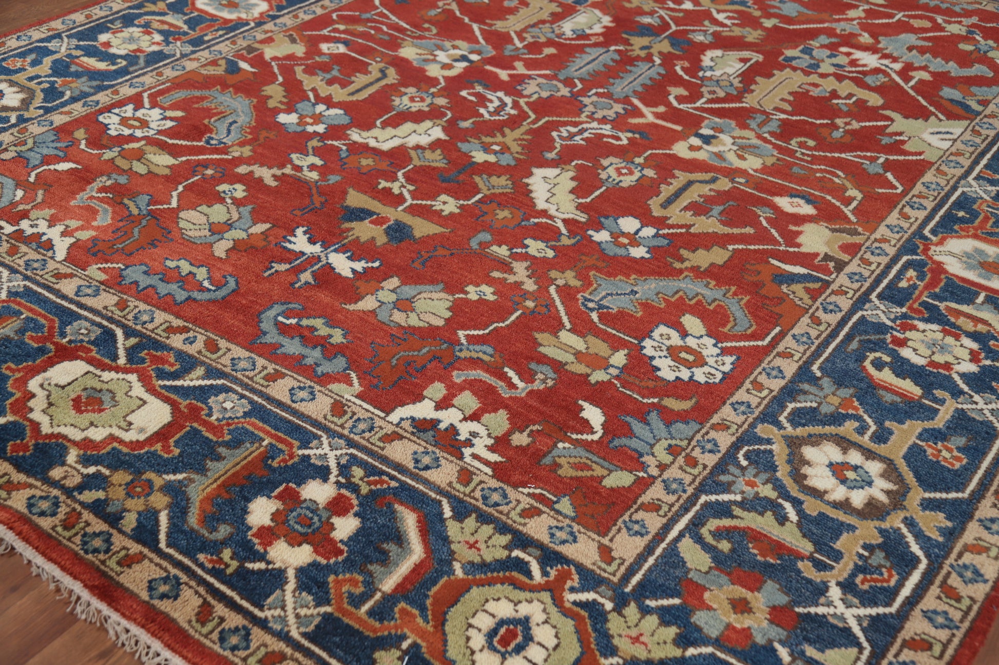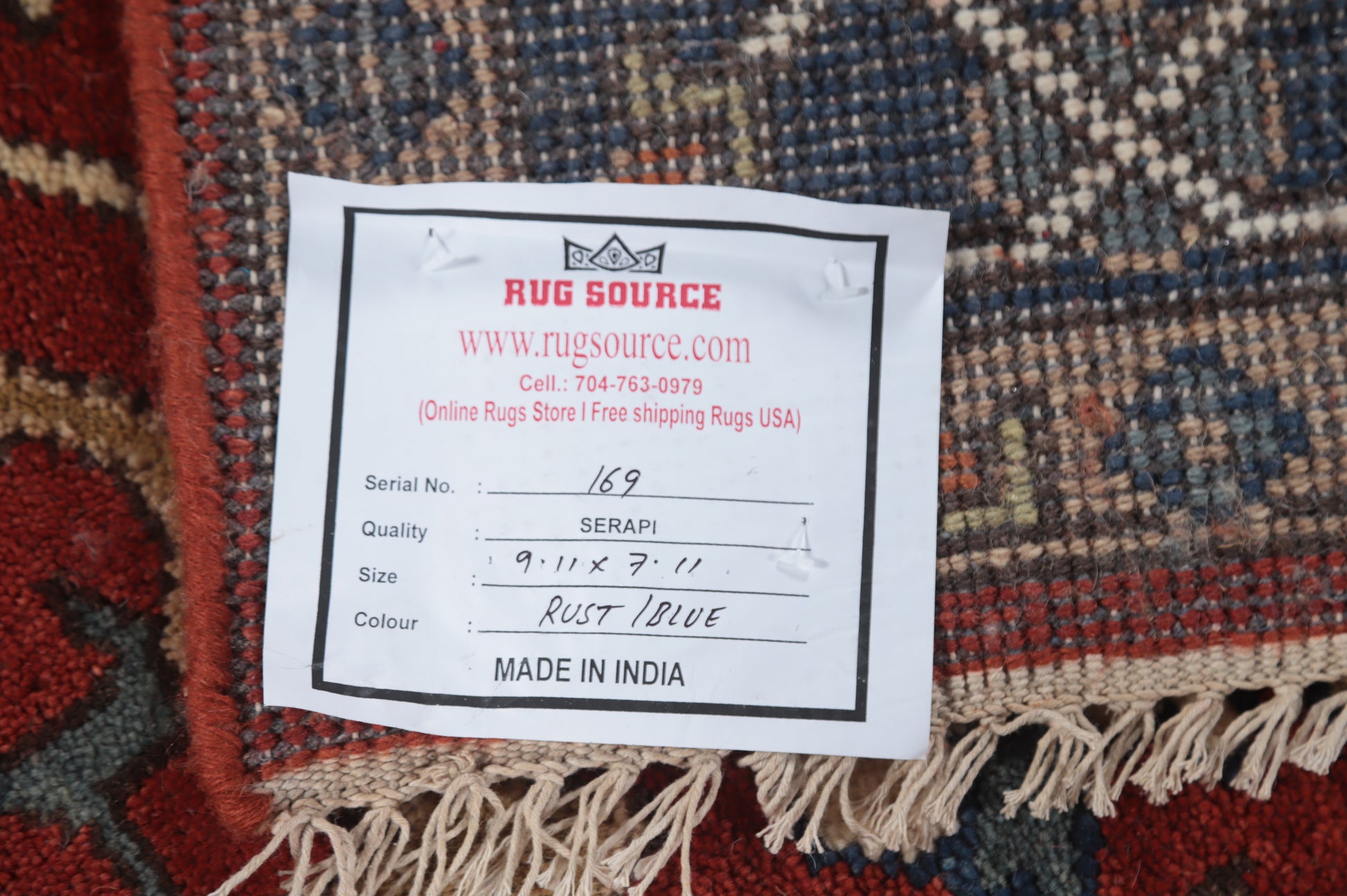 A Beautiful Genuine India Heriz (serapi) rug is Hand Knotted by skillful weavers in India with 100% Wool Material. This rug is in New, First Quality condition. dimensions are 9' 11'' X 7' 11'' in foot and 302 X 241 in centimeter. the primary color is Oranges & Rust.