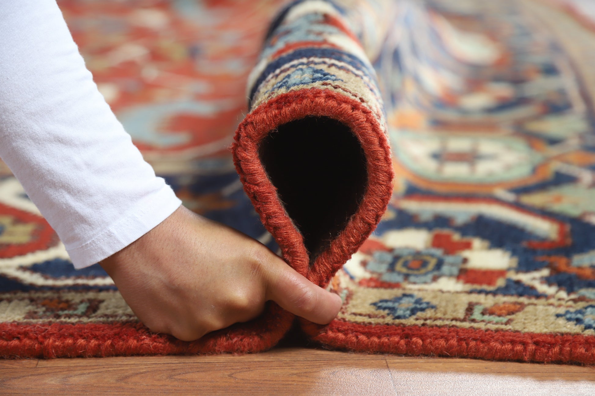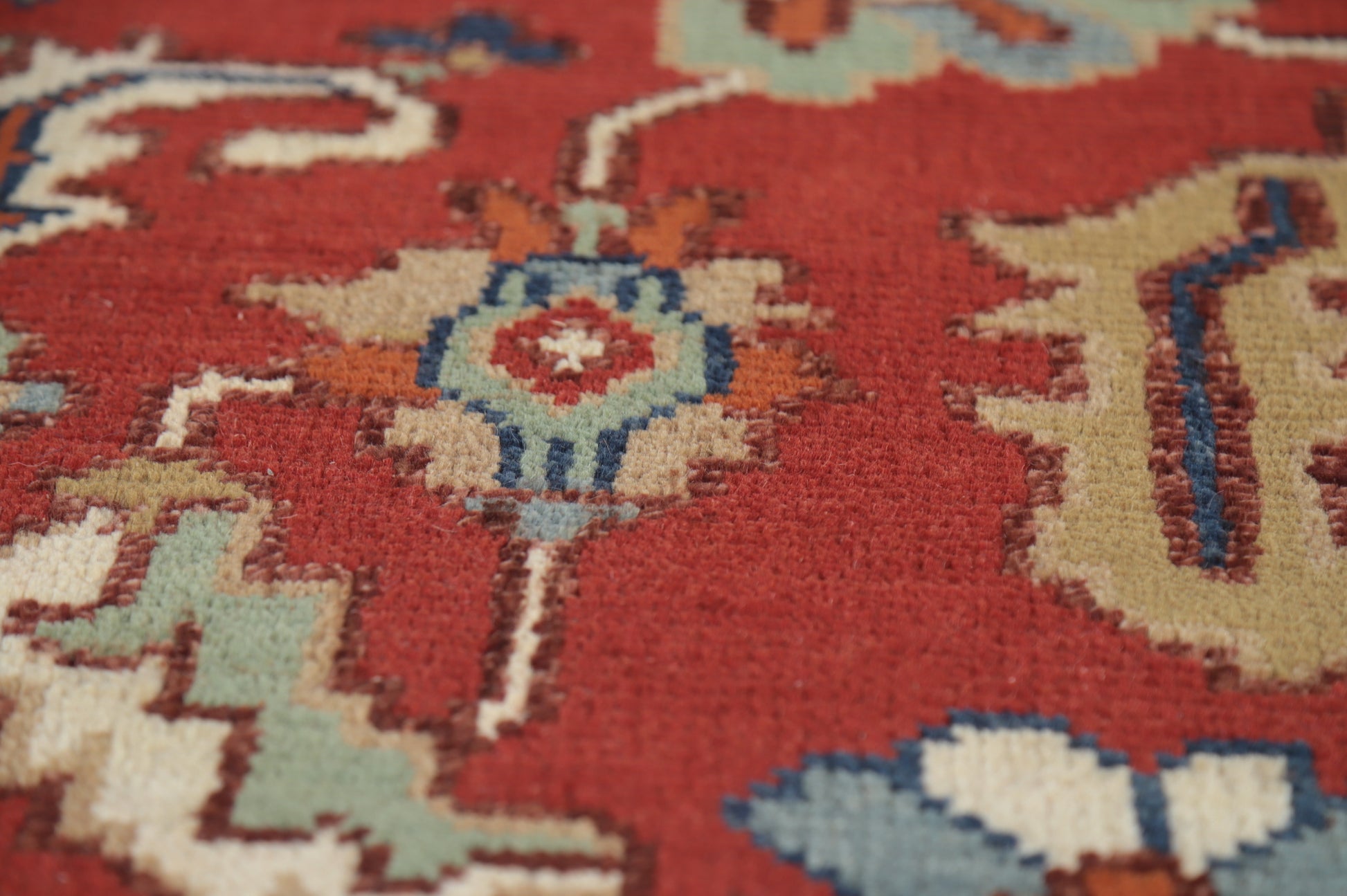 A Beautiful Genuine India Heriz (serapi) rug is Hand Knotted by skillful weavers in India with 100% Wool Material. This rug is in New, First Quality condition. dimensions are 9' 10'' X 7' 10'' in foot and 300 X 239 in centimeter. the primary color is Oranges & Rust.