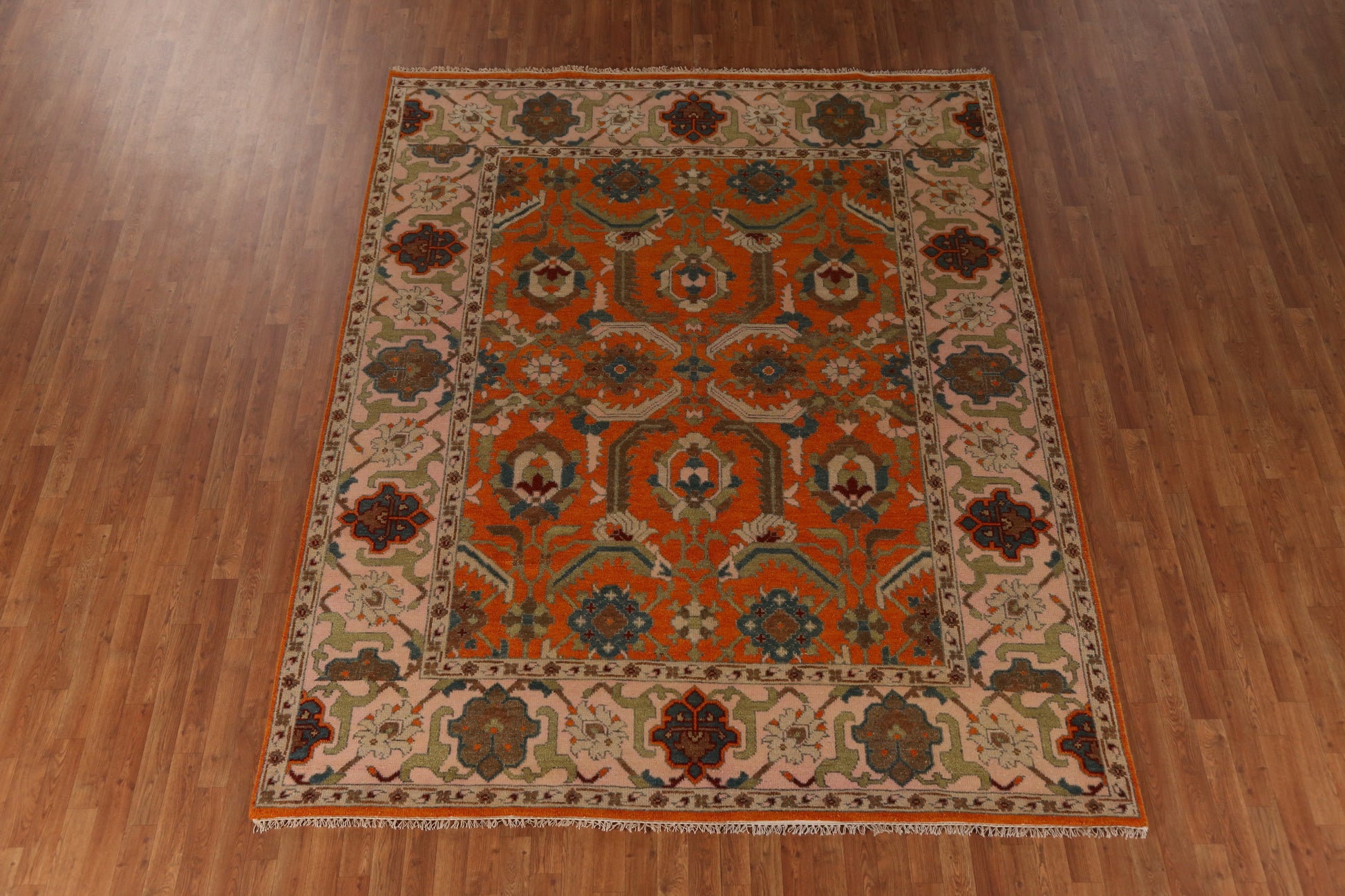 A Beautiful Genuine India Heriz (serapi) rug is Hand Knotted by skillful weavers in India with 100% Wool Material. This rug is in New, First Quality condition. dimensions are 9' 11'' X 7' 10'' in foot and  302 X 239 in centimeter. the primary color is Oranges & Rust.
