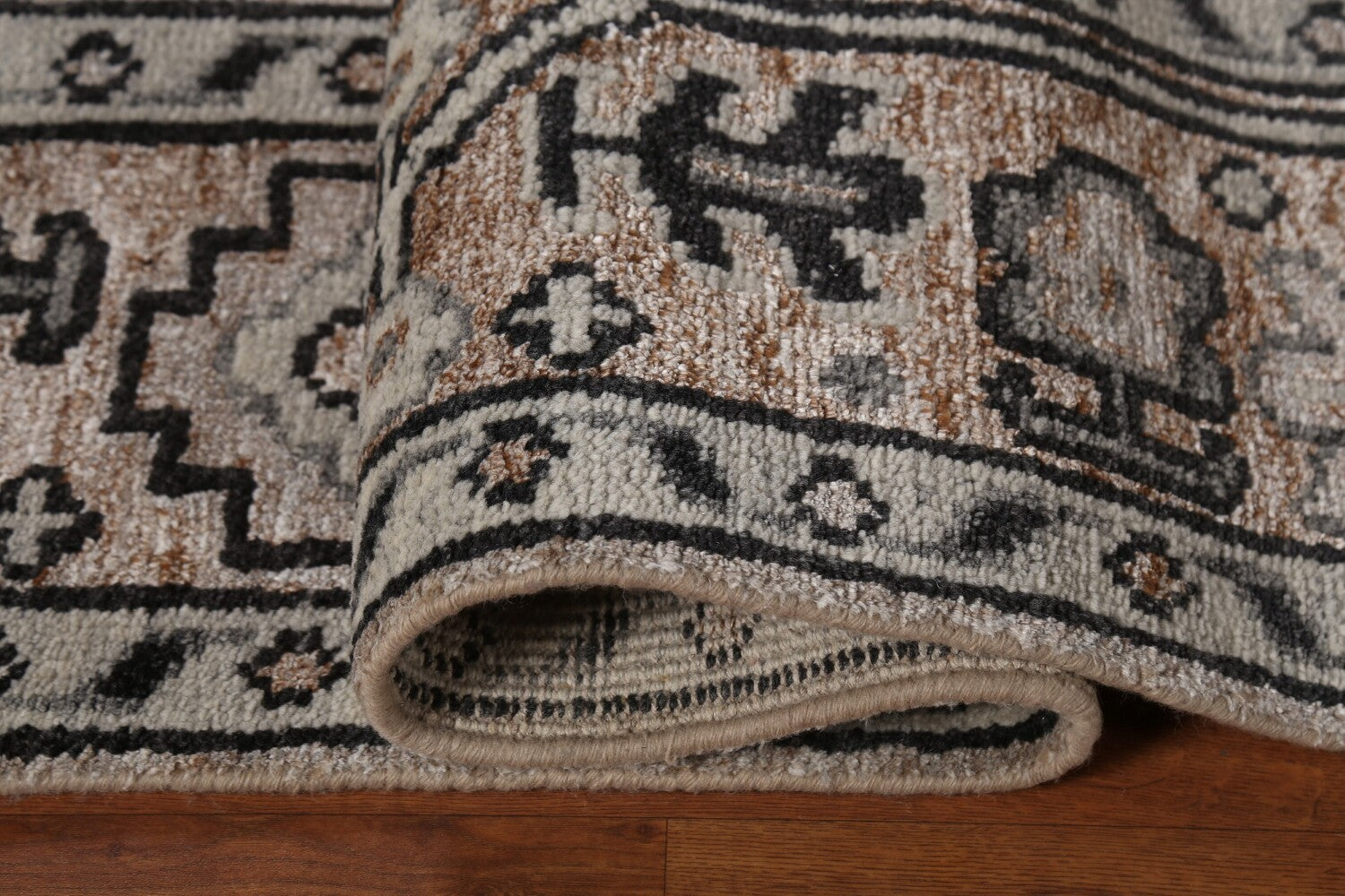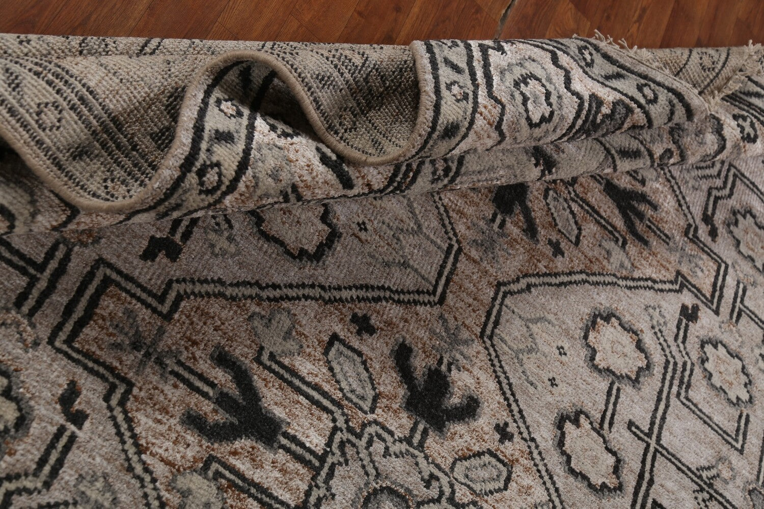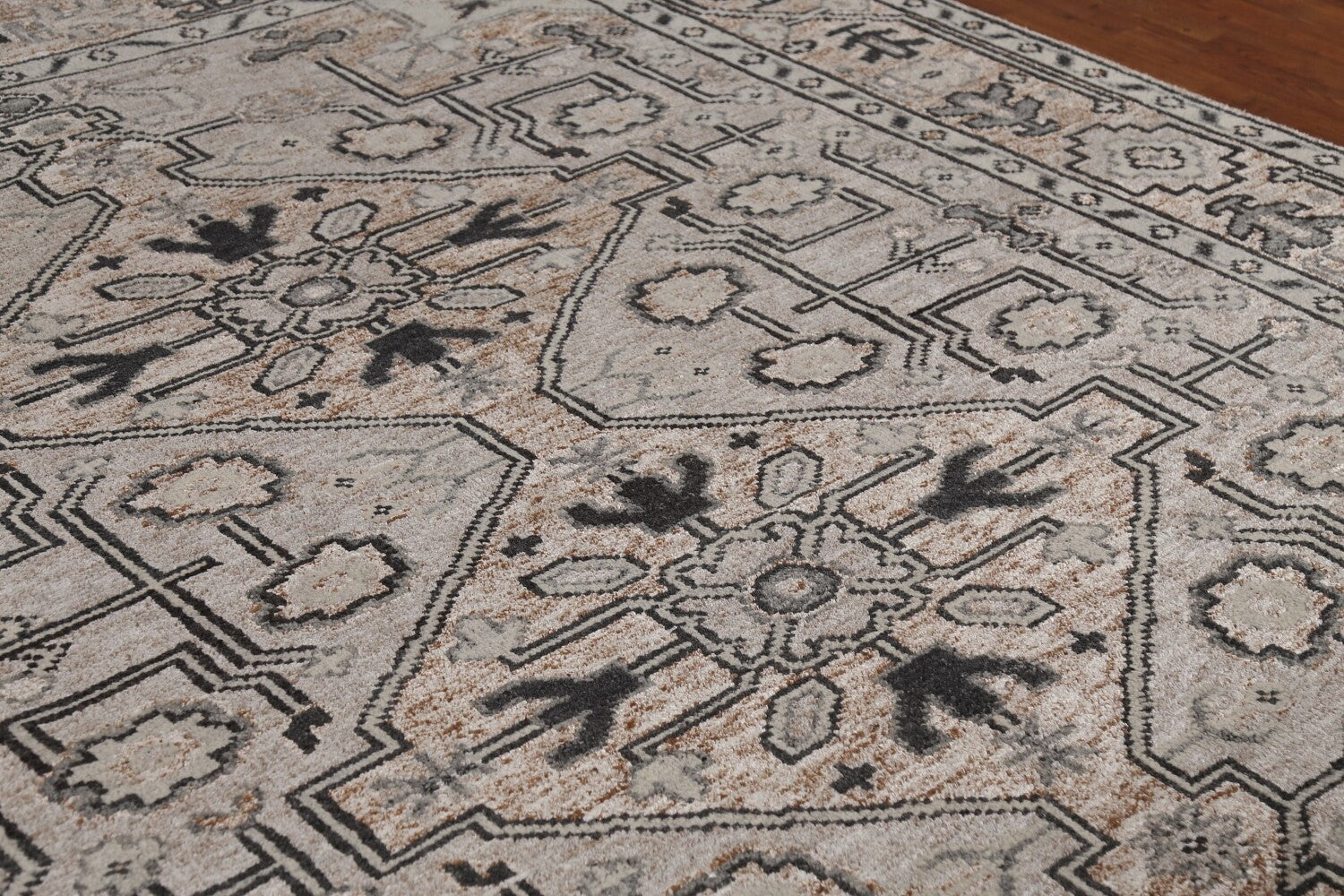 A Beautiful Genuine India Heriz (serapi) rug is Hand Knotted by skillful weavers in India with 100% Wool Material. This rug is in New, First Quality condition. dimensions are 9' 10'' X 8' 0'' in foot and 300 X 244 in centimeter. the primary color is Greys & Charcoal.