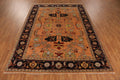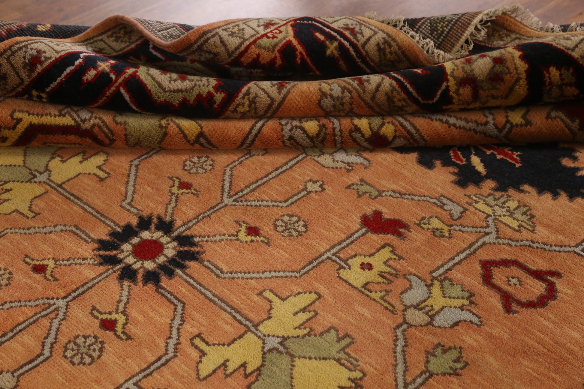 A Beautiful Genuine India Heriz (serapi) rug is Hand Knotted by skillful weavers in India with 100% Wool Material. This rug is in New, First Quality condition. dimensions are 11' 10'' X 8' 10'' in foot and 361 X 269 in centimeter. the primary color is Oranges & Rust.