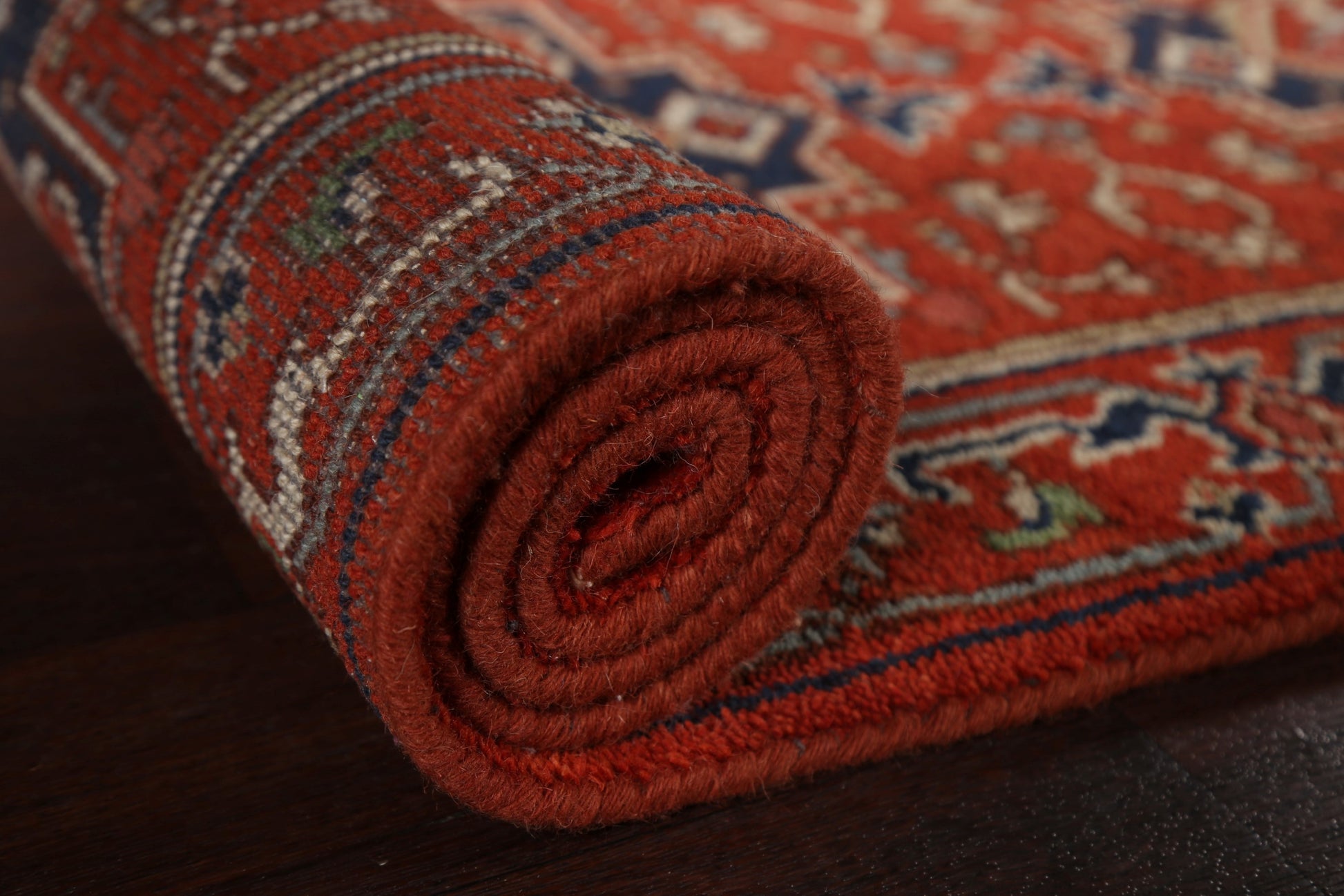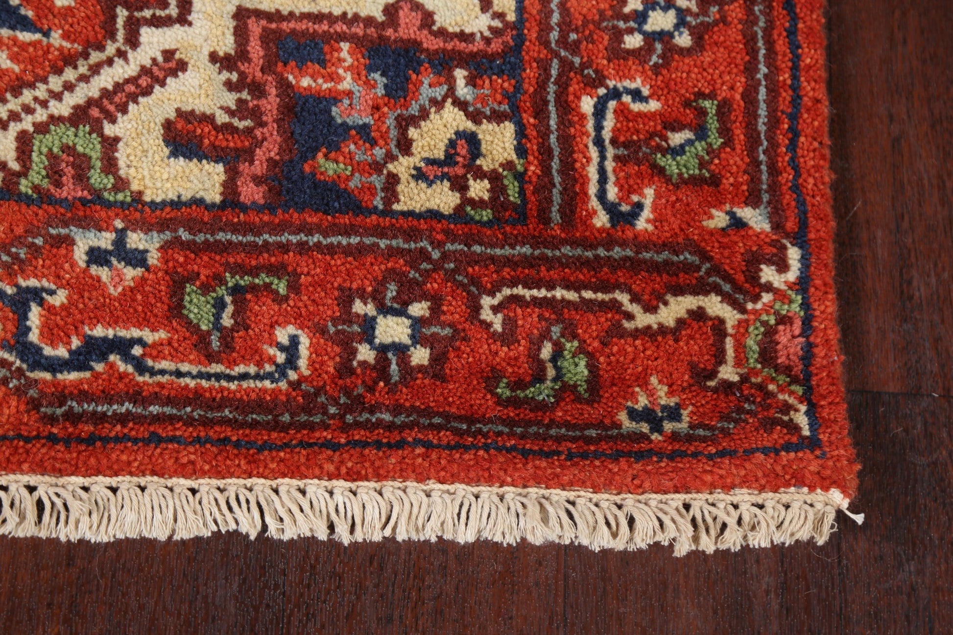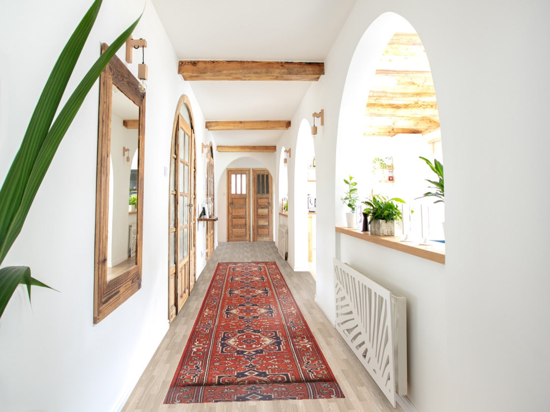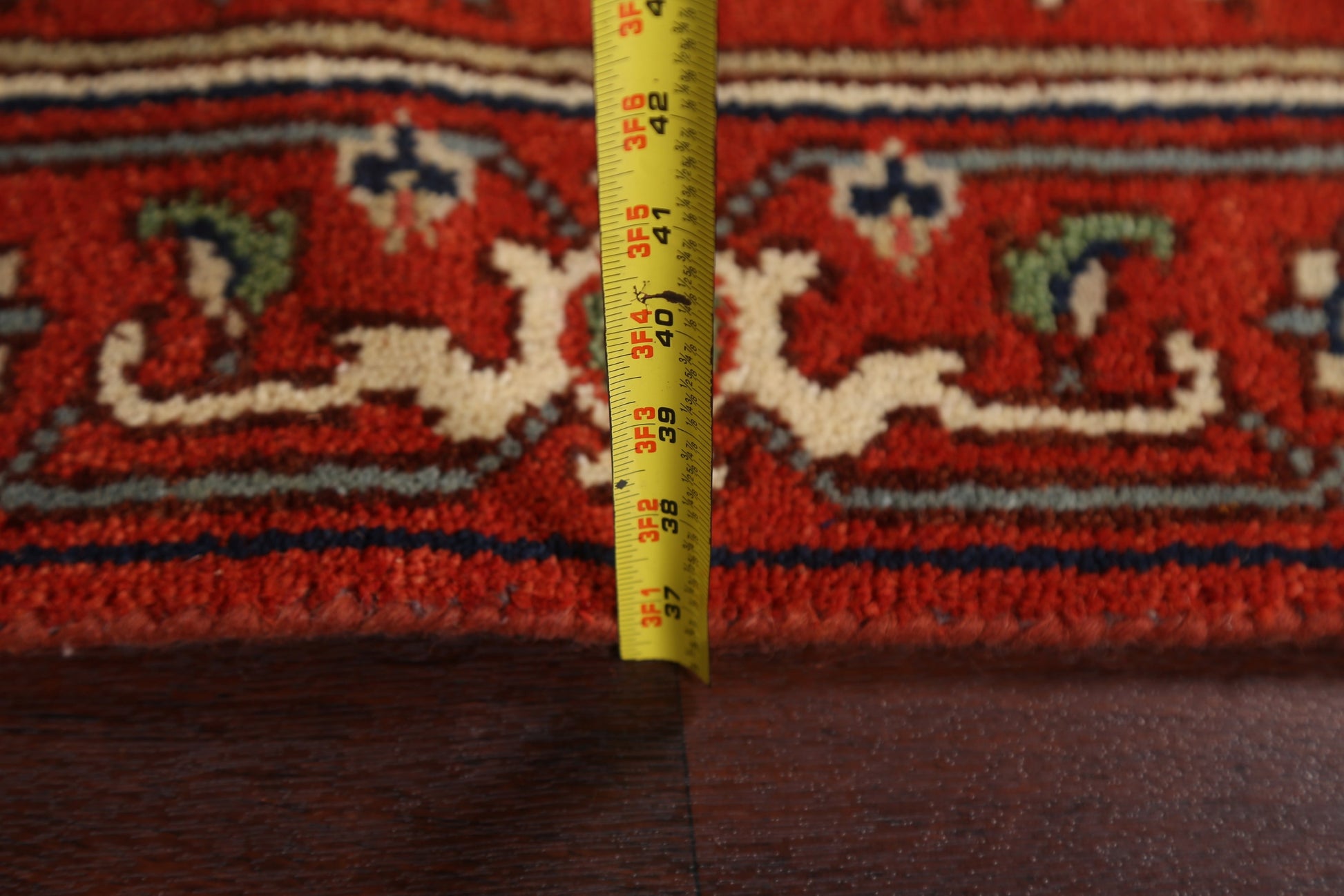 A Beautiful Genuine India Heriz (serapi) rug is Hand Knotted by skillful weavers in India with 100% Wool Material. This rug is in New, First Quality condition. dimensions are 15' 9'' X 2' 7'' in foot and 480 X 79 in centimeter. the primary color is Red.