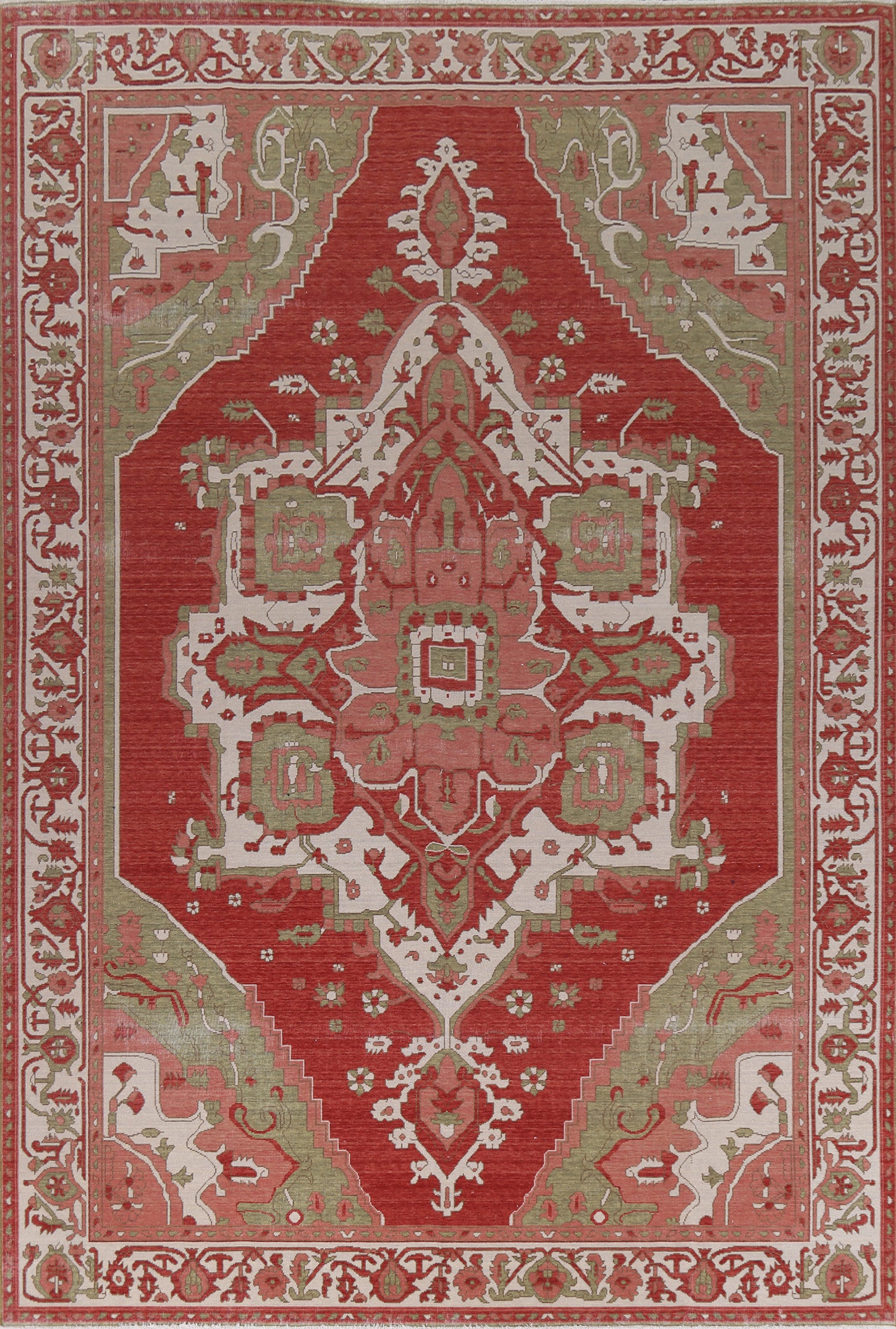 A Beautiful Genuine Turkey Heriz (serapi) rug is Hand Knotted by skillful weavers in Turkey with 100% Wool Material. This rug is in New, First Quality condition. dimensions are 11' 9'' X 9' 0'' in foot and 358 X 274 in centimeter. the primary color is Red.