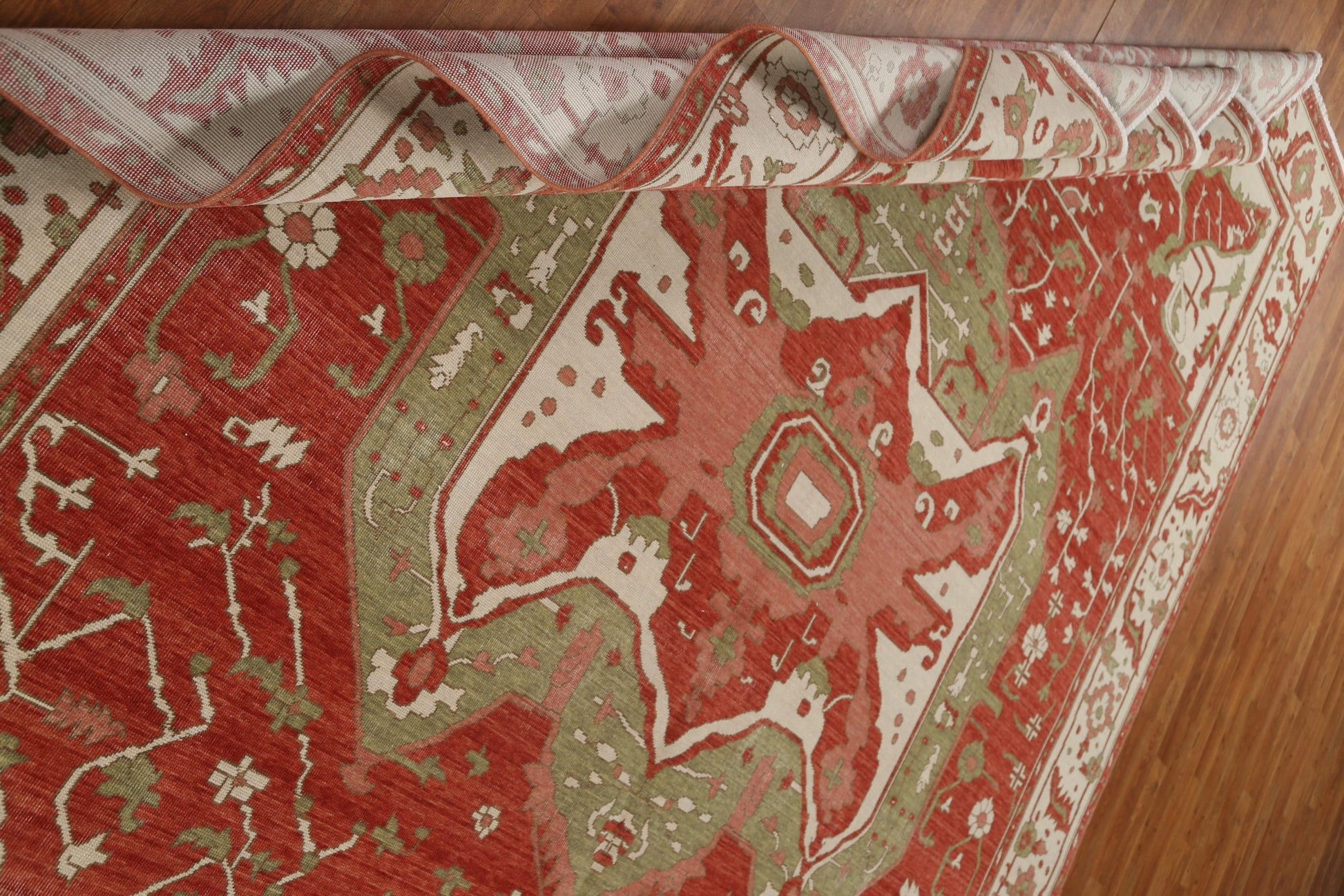 A Beautiful Genuine Turkey Heriz (serapi) rug is Hand Knotted by skillful weavers in Turkey with 100% Wool Material. This rug is in New, First Quality condition. dimensions are 11' 9'' X 9' 0'' in foot and 358 X 274 in centimeter. the primary color is Red.