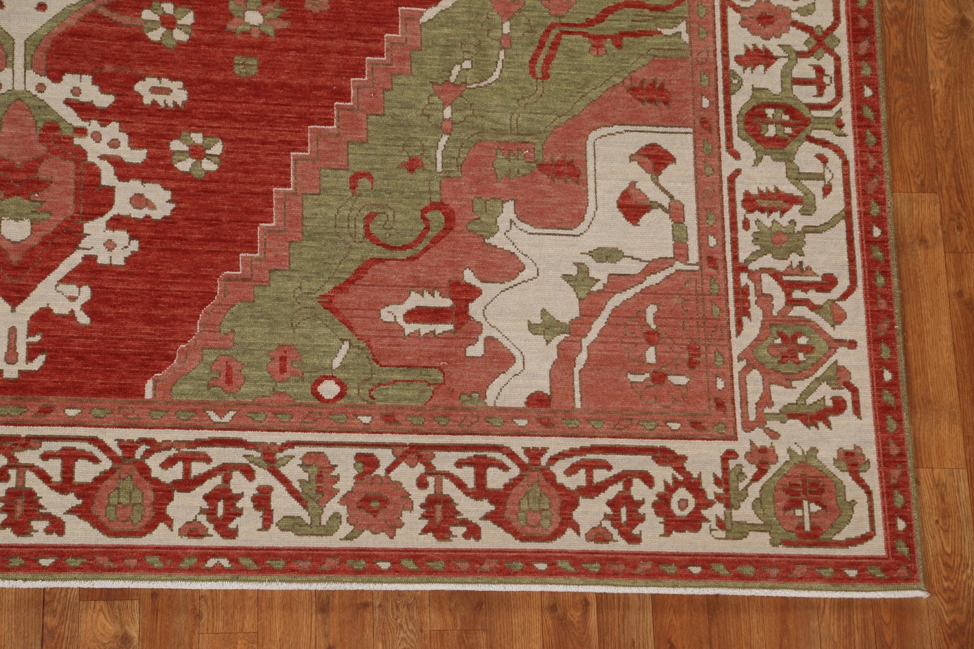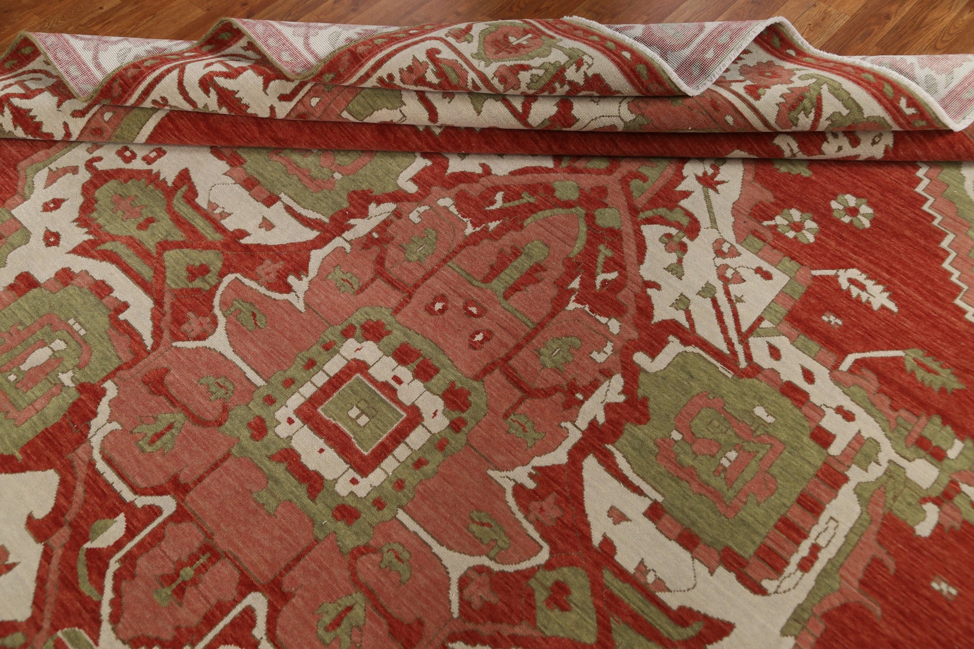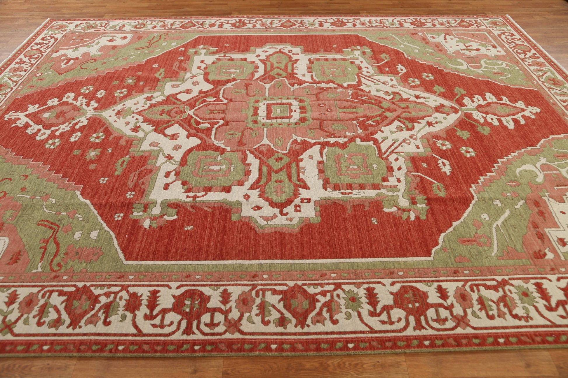 A Beautiful Genuine Turkey Heriz (serapi) rug is Hand Knotted by skillful weavers in Turkey with 100% Wool Material. This rug is in New, First Quality condition. dimensions are 11' 9'' X 9' 0'' in foot and 358 X 274 in centimeter. the primary color is Red.