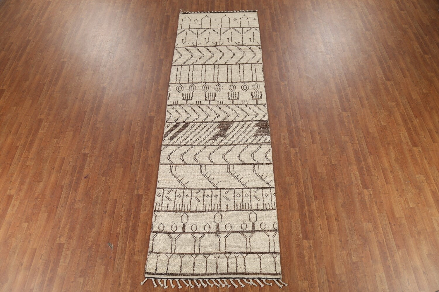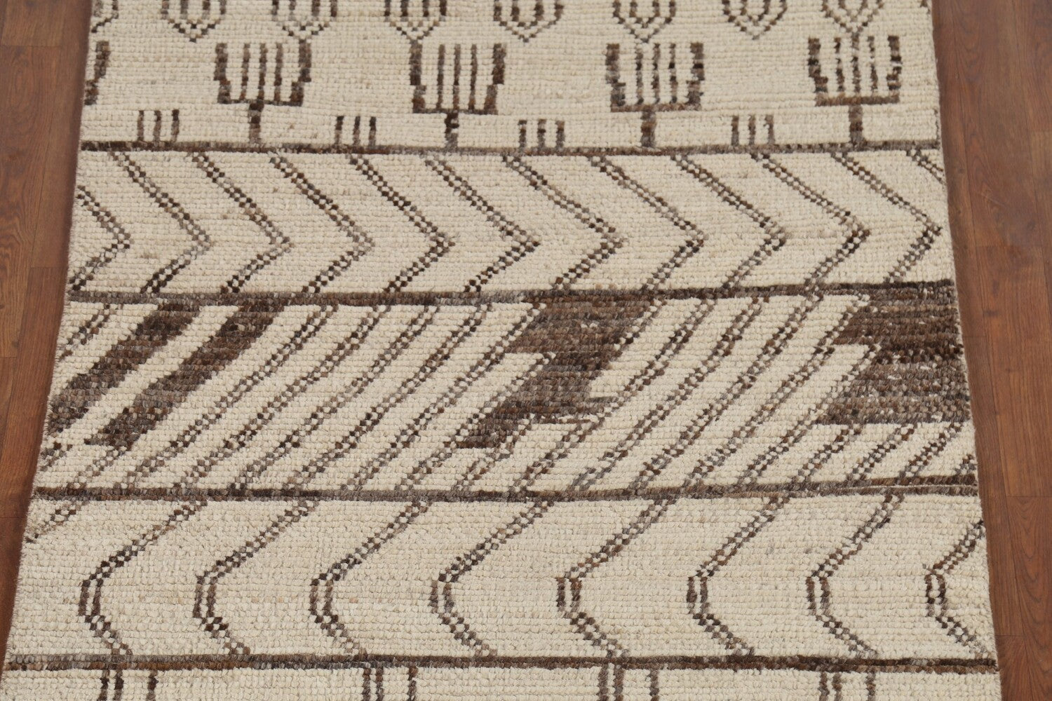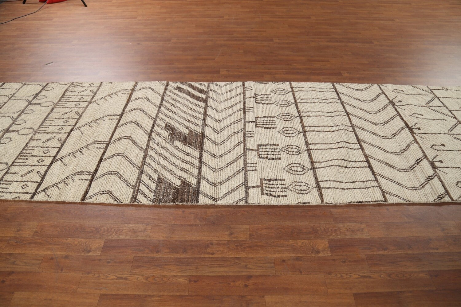 Handmade Wool Ivory Moroccan Runner Rug 4x13
