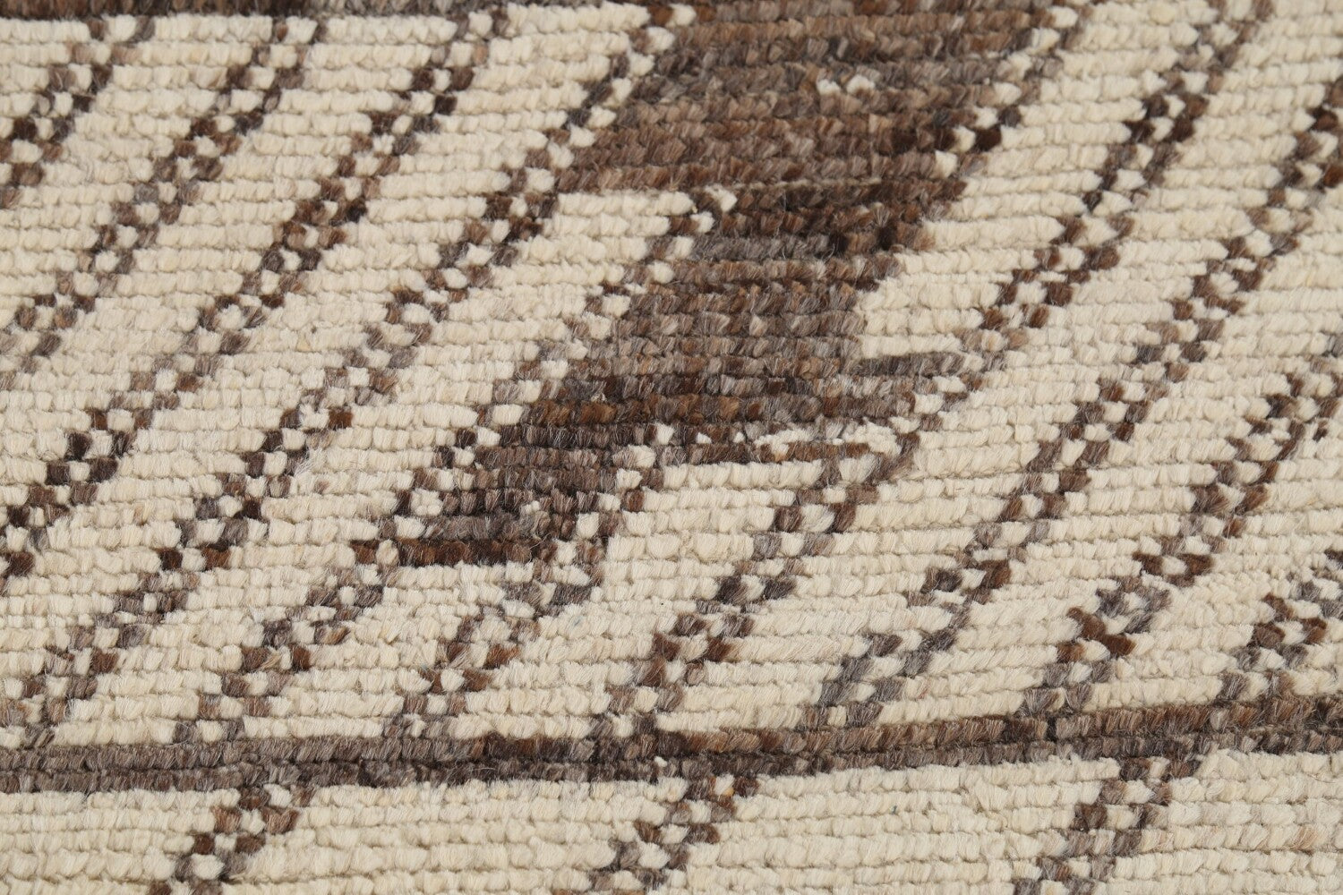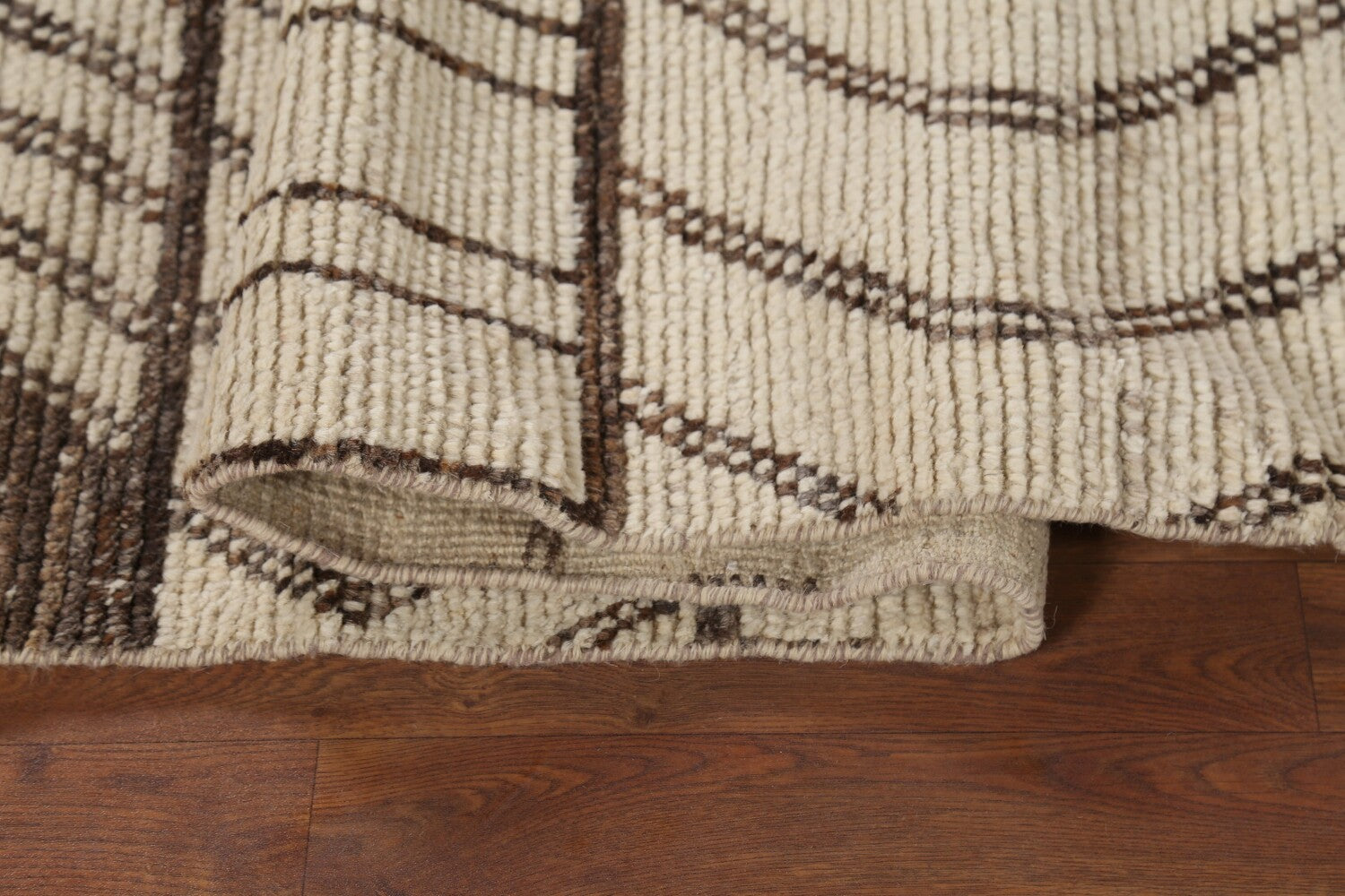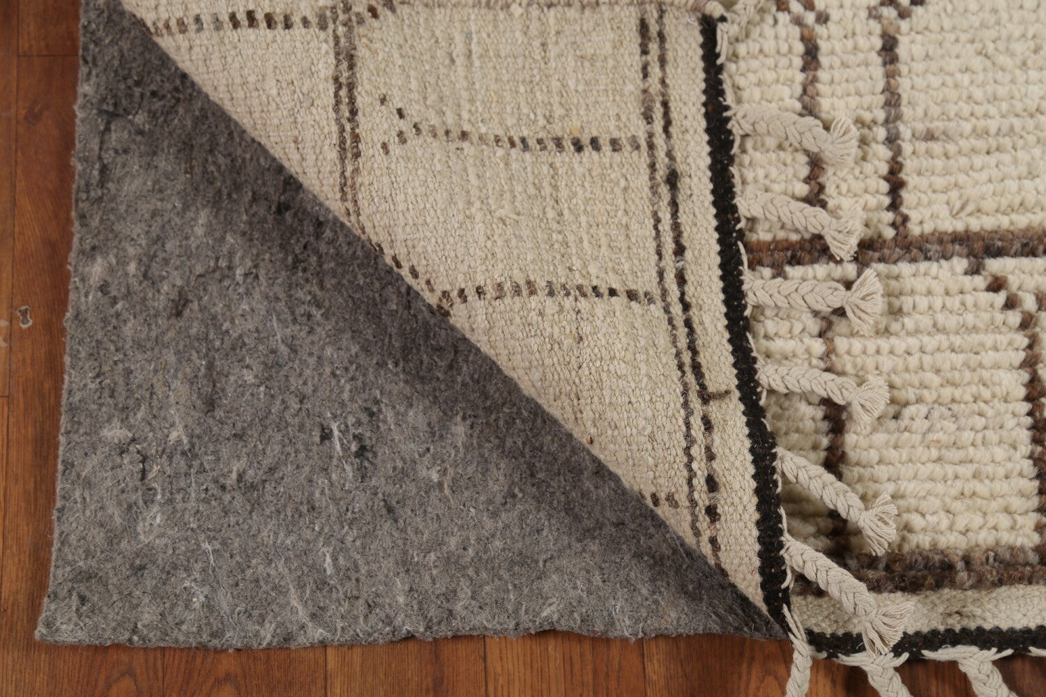 A Beautiful Genuine Pakistan Moroccan rug is Hand Knotted by skillful weavers in Pakistan with 100% Wool Material. This rug is in New, First Quality condition. dimensions are 12' 7'' X 3' 10'' in foot and 384 X 117 in centimeter. the primary color is Beige & Ivories.