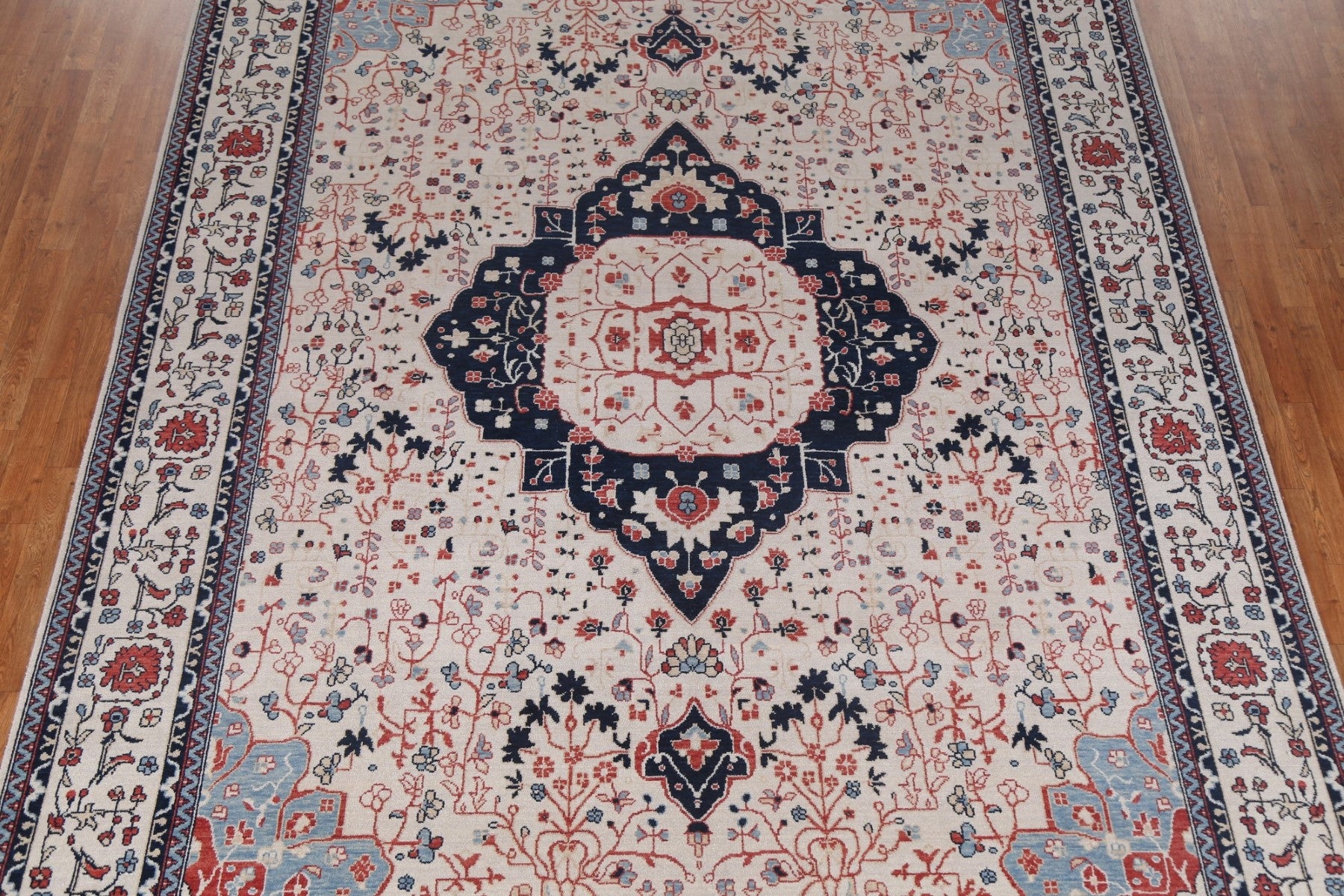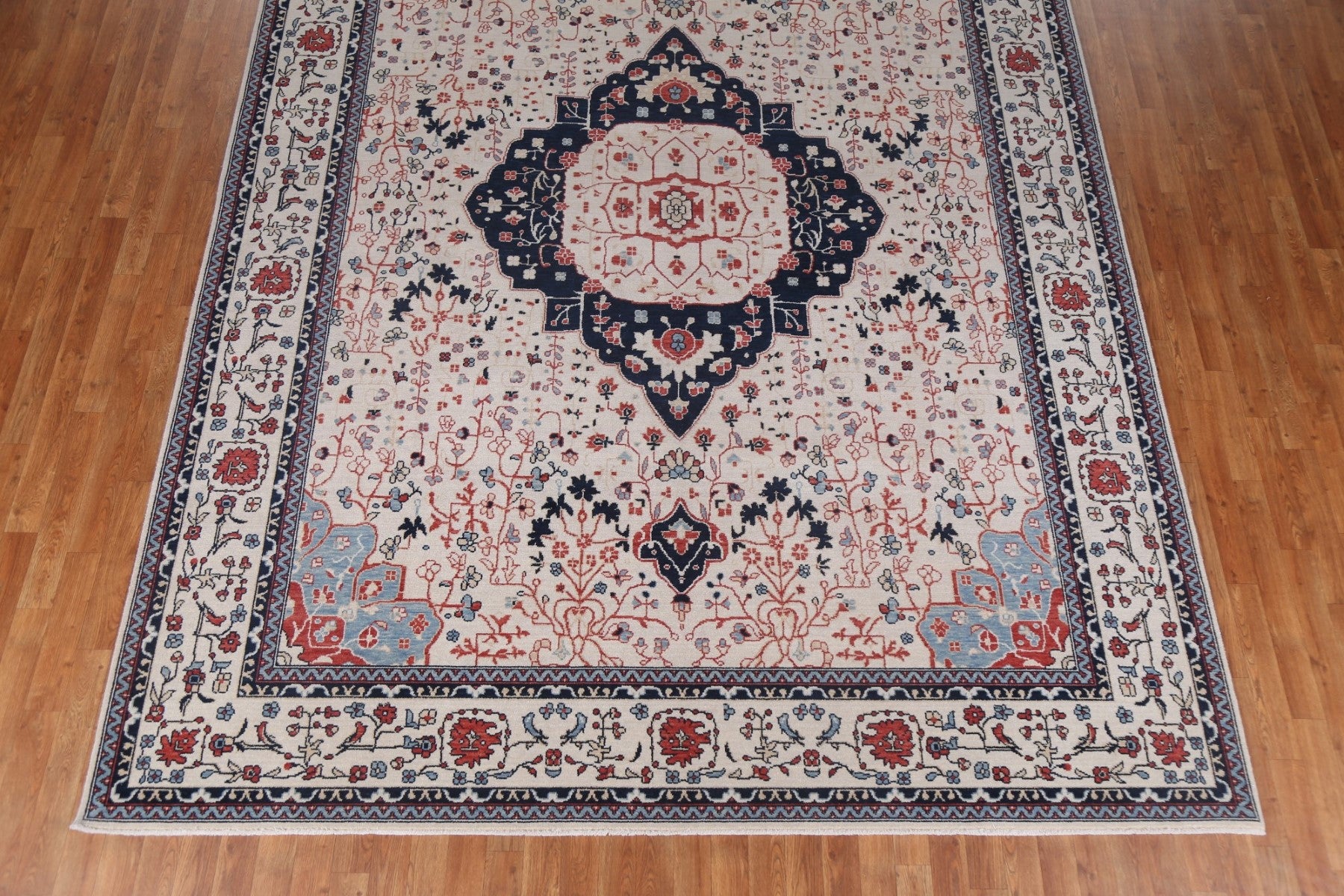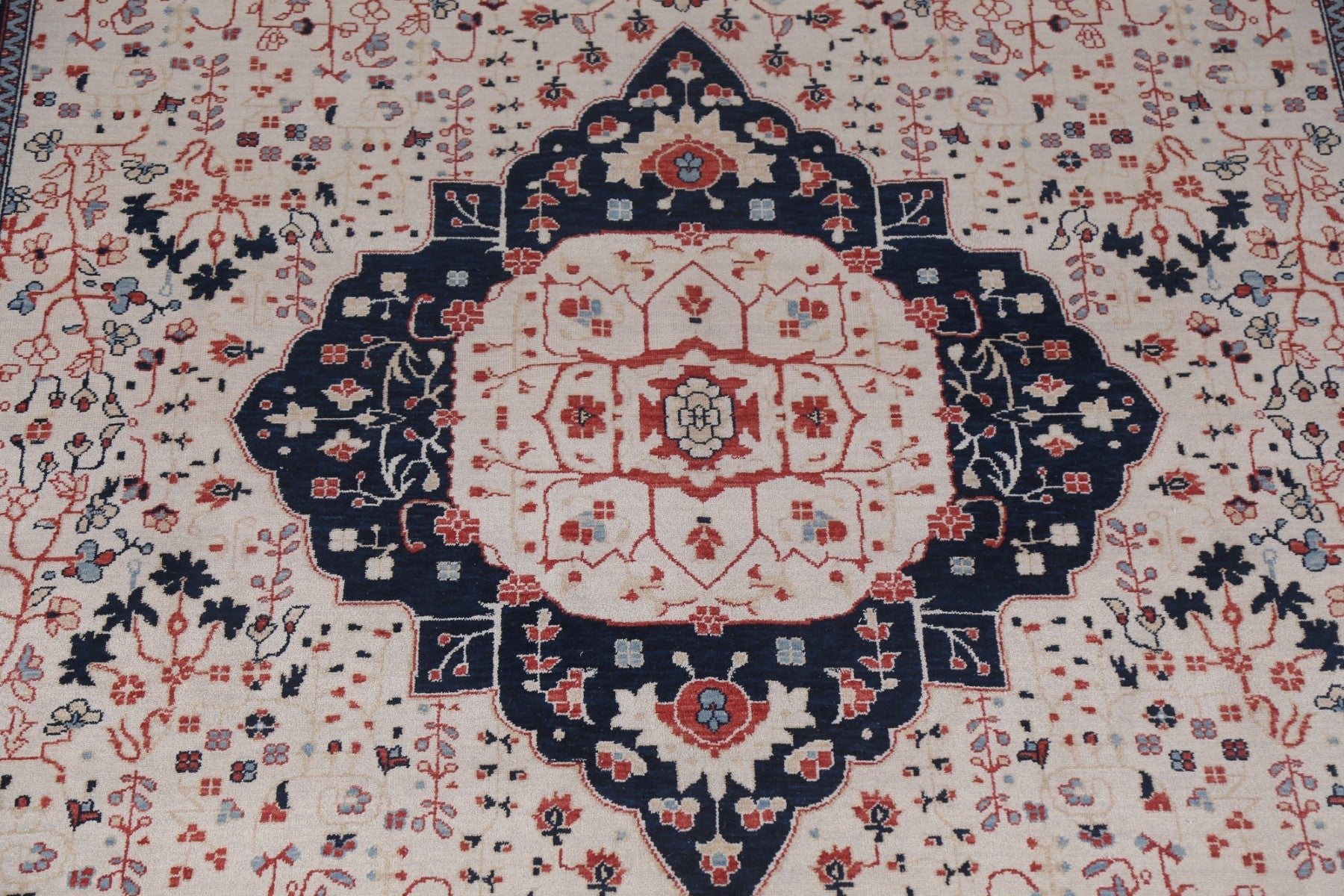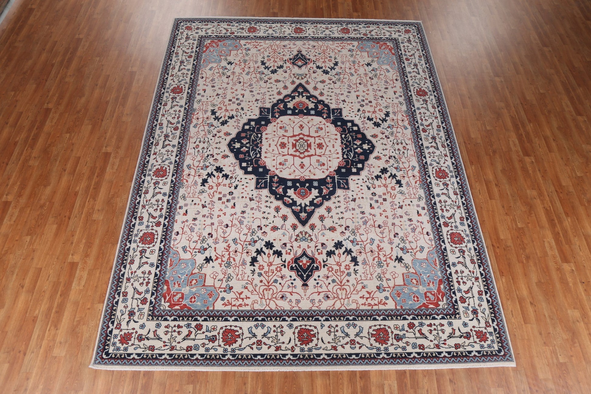 A Beautiful Genuine Turkey Kashan (Mohtasham) rug is Hand Knotted by skillful weavers in Turkey with 100% Wool Material. This rug is in New, First Quality condition. dimensions are 11' 9'' X 9' 0'' in foot and 358 X 274 in centimeter. the primary color is Beige & Ivories.