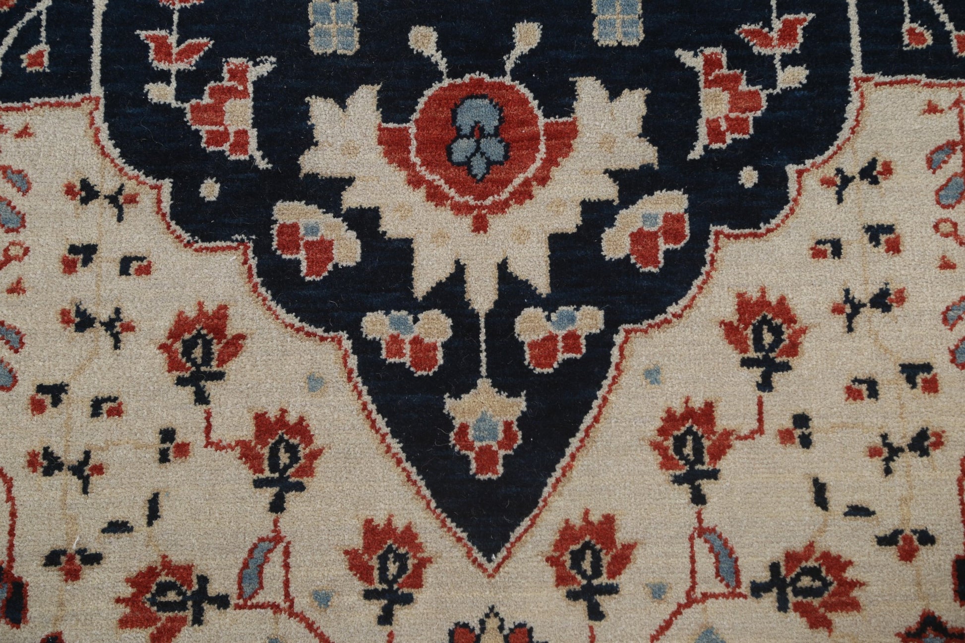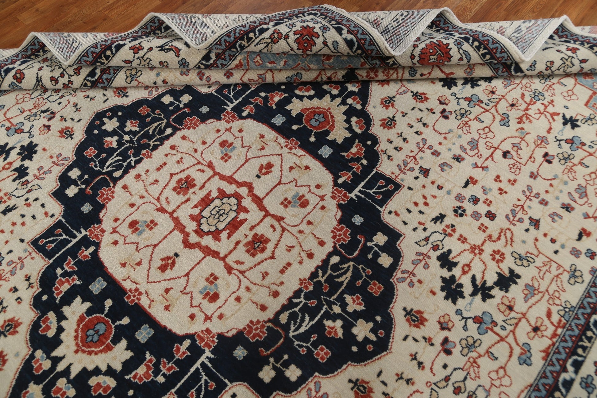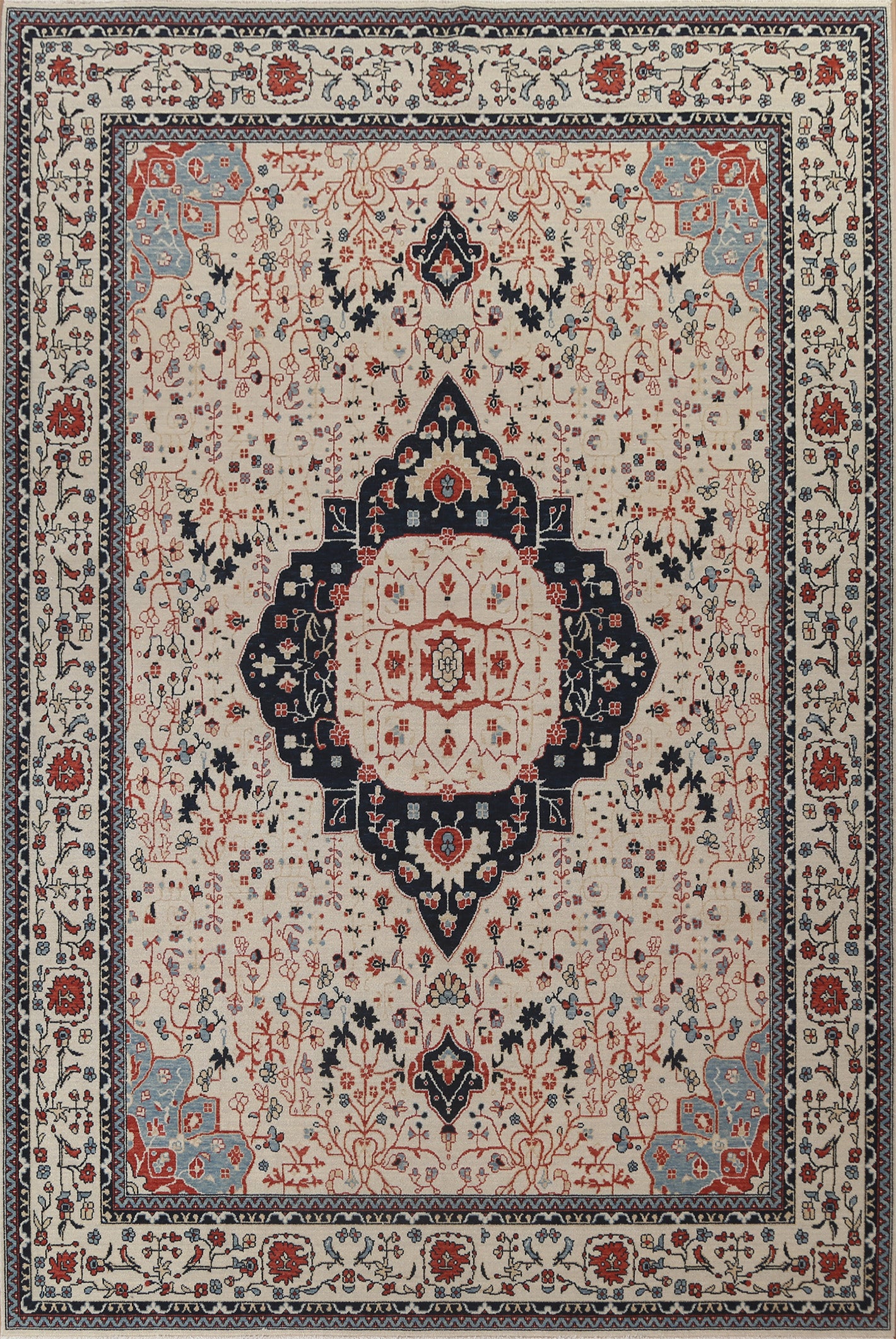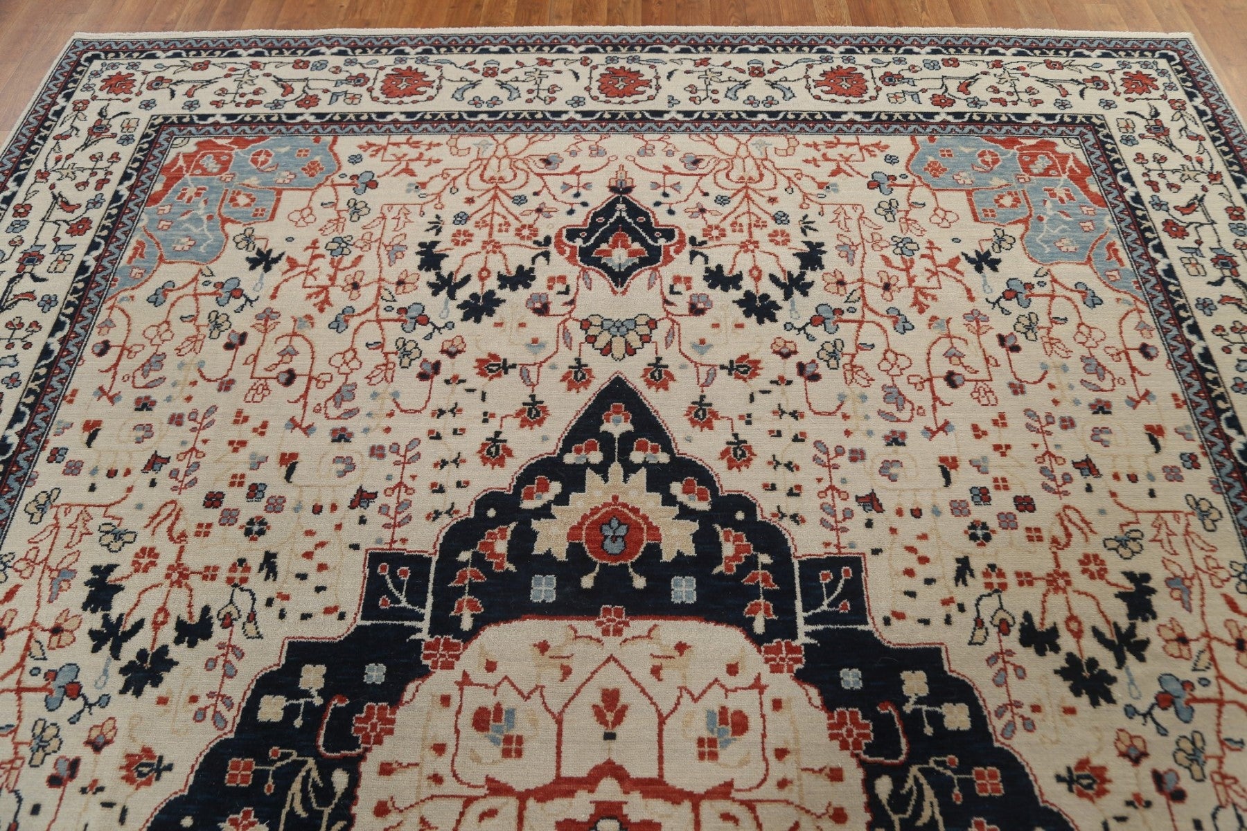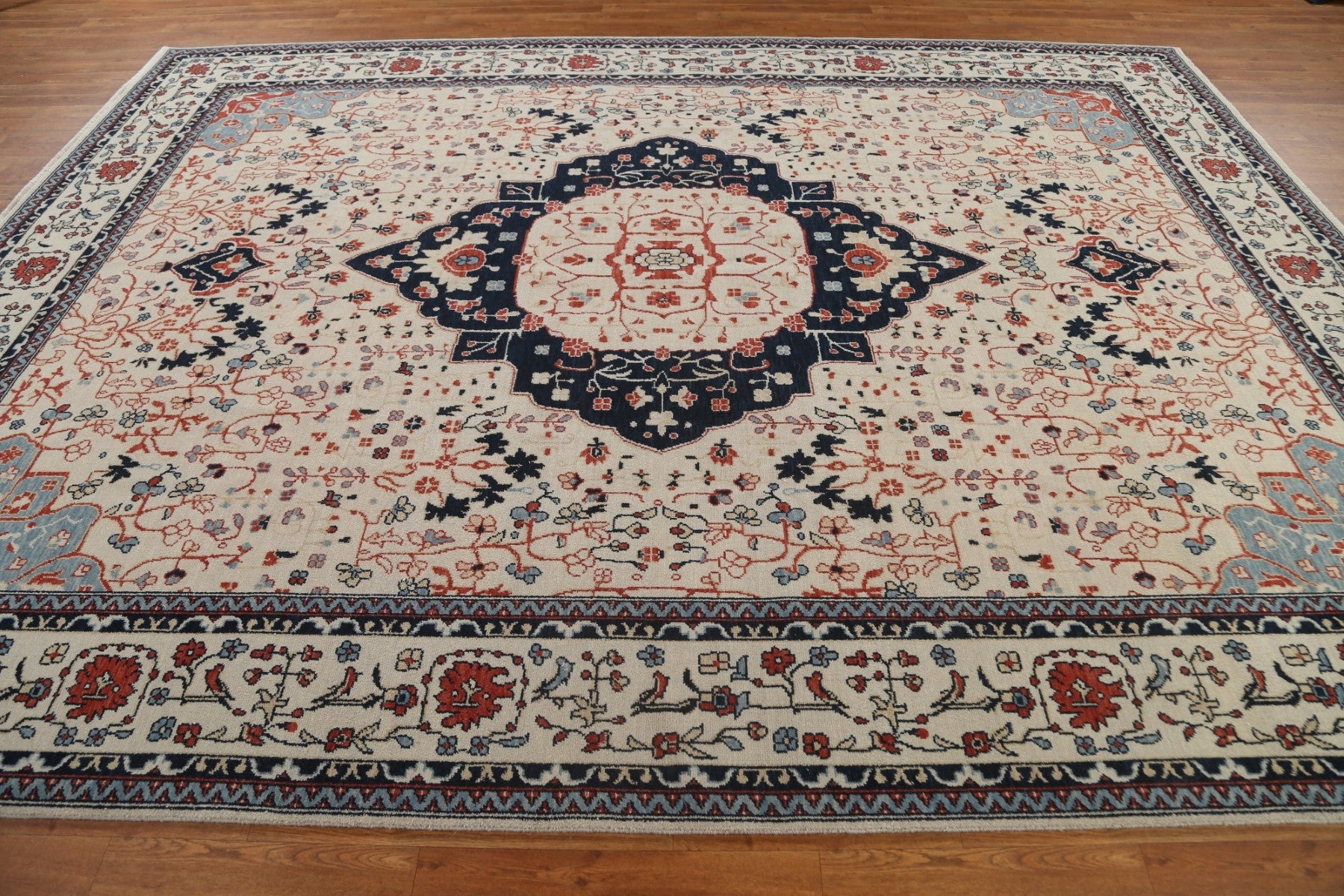 A Beautiful Genuine Turkey Kashan (Mohtasham) rug is Hand Knotted by skillful weavers in Turkey with 100% Wool Material. This rug is in New, First Quality condition. dimensions are 11' 9'' X 9' 0'' in foot and 358 X 274 in centimeter. the primary color is Beige & Ivories.