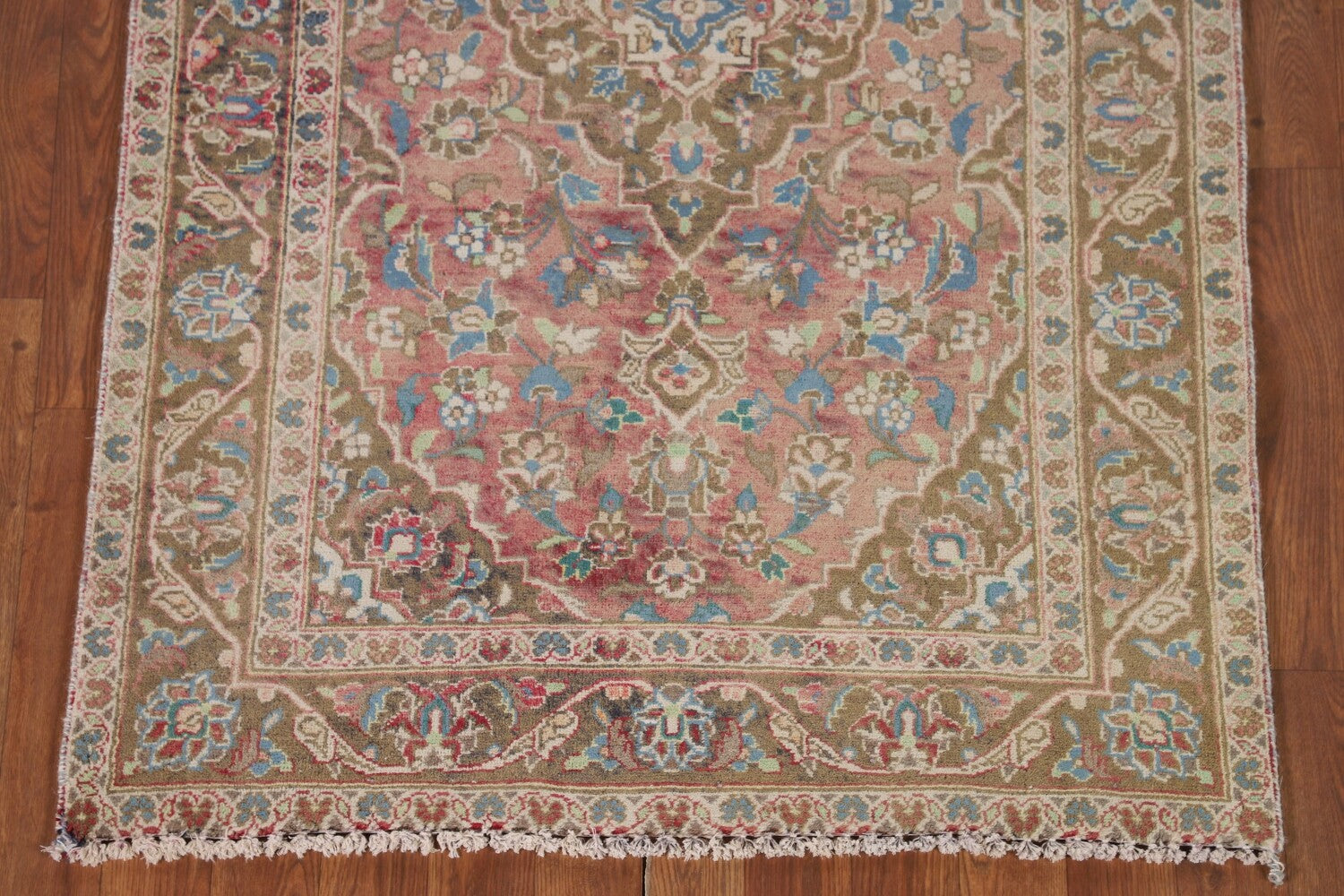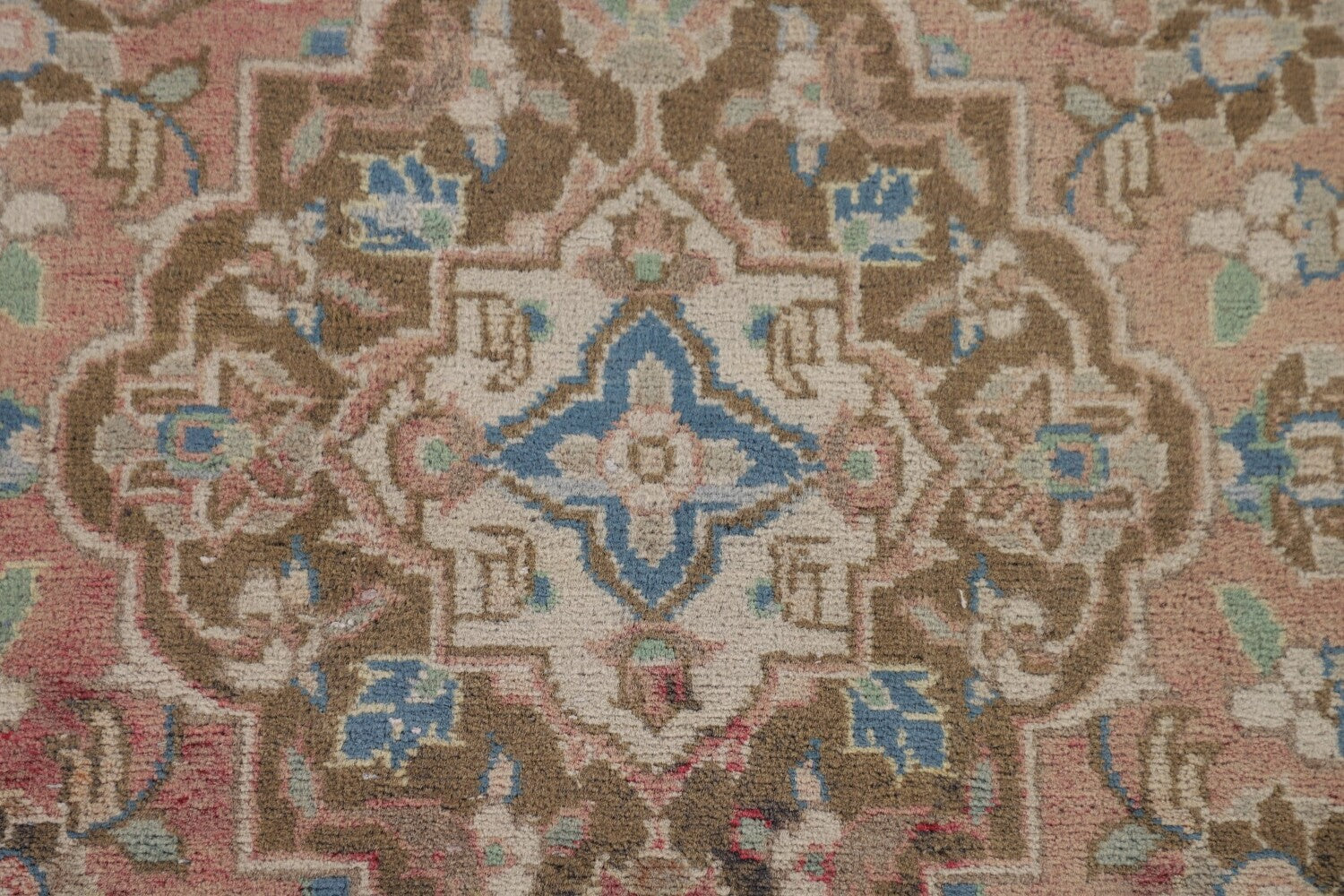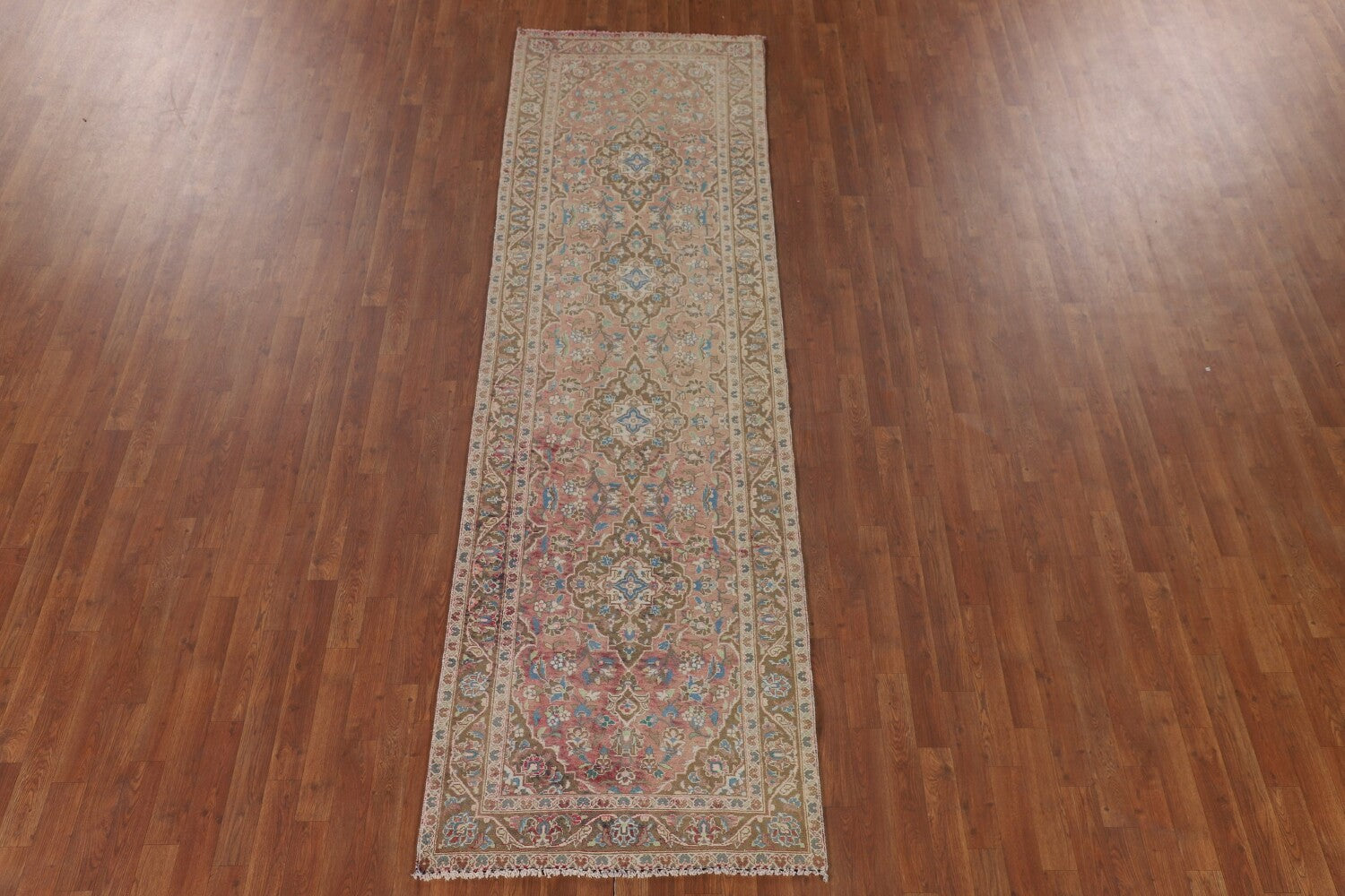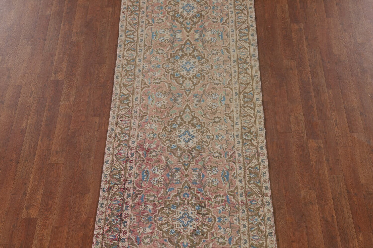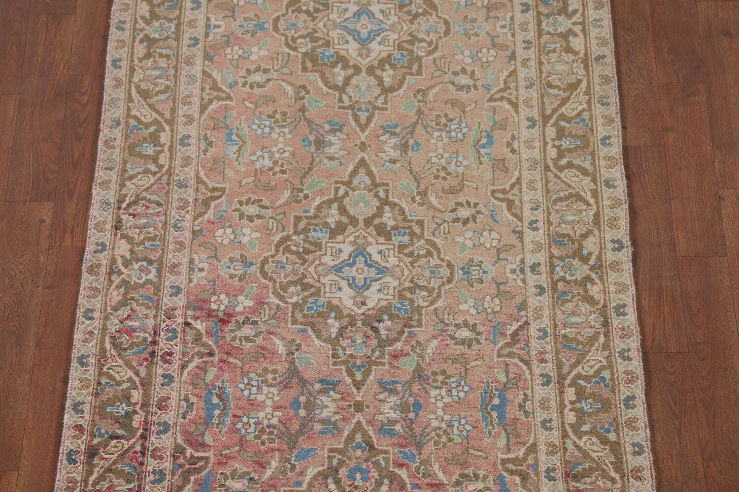 A Beautiful Genuine Persia ( Persia ) Kashan rug is Hand Knotted by skillful weavers in Persia ( Persia ) with 100% Wool Material. This rug is in Very Good condition. dimensions are 10' 7'' X 3' 1'' in foot and 323 X 94 in centimeter. the primary color is Pink.
