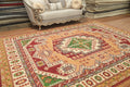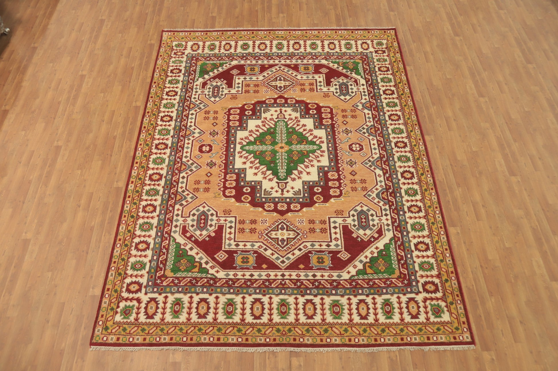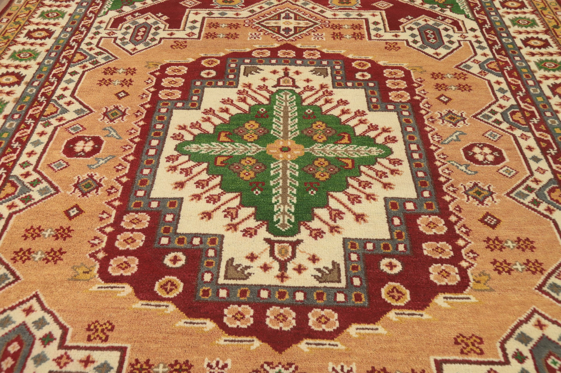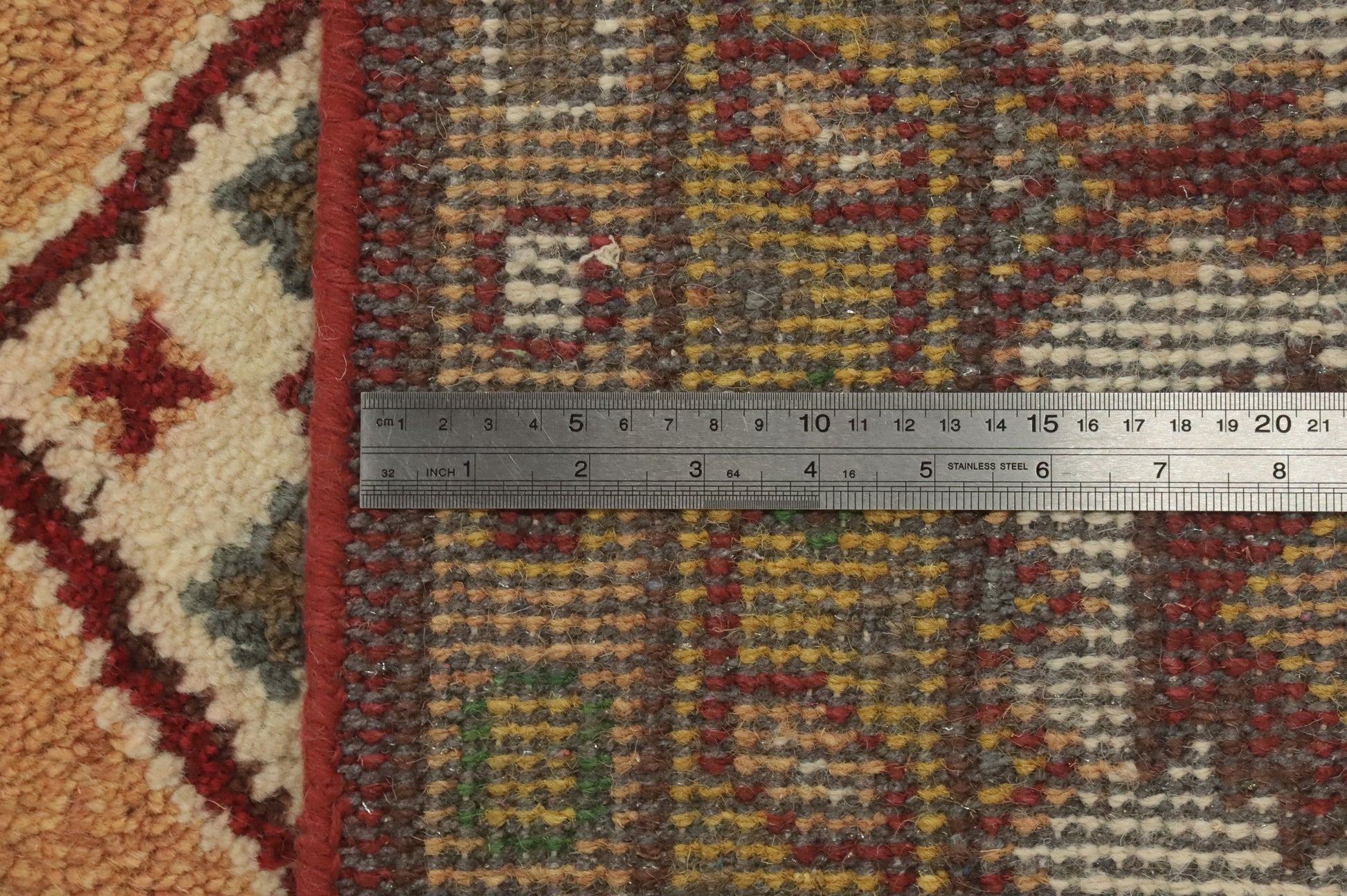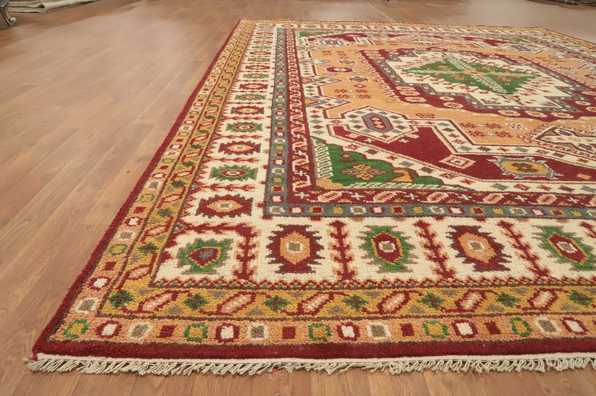 A Beautiful Genuine India Kazak rug is Hand Knotted by skillful weavers in India with 100% Wool Material. This rug is in New, First Quality condition. dimensions are 11' 10'' X 9' 0'' in foot and 361 X 274 in centimeter. the primary color is Peach.