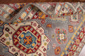 A Beautiful Genuine Pakistan Kazak rug is Hand Knotted by skillful weavers in Pakistan with 100% Wool Material. This rug is in New, First Quality condition. dimensions are 6' 10'' X 5' 0'' in foot and 208 X 152 in centimeter. the primary color is Greys & Charcoal.