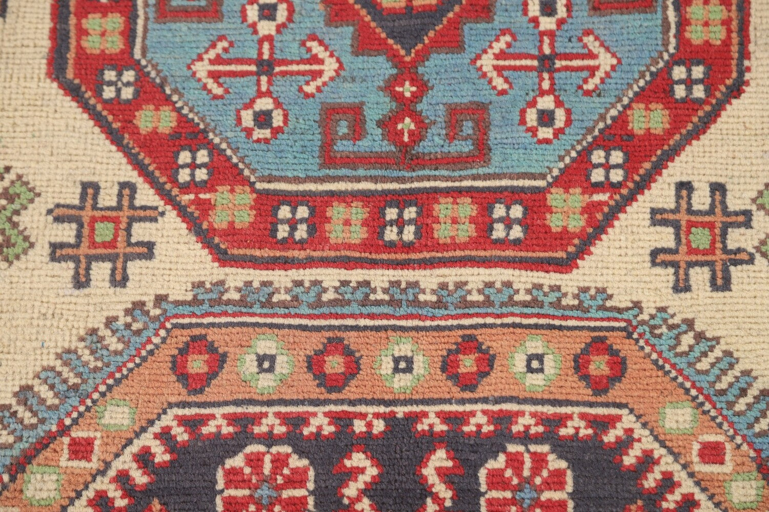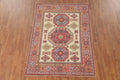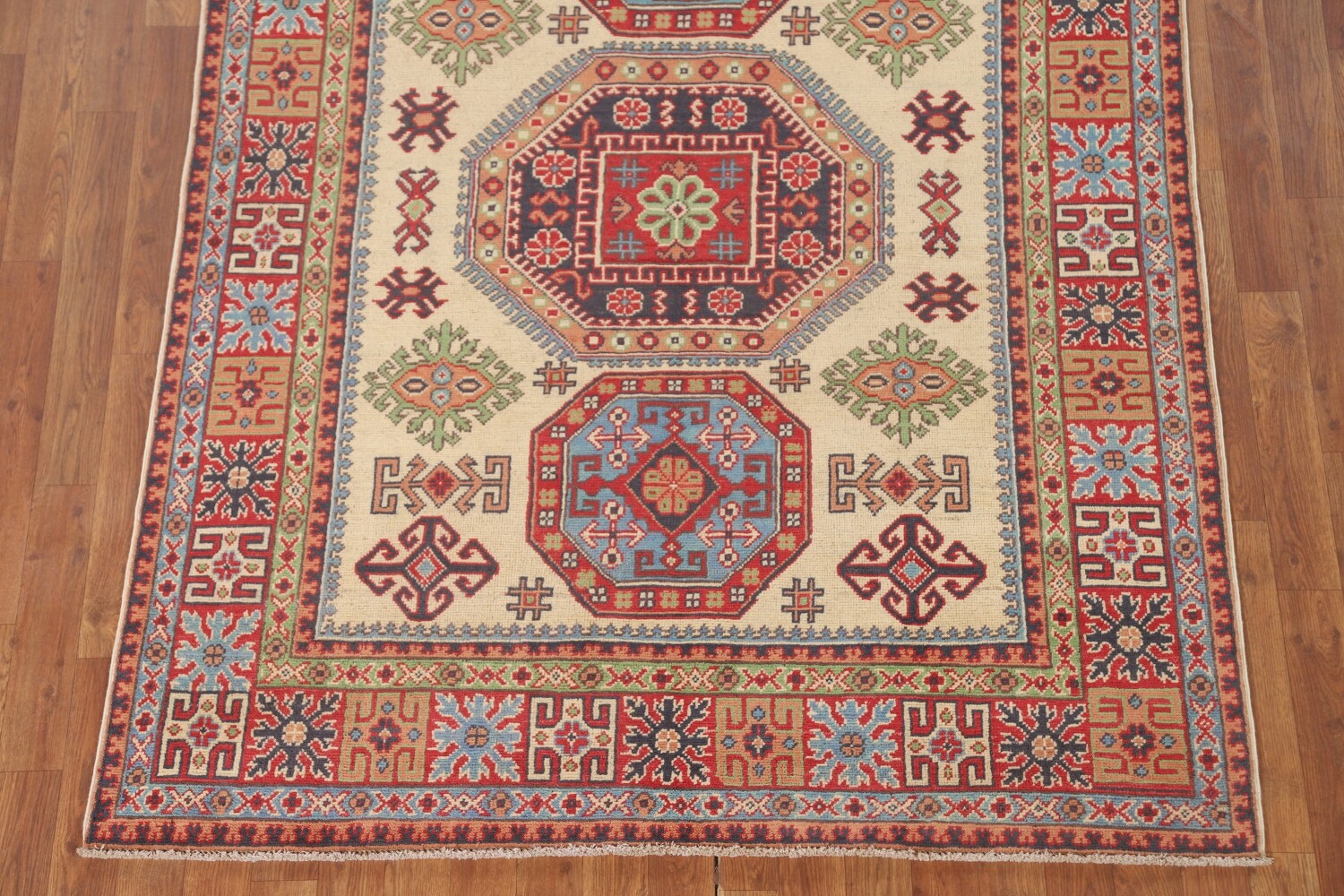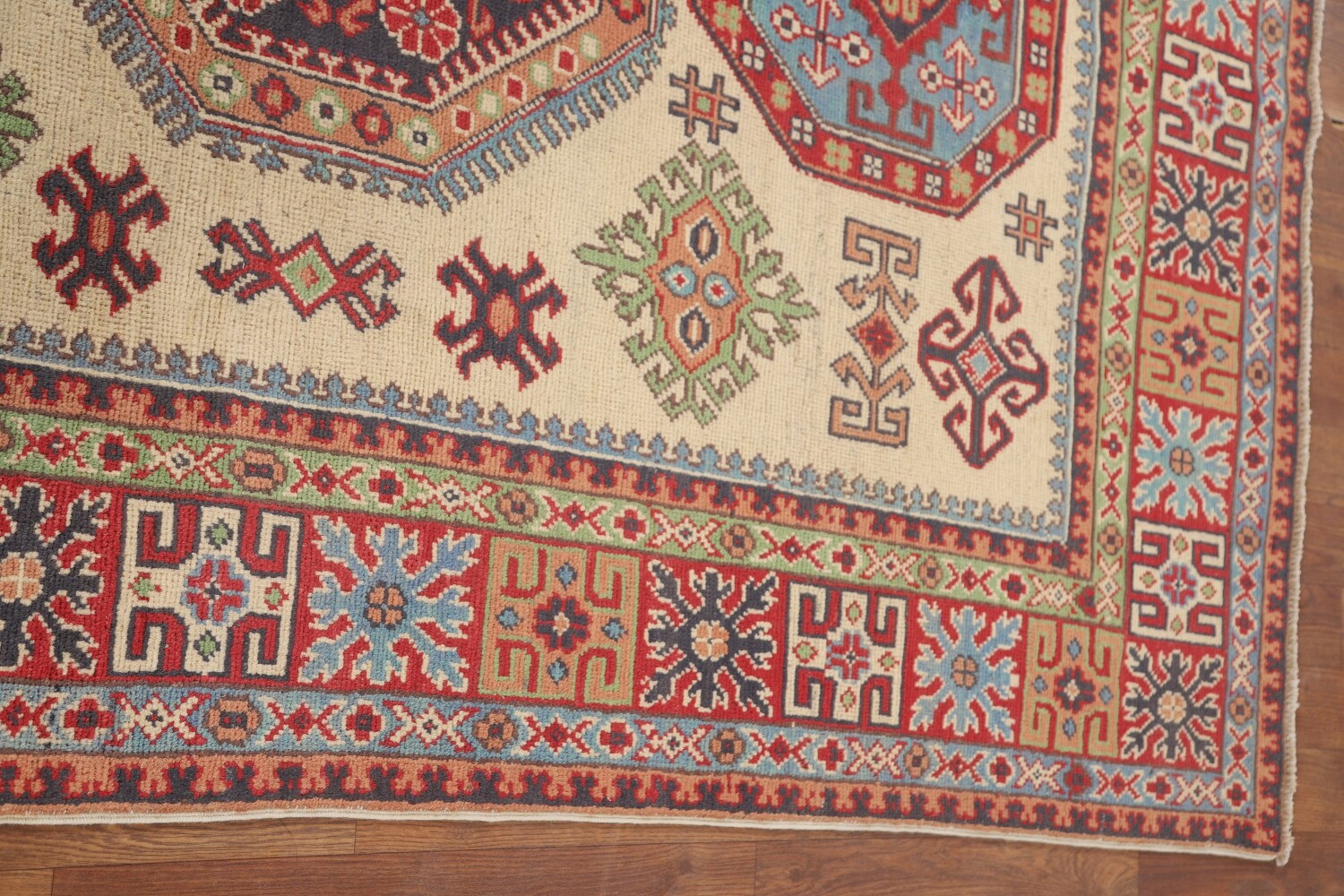 A Beautiful Genuine Pakistan Kazak rug is Hand Knotted by skillful weavers in Pakistan with 100% Wool Material. This rug is in New, First Quality condition. dimensions are 6' 8'' X 4' 10'' in foot and 203 X 147 in centimeter. the primary color is Beige & Ivories.