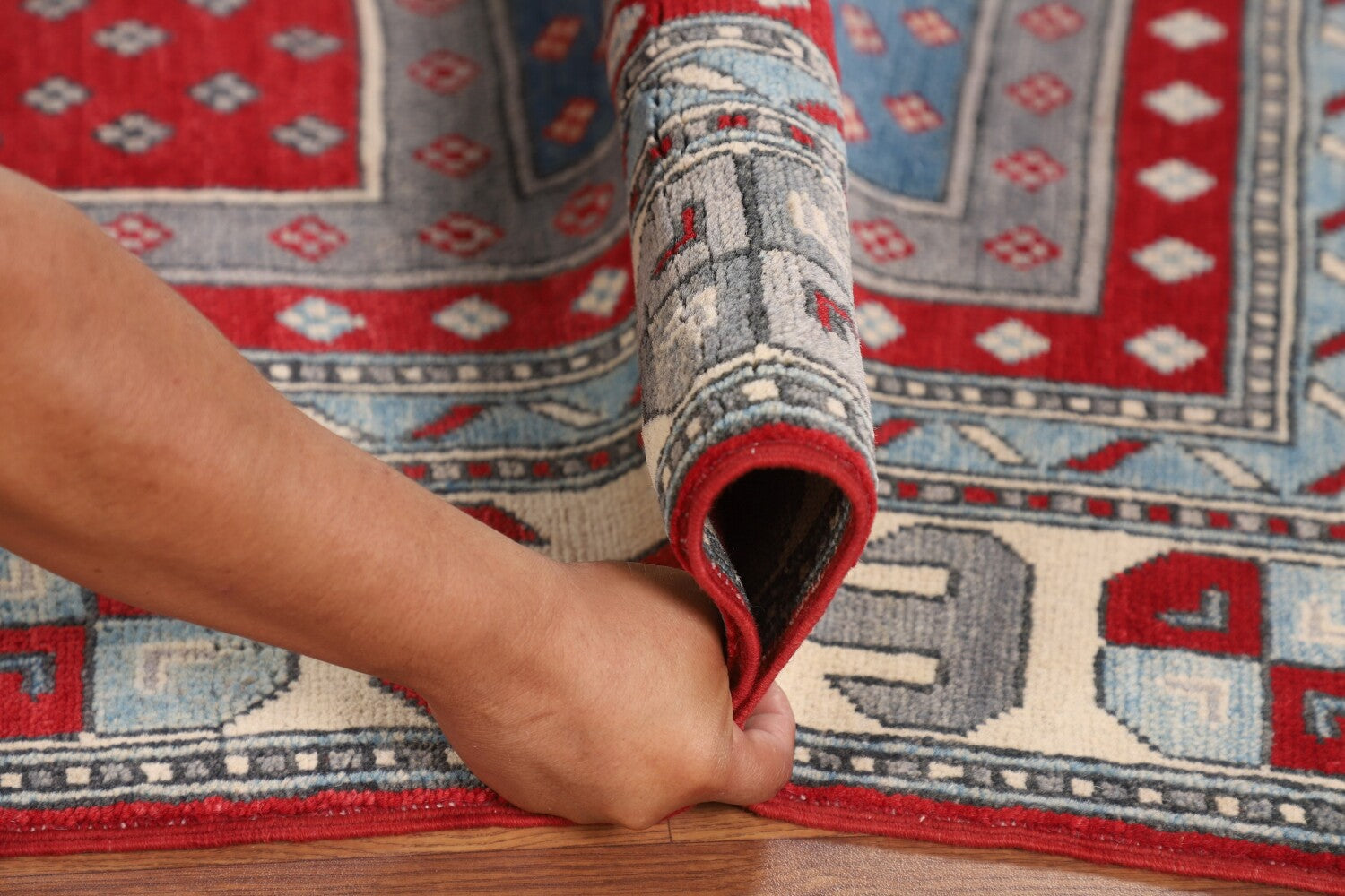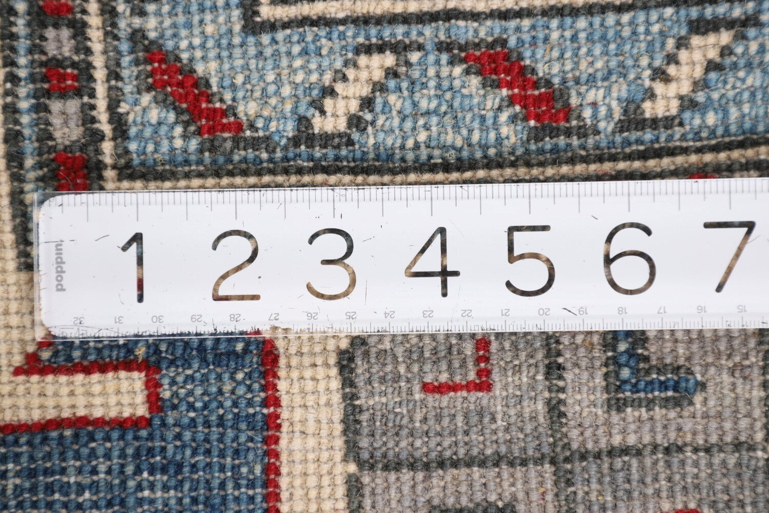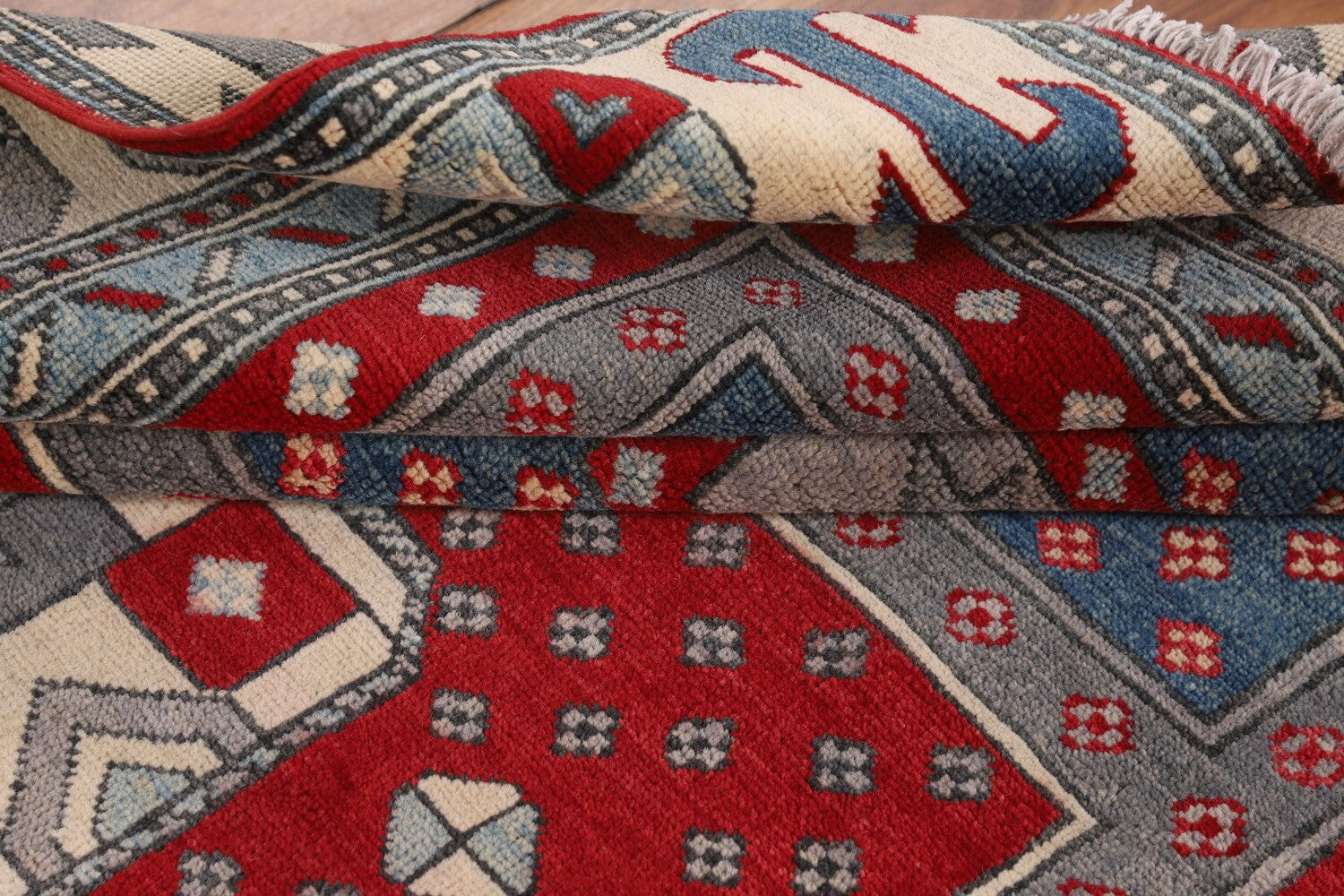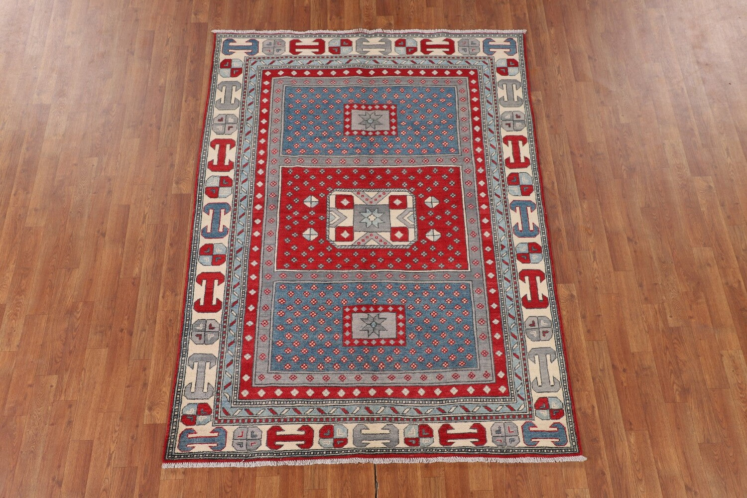 A Beautiful Genuine Pakistan Kazak rug is Hand Knotted by skillful weavers in Pakistan with 100% Wool Material. This rug is in New, First Quality condition. dimensions are 6' 9'' X 4' 11'' in foot and 206 X 150 in centimeter. the primary color is Greys & Charcoal.