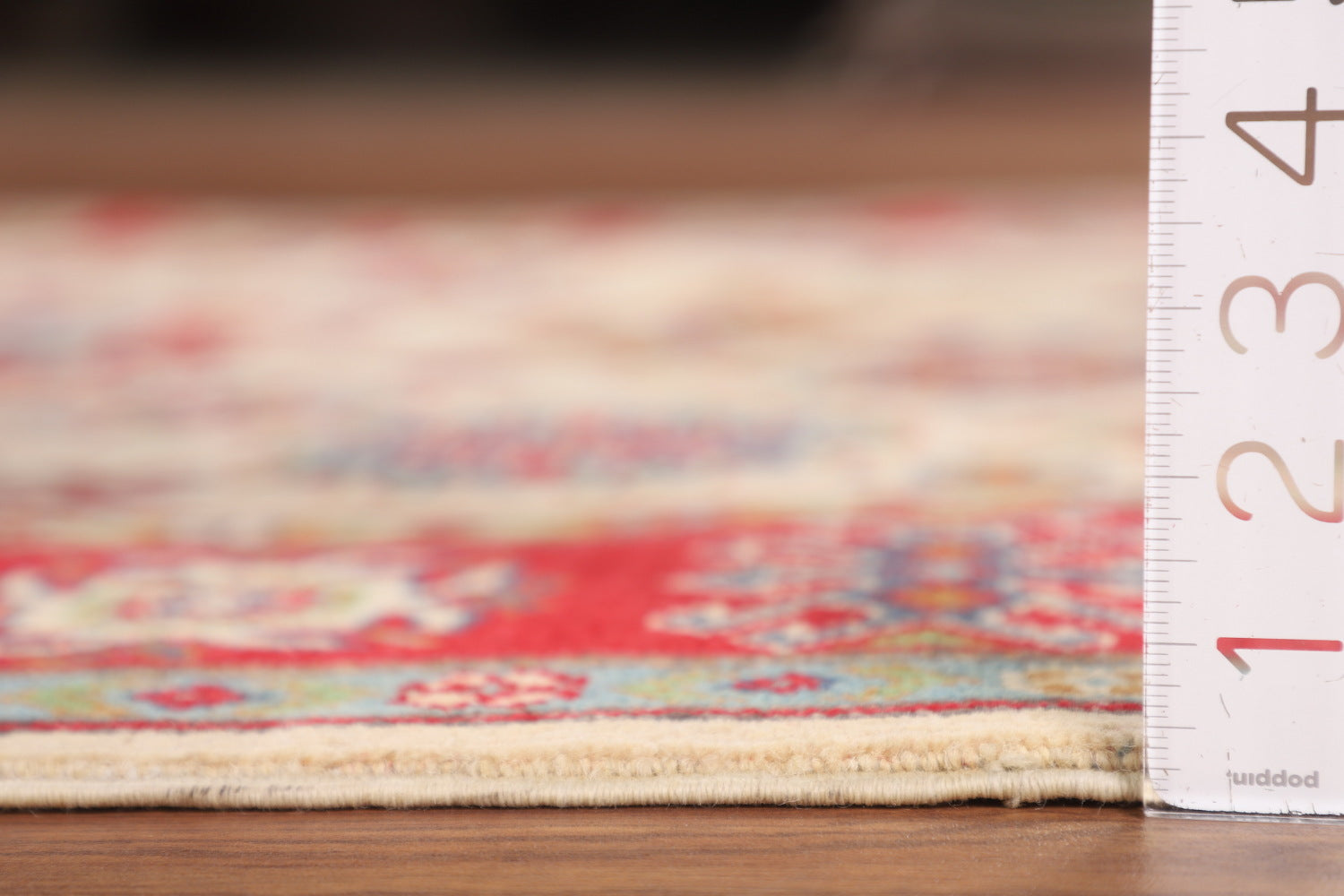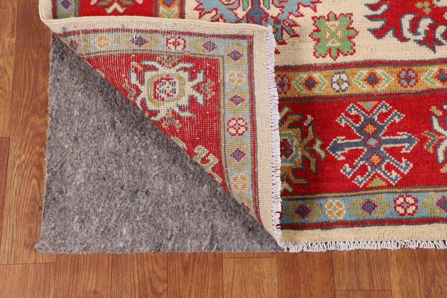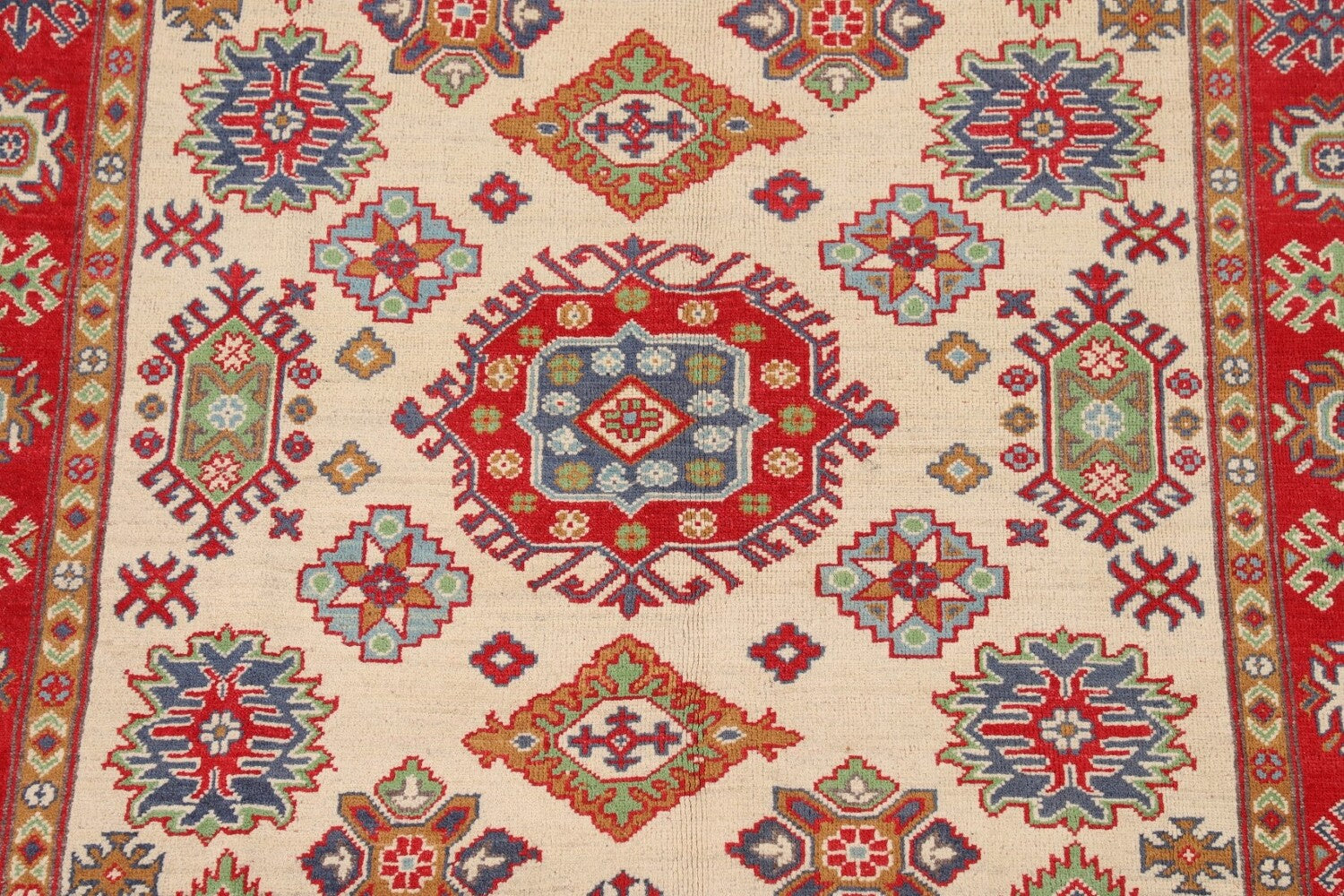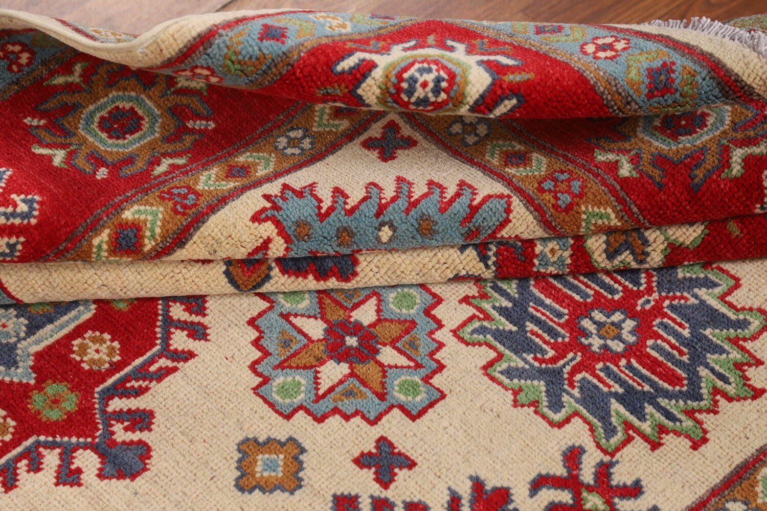 A Beautiful Genuine Pakistan Kazak rug is Hand Knotted by skillful weavers in Pakistan with 100% Wool Material. This rug is in New, First Quality condition. dimensions are 6' 10'' X 4' 9'' in foot and 208 X 145 in centimeter. the primary color is Beige & Ivories.
