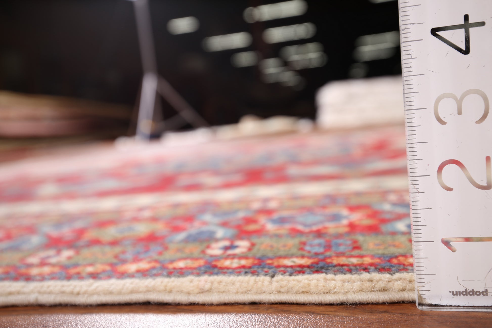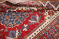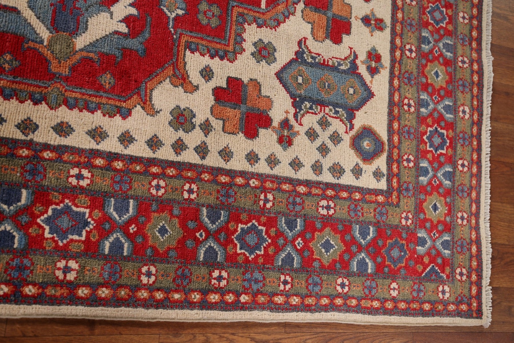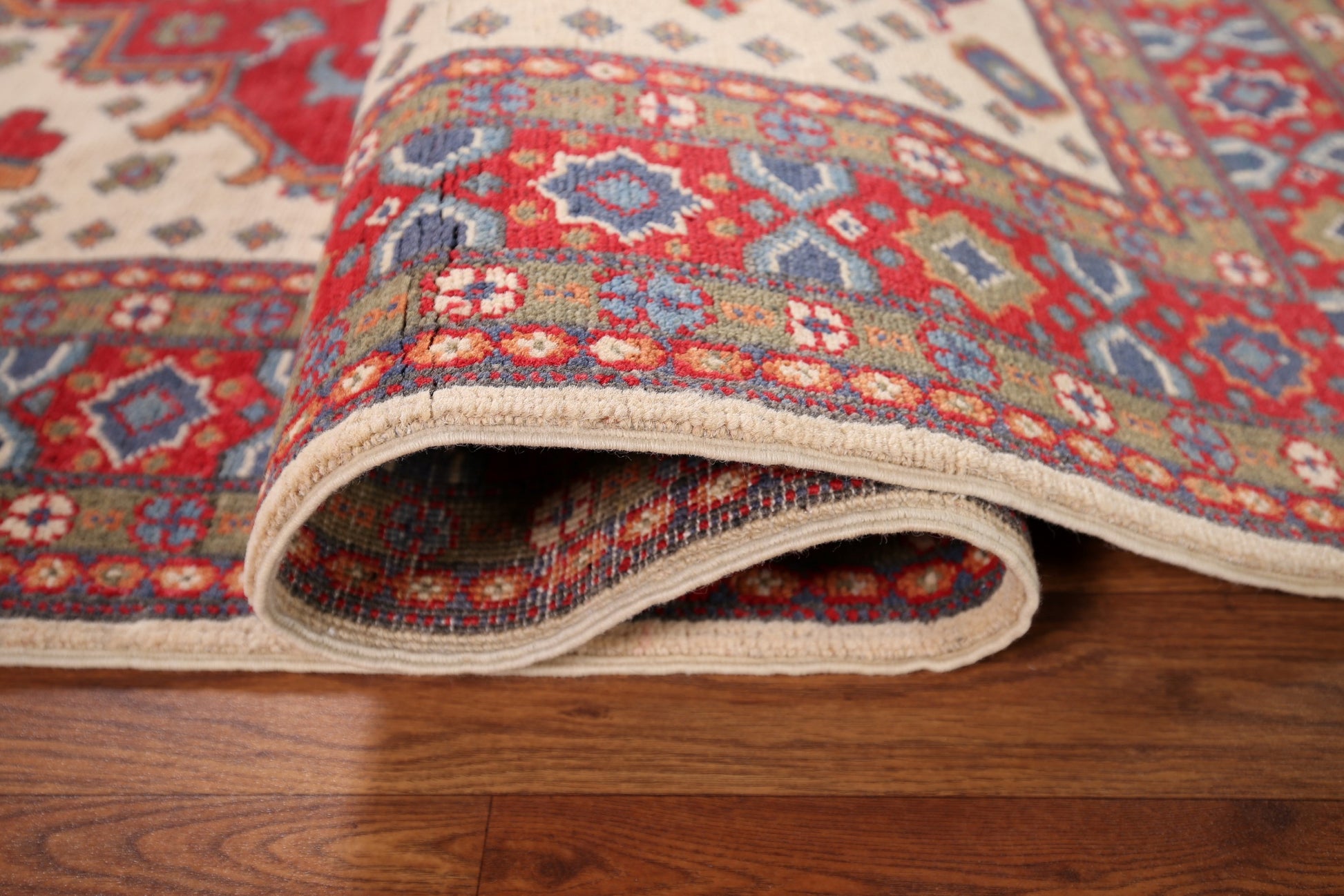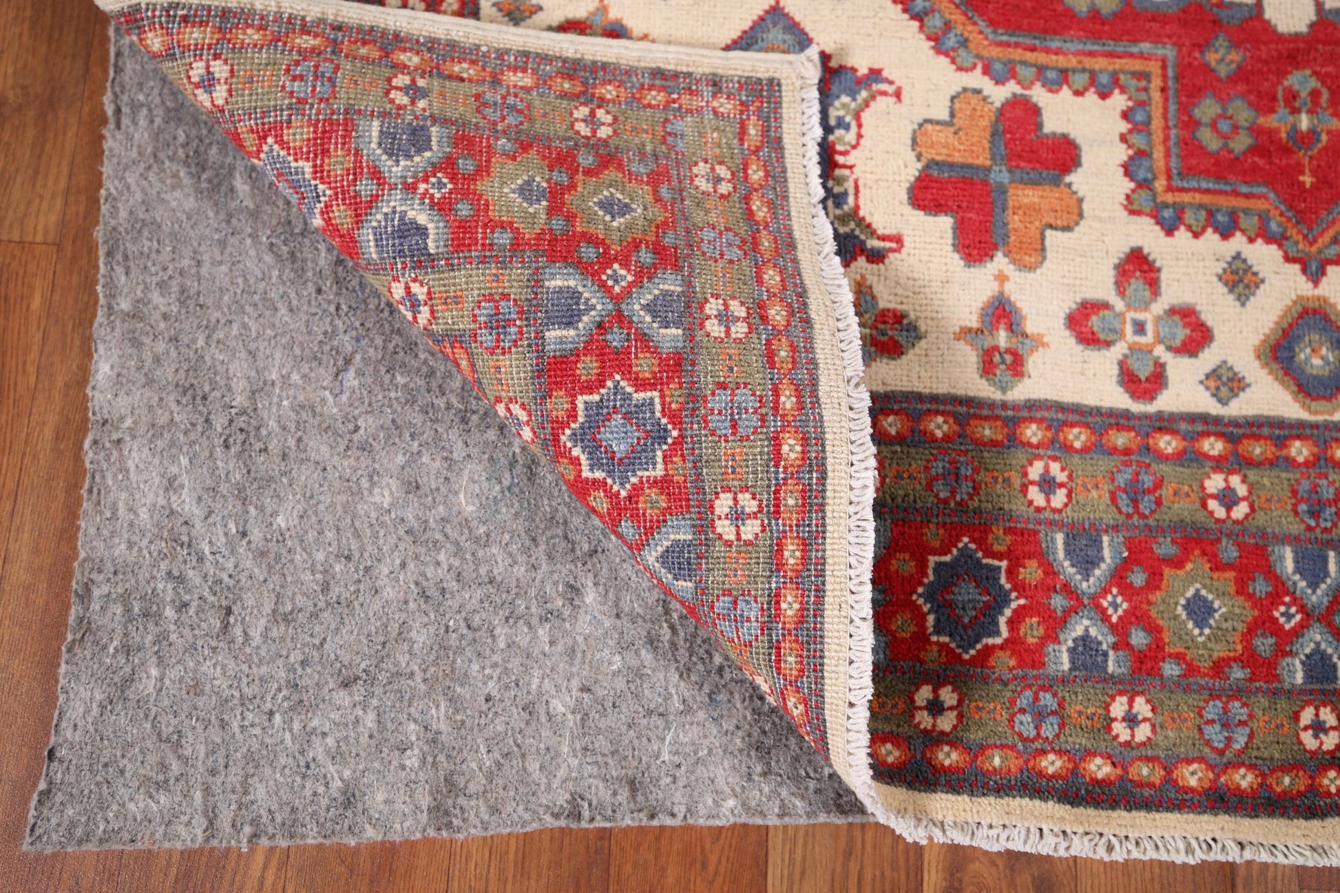 A Beautiful Genuine Pakistan Kazak rug is Hand Knotted by skillful weavers in Pakistan with 100% Wool Material. This rug is in New, First Quality condition. dimensions are 6' 8'' X 4' 11'' in foot and  203 X 150 in centimeter. the primary color is Red.