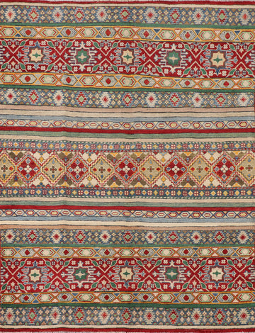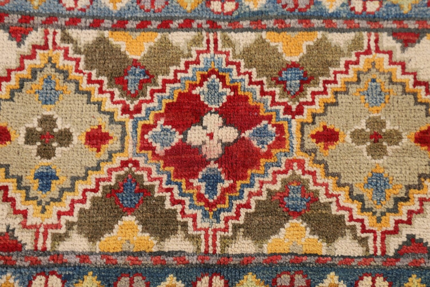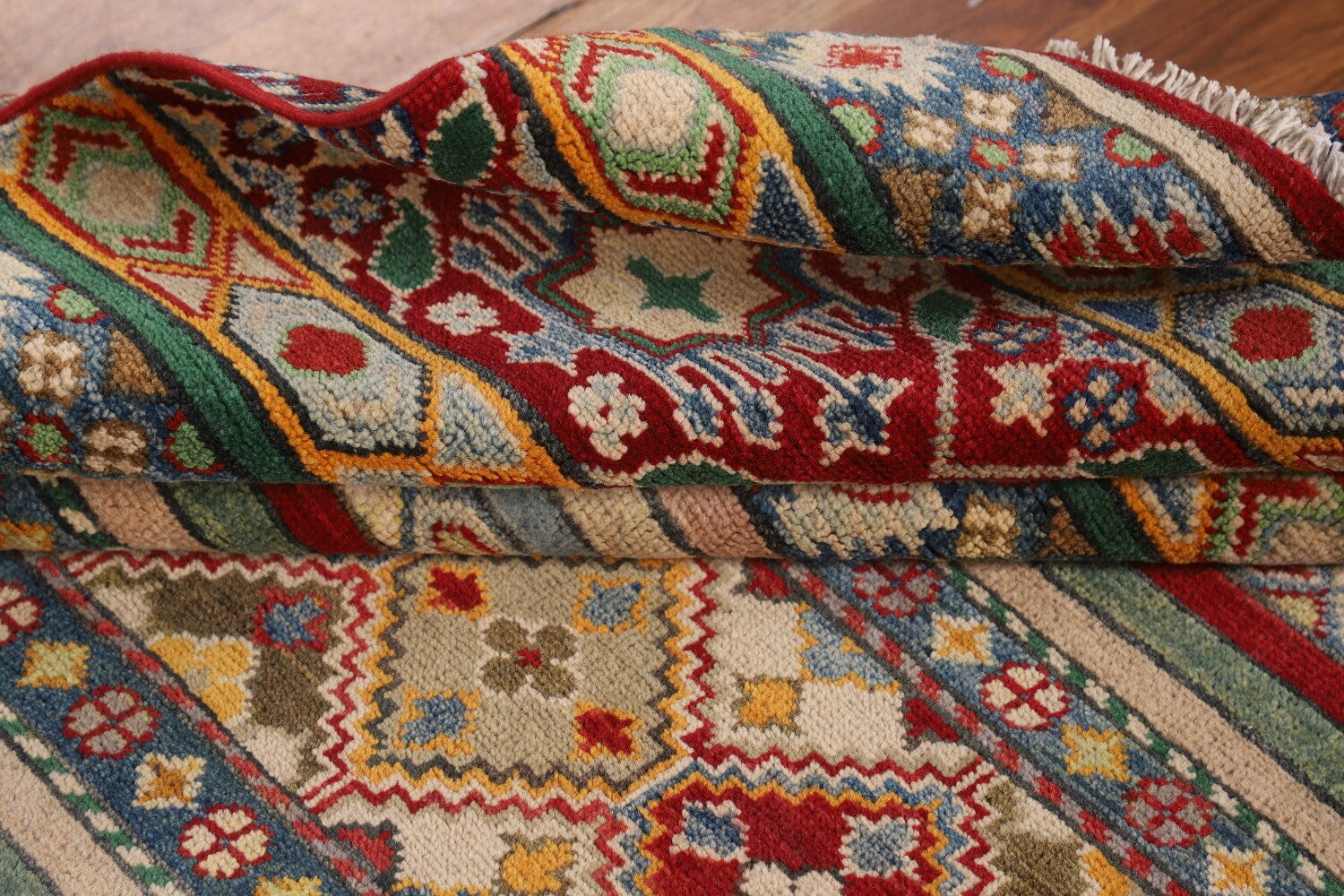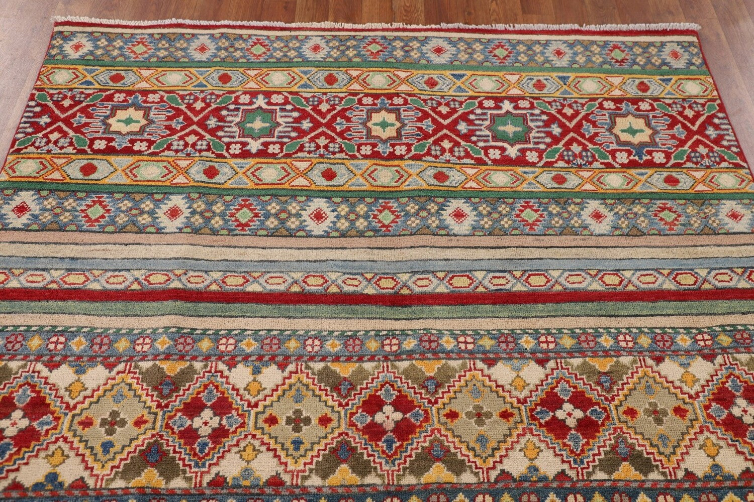 A Beautiful Genuine Pakistan Kazak rug is Hand Knotted by skillful weavers in Pakistan with 100% Wool Material. This rug is in New, First Quality condition. dimensions are 6' 6'' X 5' 3'' in foot and 198 X 160 in centimeter. the primary color is Multi-Colored.