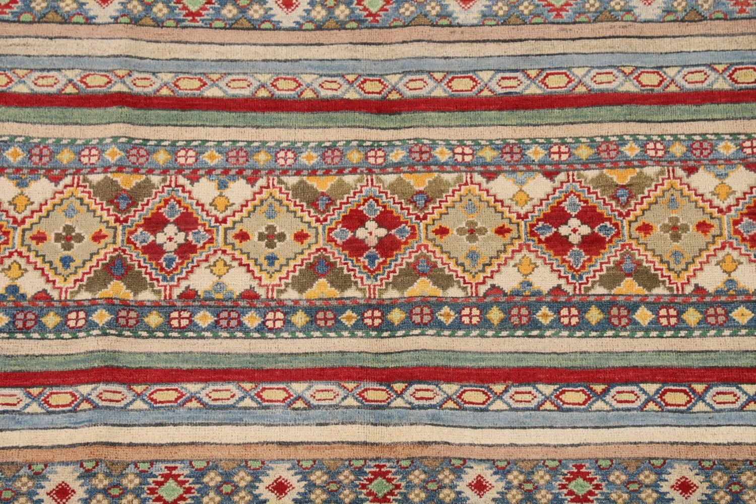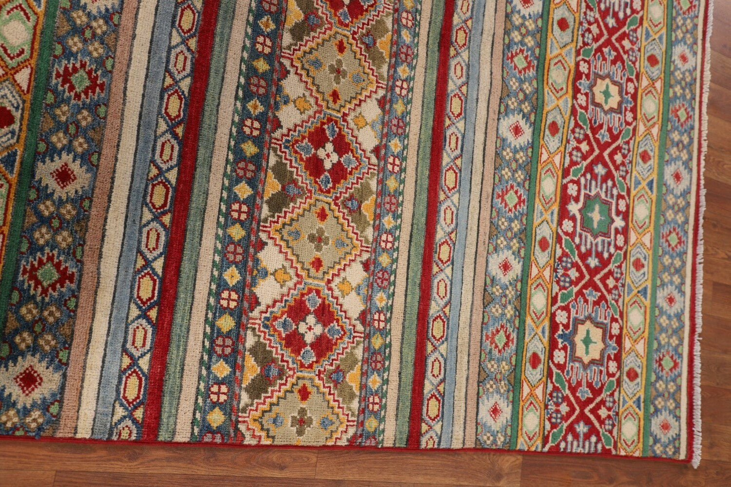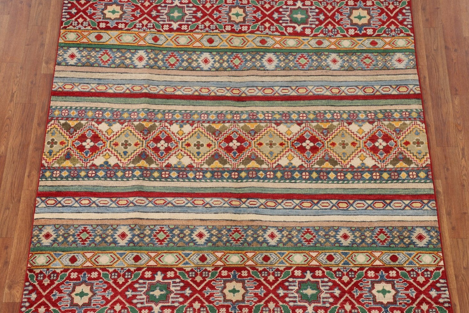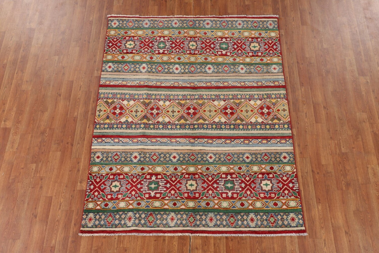 A Beautiful Genuine Pakistan Kazak rug is Hand Knotted by skillful weavers in Pakistan with 100% Wool Material. This rug is in New, First Quality condition. dimensions are 6' 6'' X 5' 3'' in foot and 198 X 160 in centimeter. the primary color is Multi-Colored.
