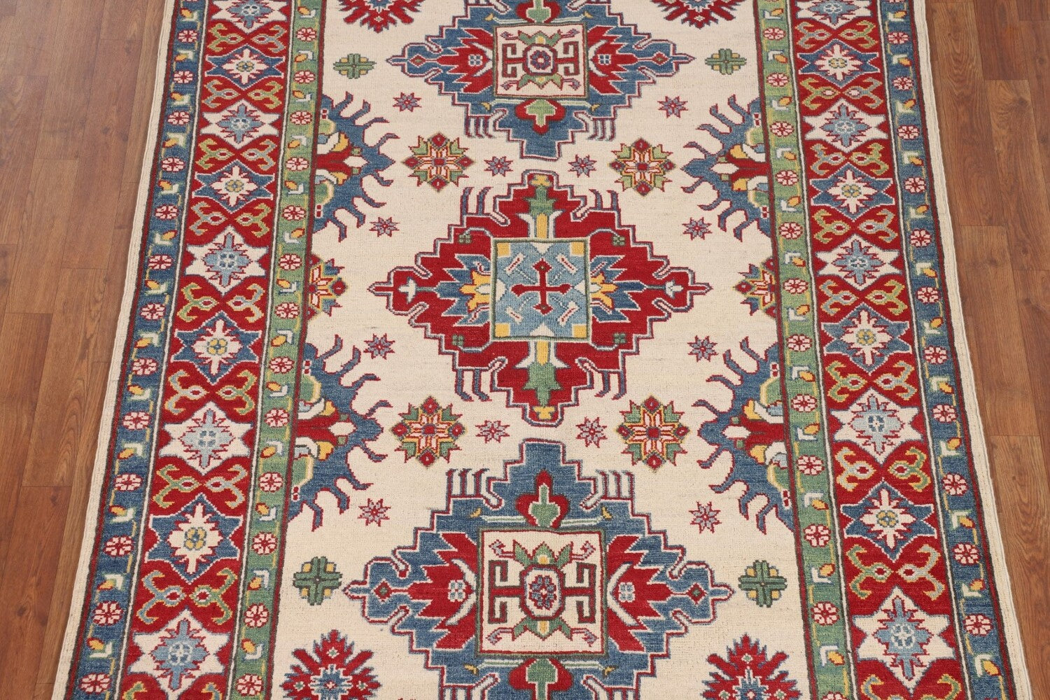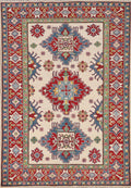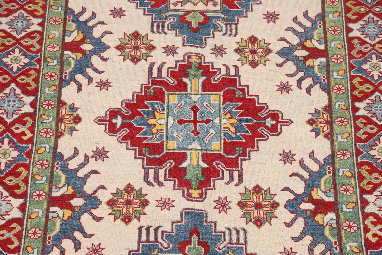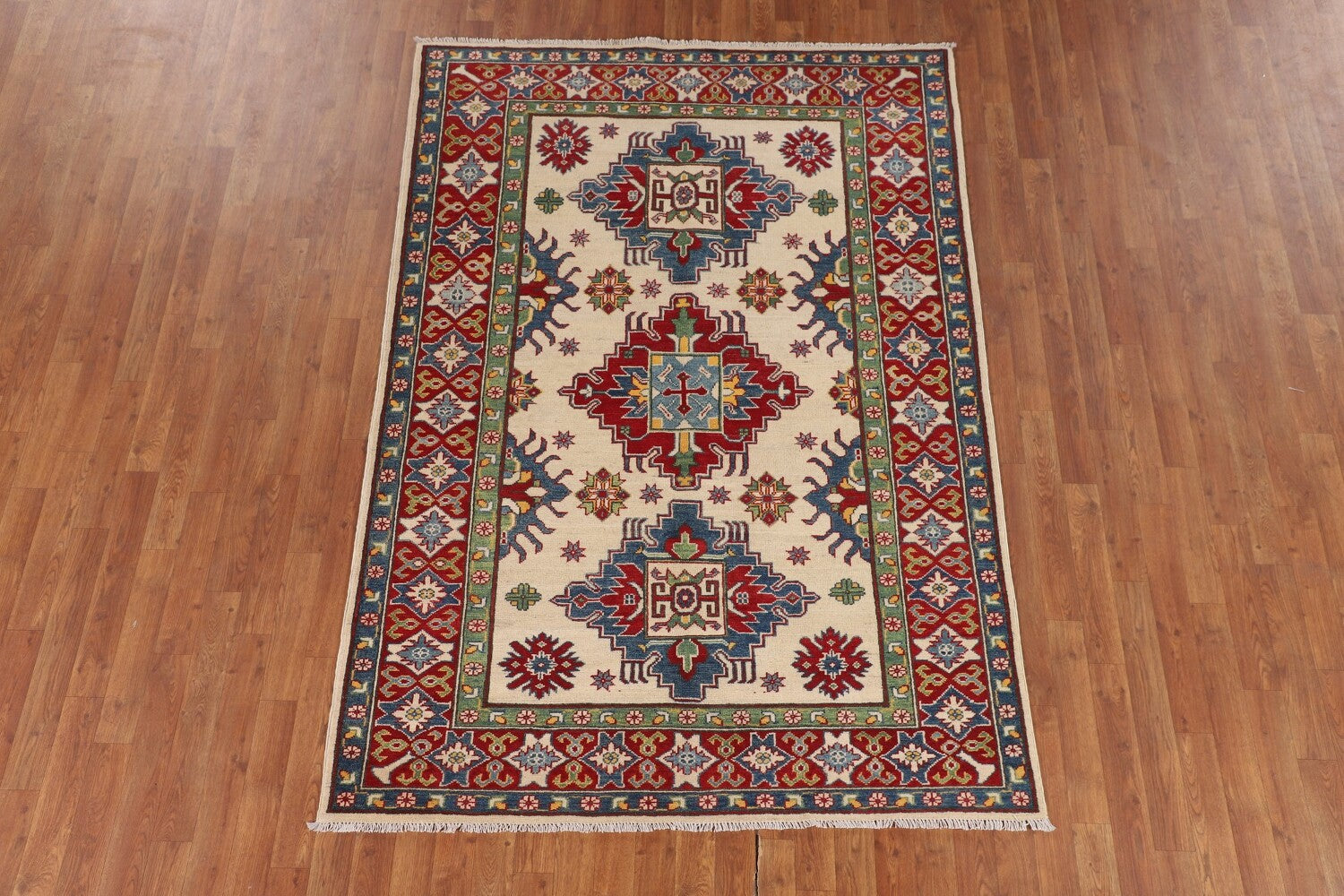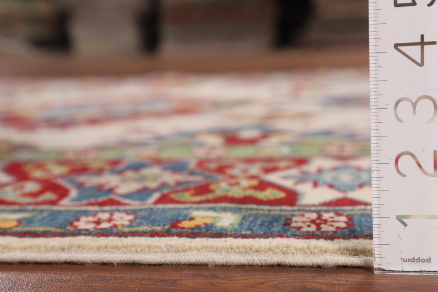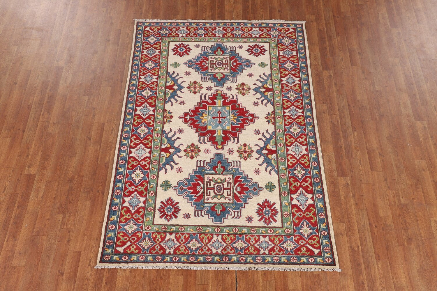 A Beautiful Genuine Pakistan Kazak rug is Hand Knotted by skillful weavers in Pakistan with 100% Wool Material. This rug is in New, First Quality condition. dimensions are 7' 3'' X 5' 0'' in foot and 221 X 152 in centimeter. the primary color is Beige & Ivories.