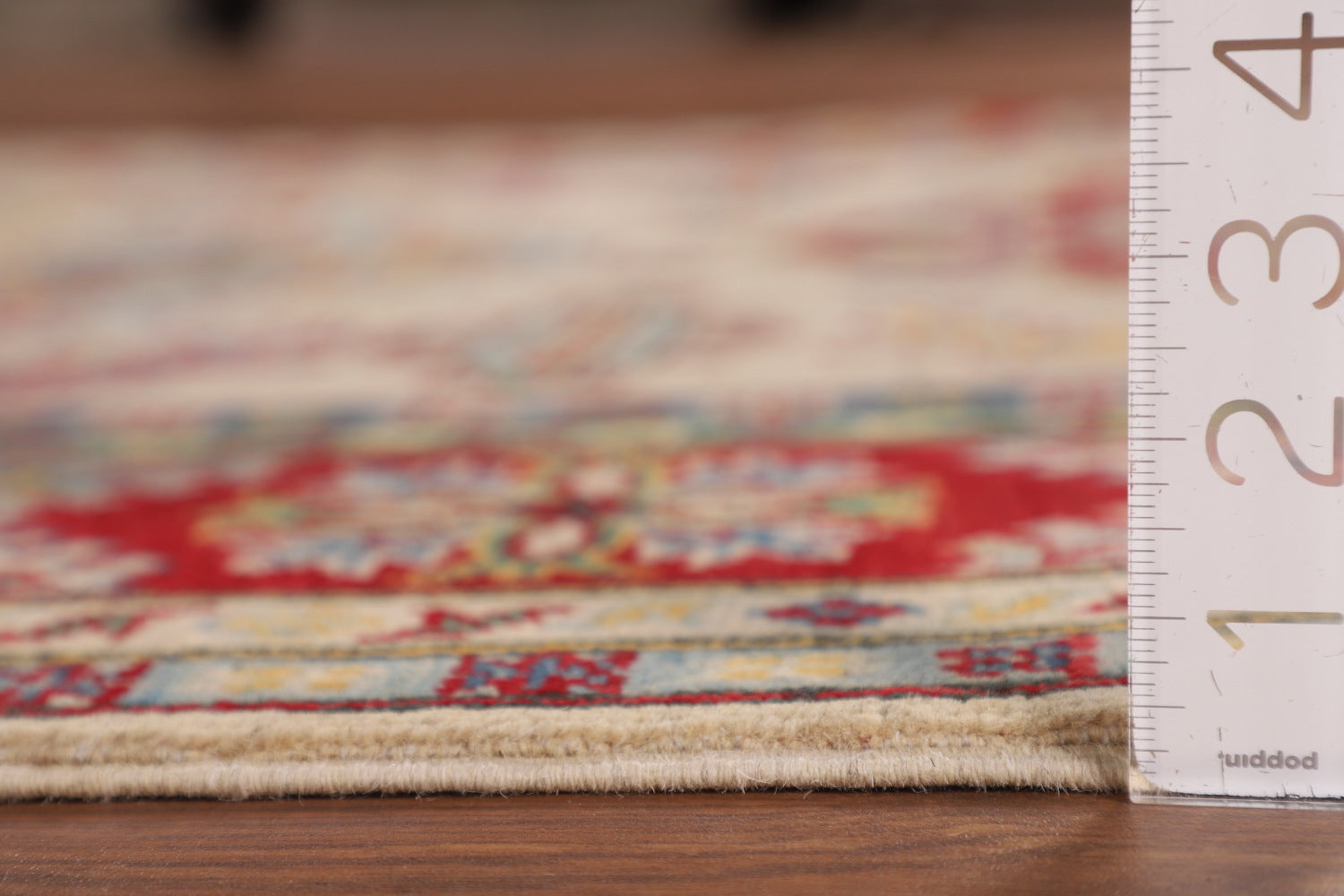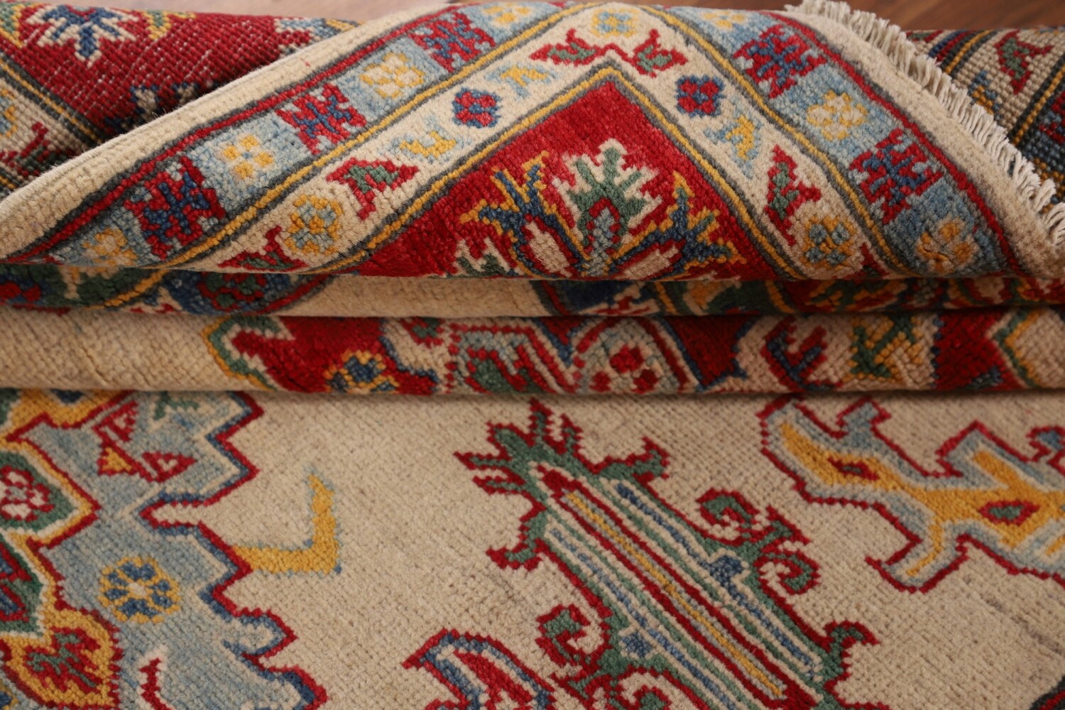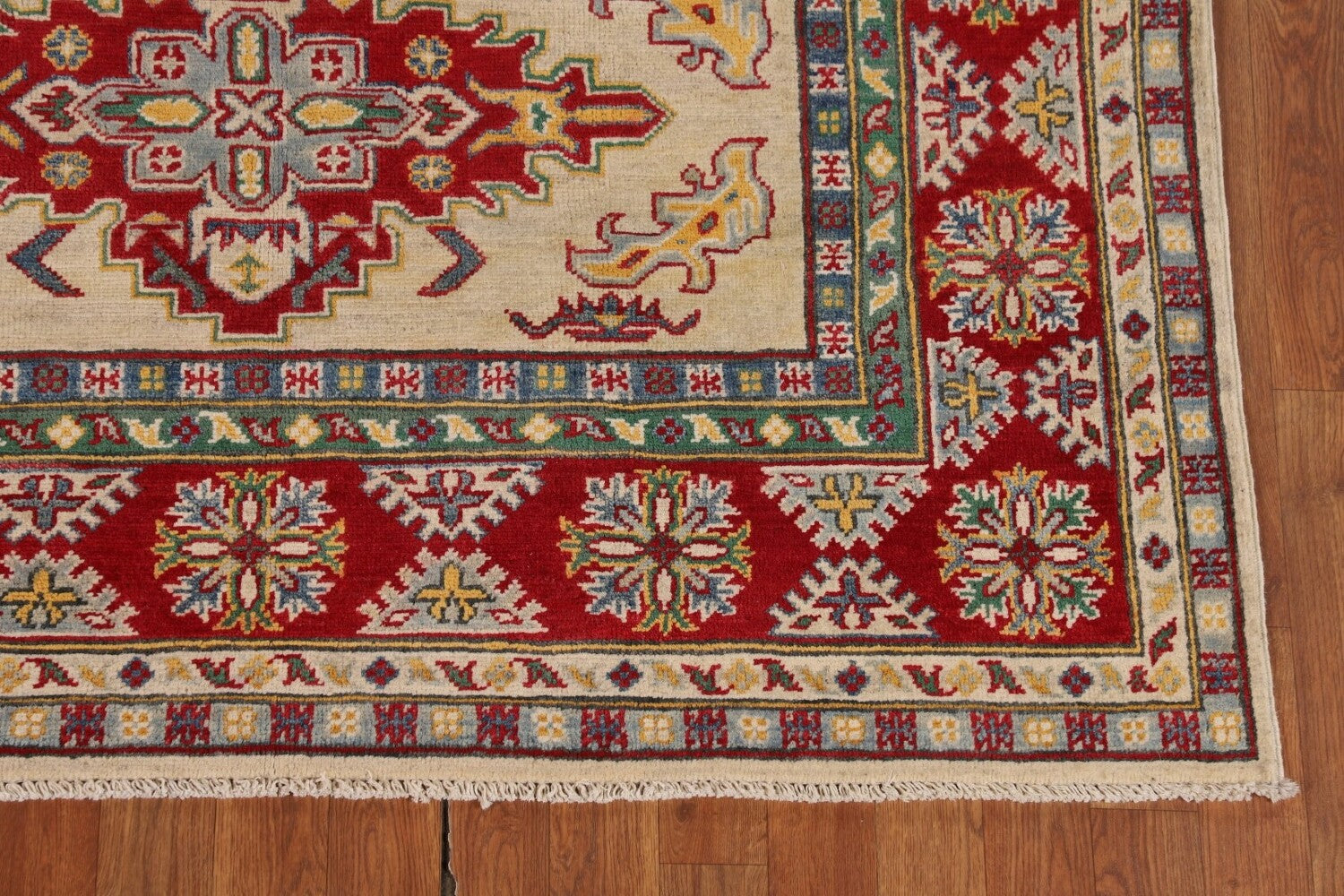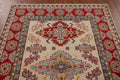 A Beautiful Genuine Pakistan Kazak rug is Hand Knotted by skillful weavers in Pakistan with 100% Wool Material. This rug is in New, First Quality condition. dimensions are 6' 10'' X 5' 2'' in foot and 208 X 157 in centimeter. the primary color is Beige & Ivories.