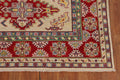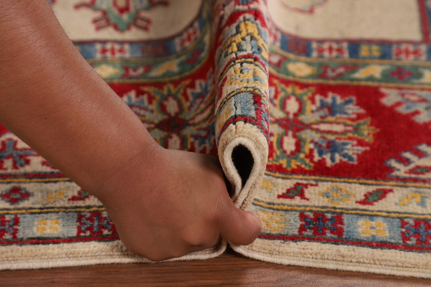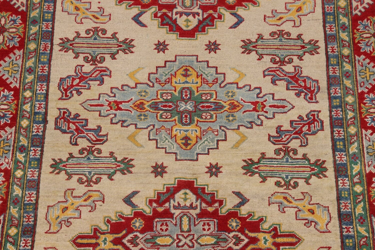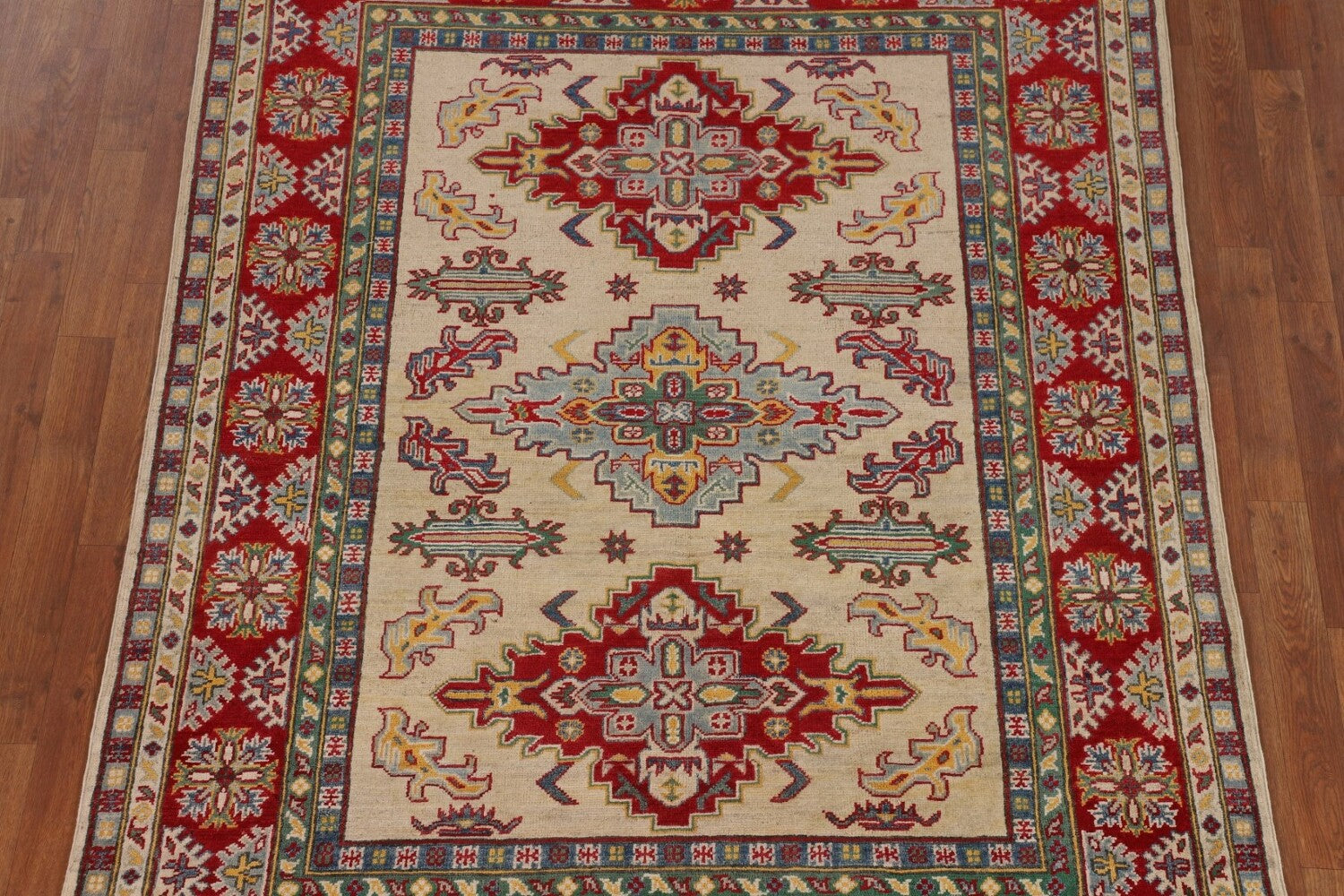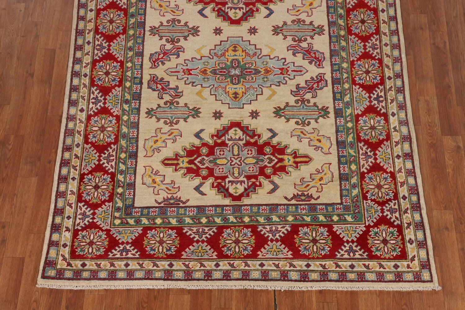 A Beautiful Genuine Pakistan Kazak rug is Hand Knotted by skillful weavers in Pakistan with 100% Wool Material. This rug is in New, First Quality condition. dimensions are 6' 10'' X 5' 2'' in foot and 208 X 157 in centimeter. the primary color is Beige & Ivories.