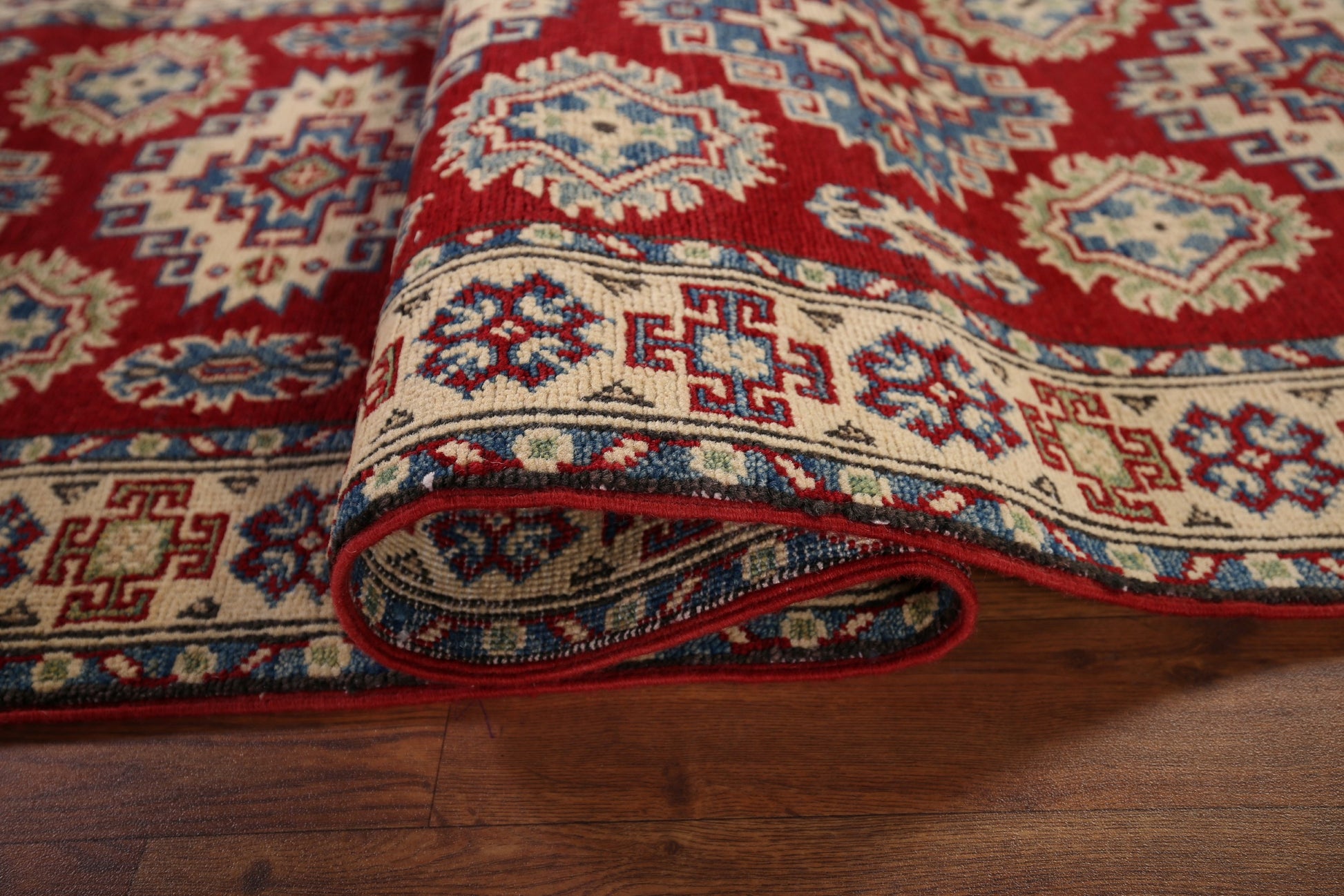 A Beautiful Genuine Pakistan Kazak rug is Hand Knotted by skillful weavers in Pakistan with 100% Wool Material. This rug is in New, First Quality condition. dimensions are 16' 2'' X 2' 7'' in foot and 493 X 79 in centimeter. the primary color is Red.
