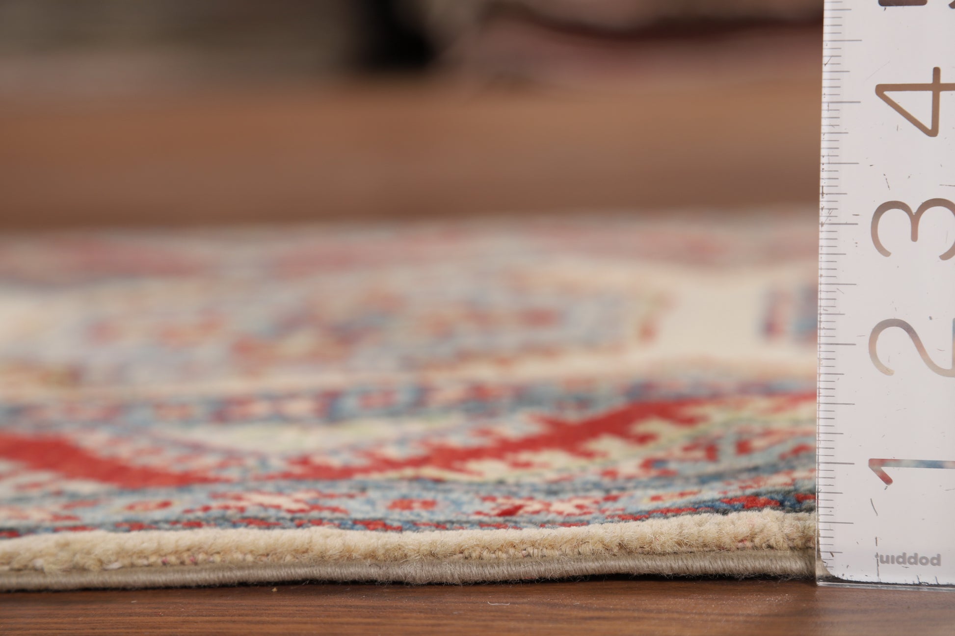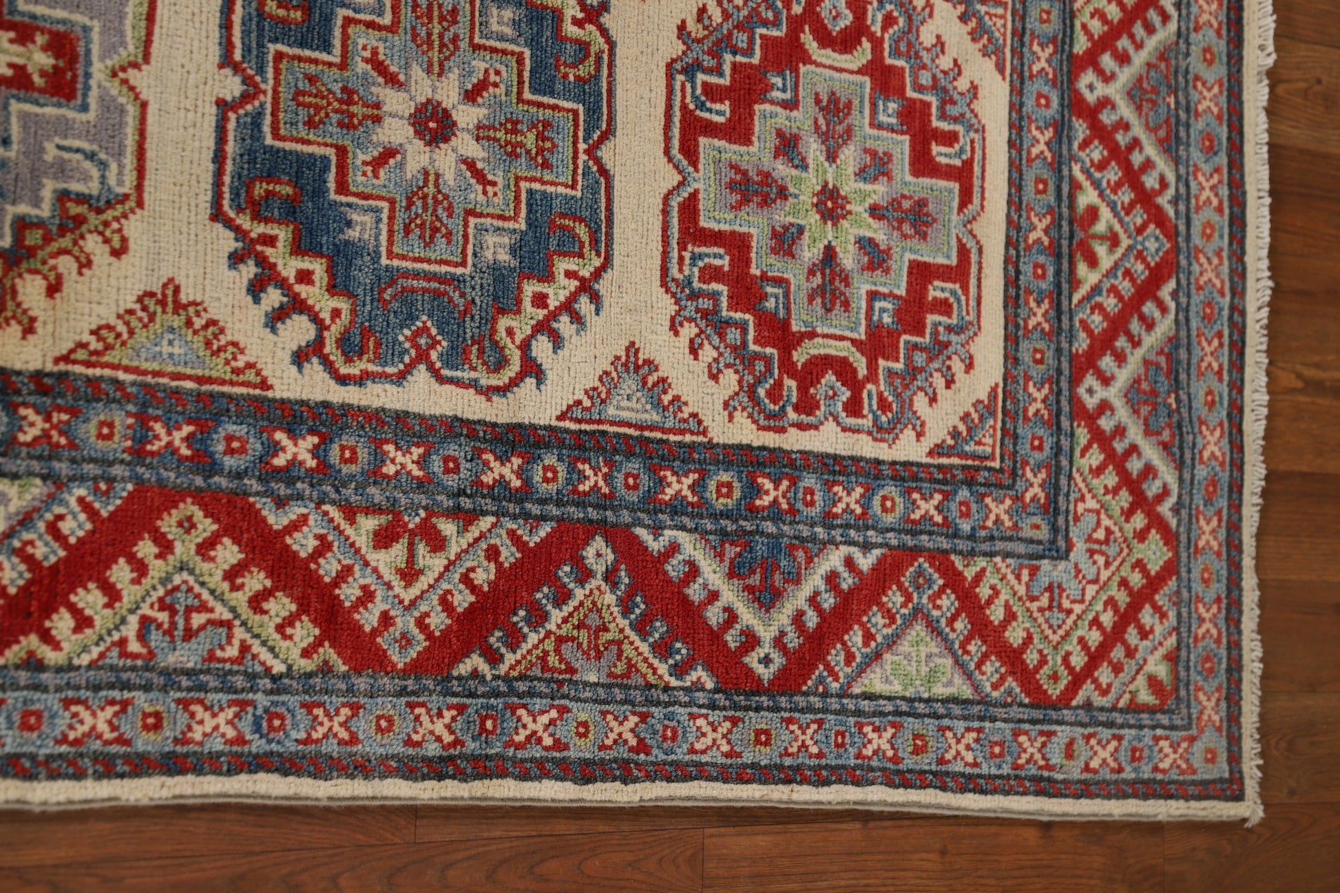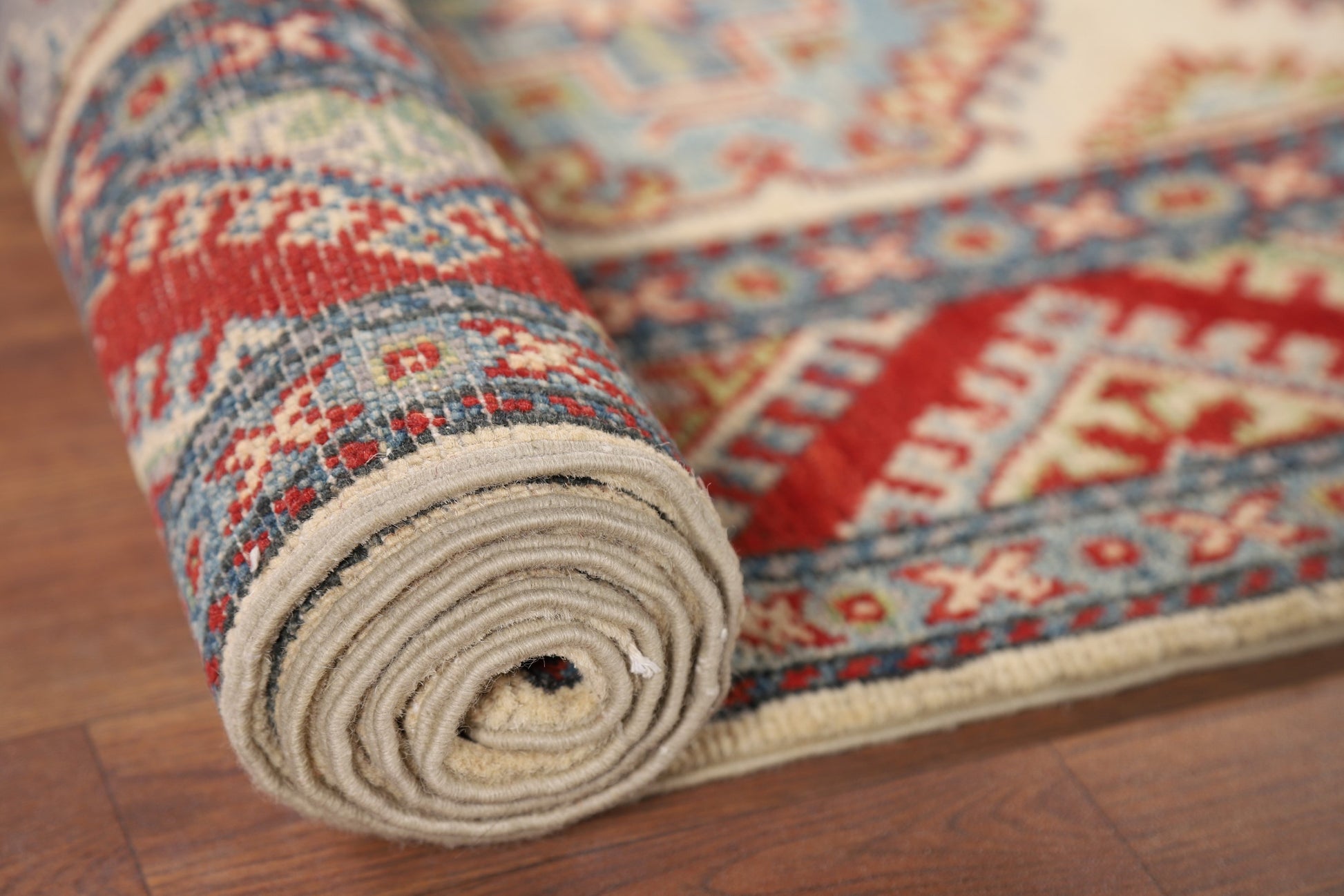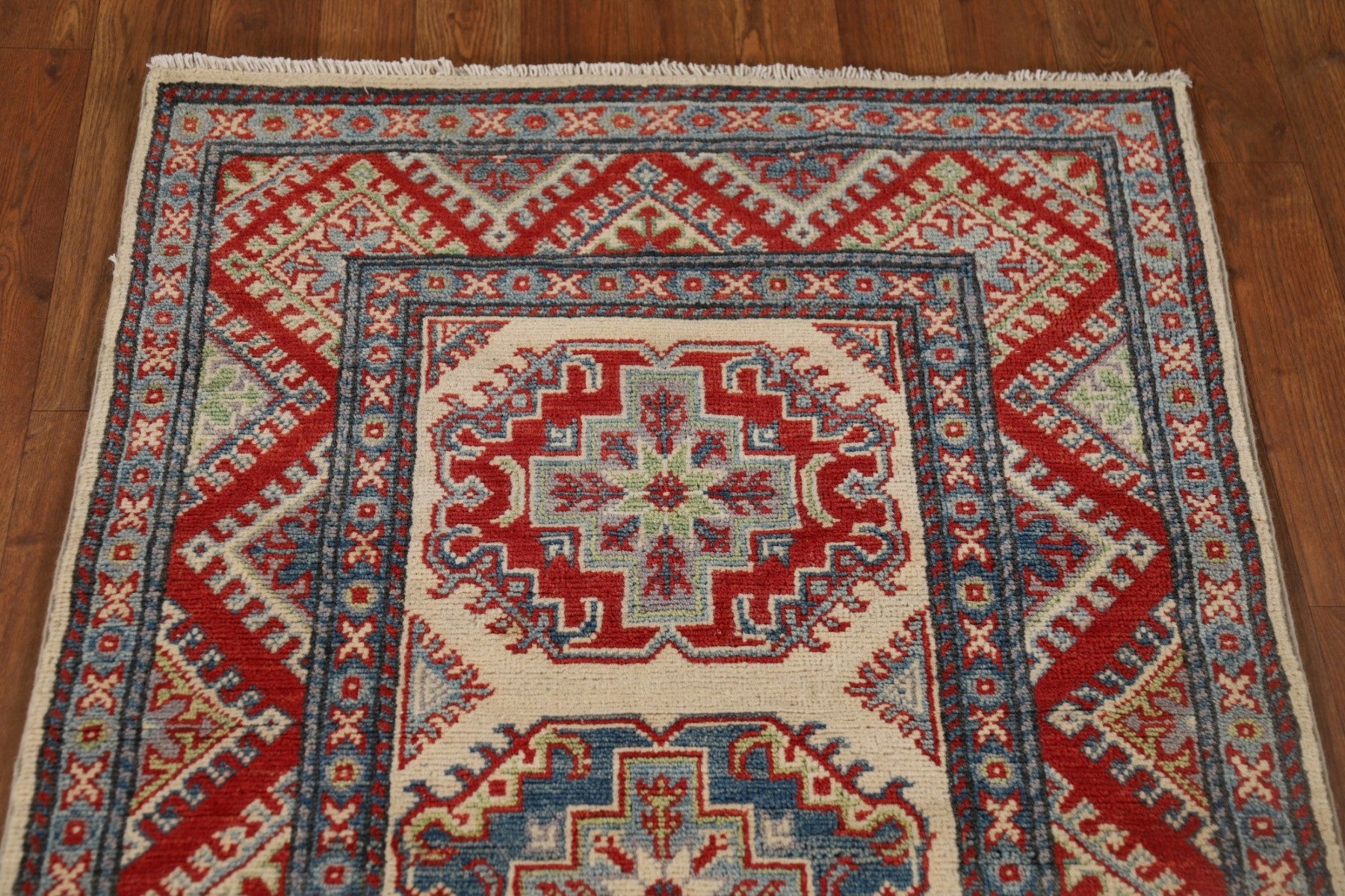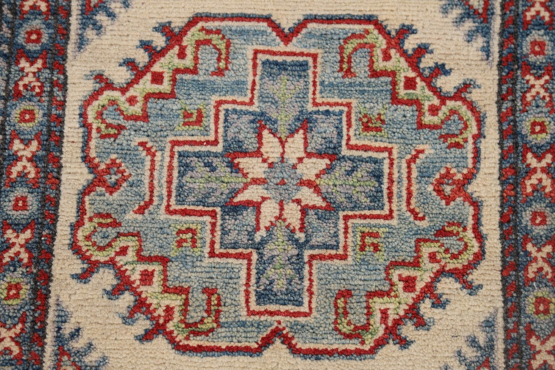 A Beautiful Genuine Pakistan Kazak rug is Hand Knotted by skillful weavers in Pakistan with 100% Wool Material. This rug is in New, First Quality condition. dimensions are 15' 2'' X 2' 5'' in foot and 462 X 74 in centimeter. the primary color is Beige & Ivories.