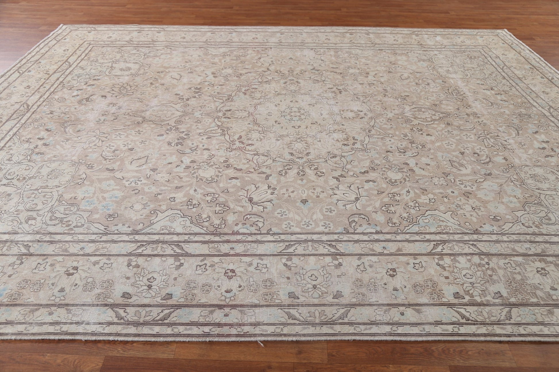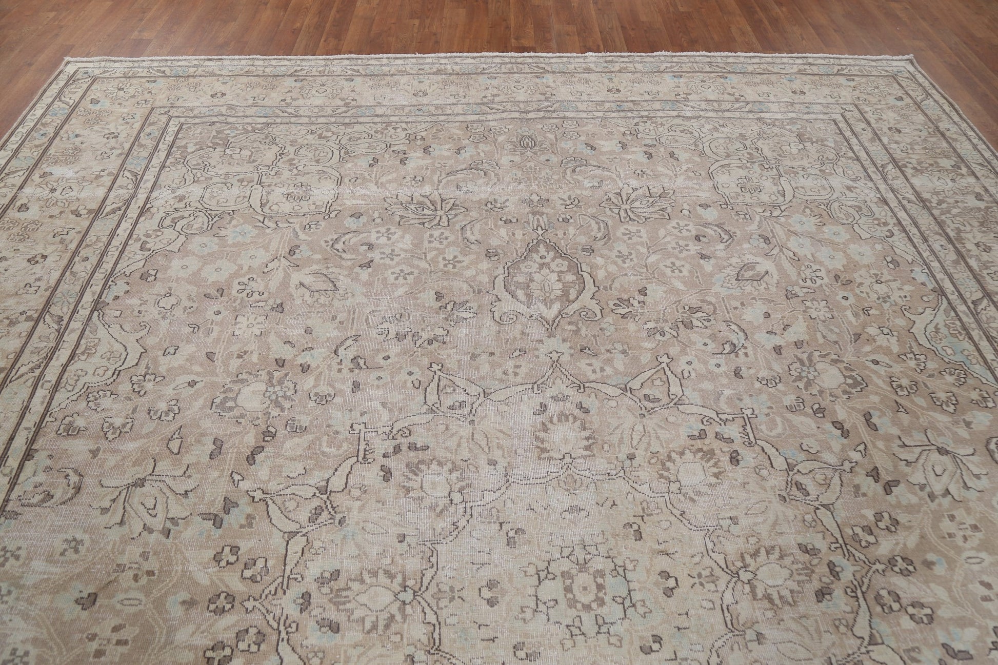 A Beautiful Genuine Persia ( Persia ) Kerman rug is Hand Knotted by skillful weavers in Persia ( Persia ) with 100% Wool Material. This rug is in Very Good (Evenly Low Pile) condition. dimensions are 12' 2'' X 9' 8'' in foot and 371 X 295 in centimeter. the primary color is Brown.